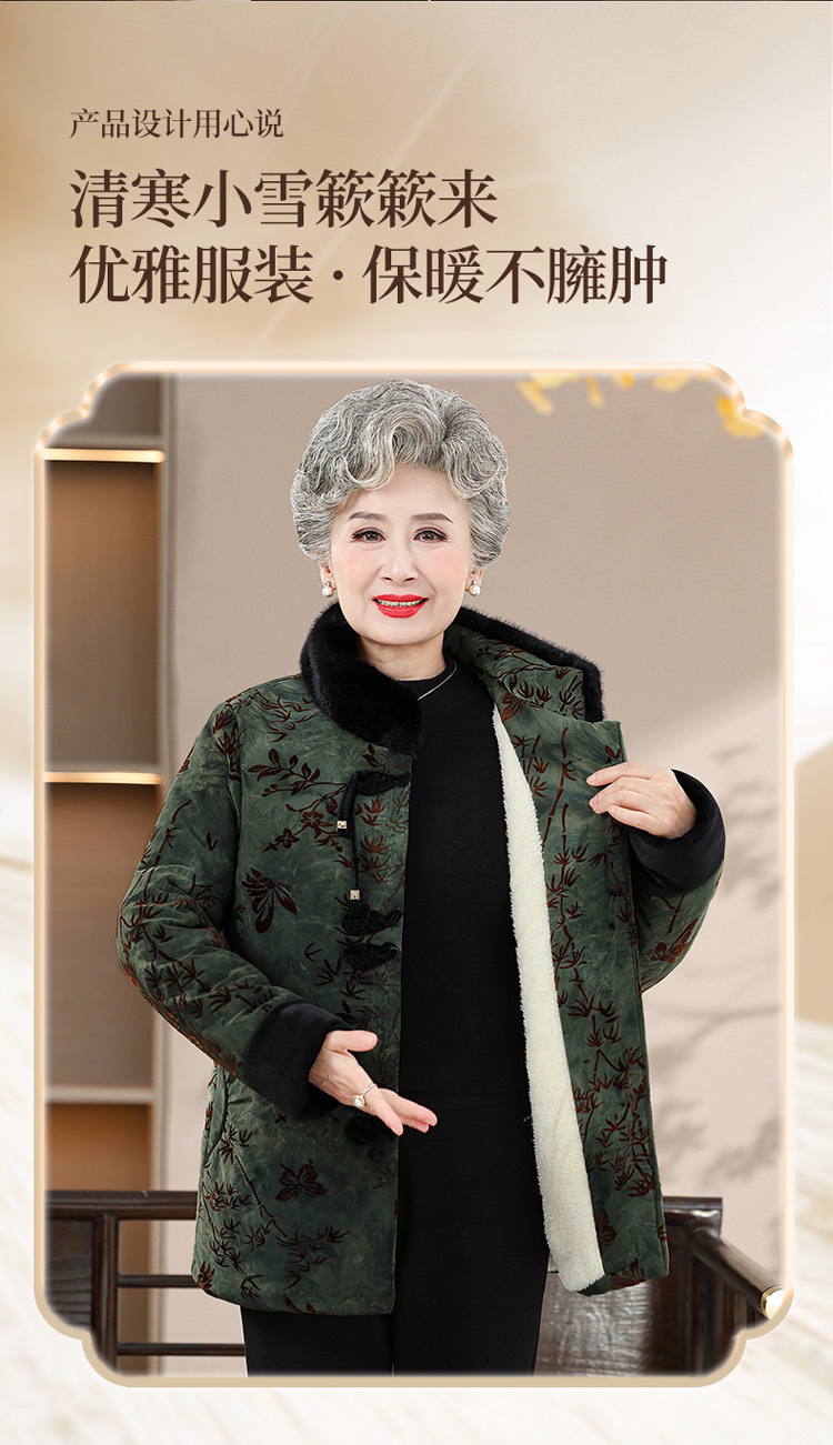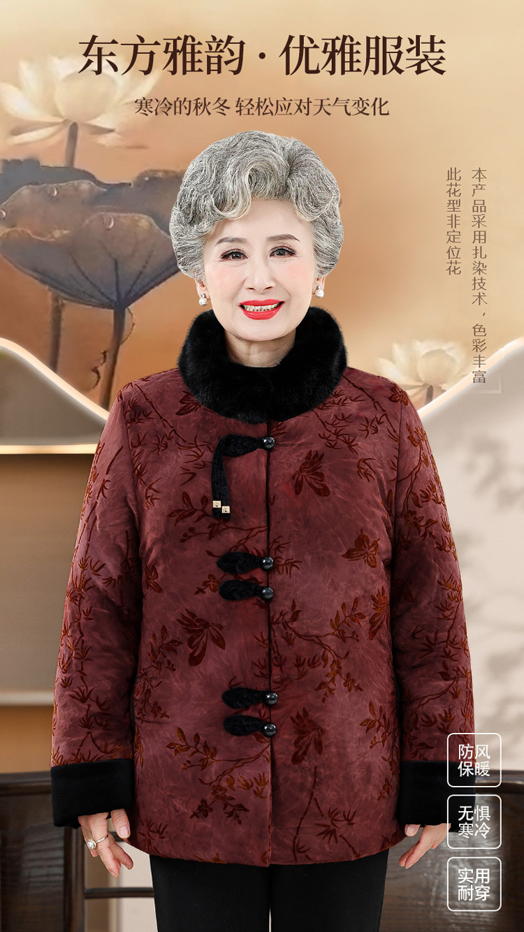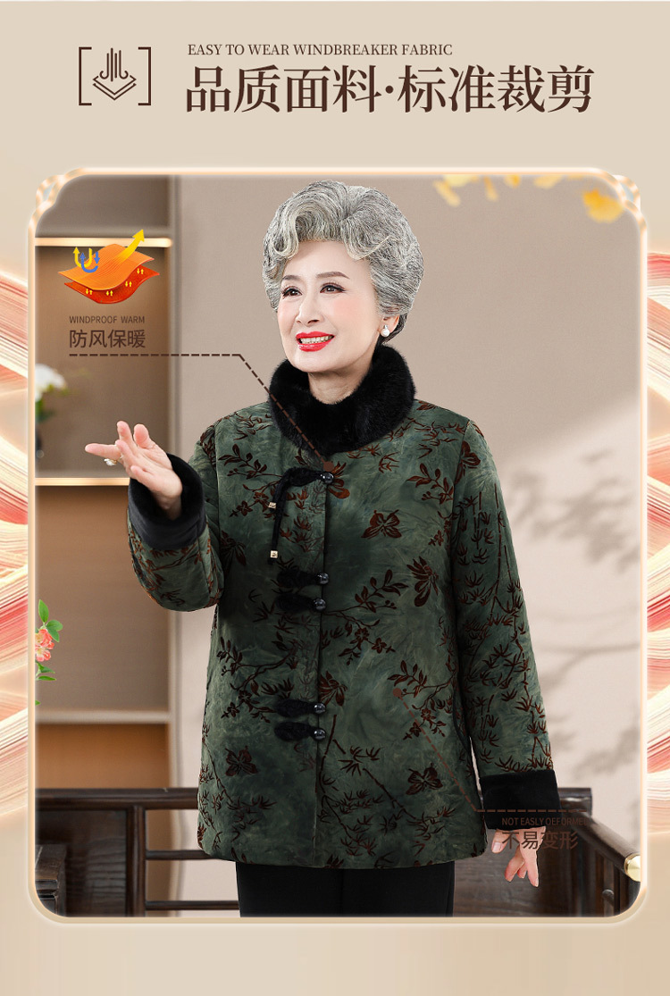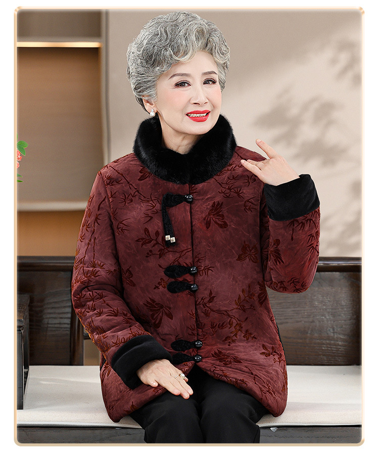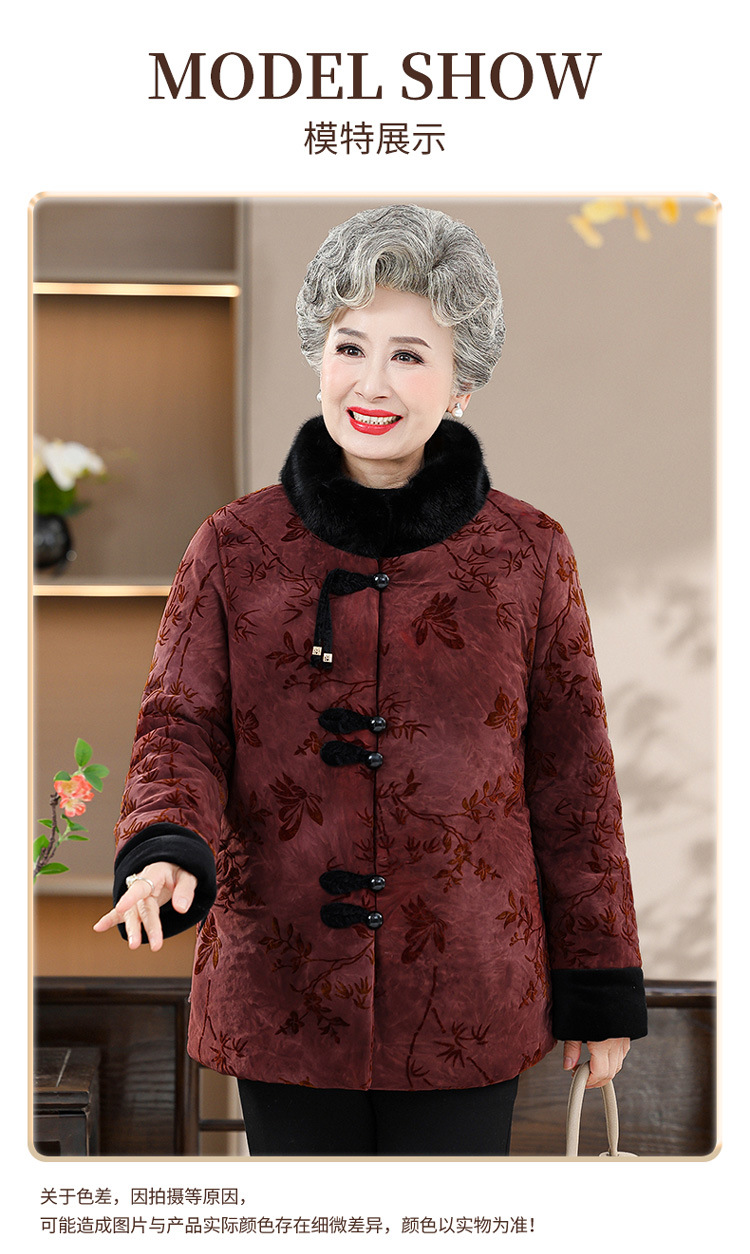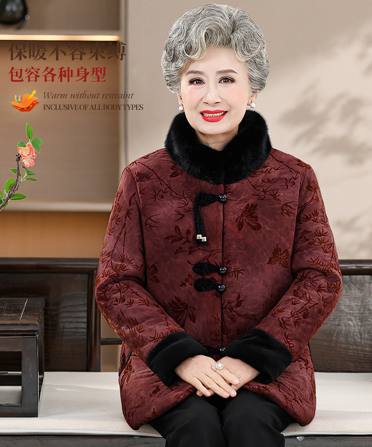 Среднее и старое зимнее платье бабушки хлопчатобумажная куртка плюс бархатная хлопчатобумажная куртка новая пожилая мама Тан толстая хлопковая куртка большого размера