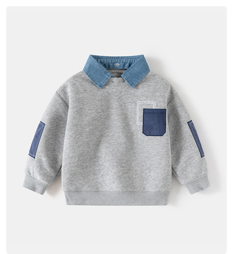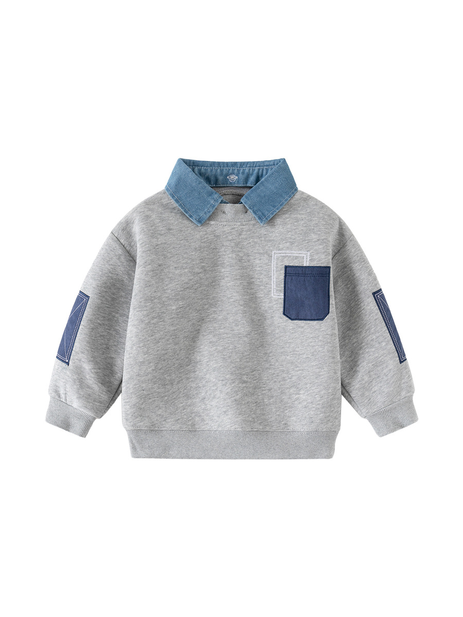 Мальчик поддельные два свитера весной новая корейская версия детской одежды мальчик рукав патч пиджак прилив бэби топ оптом