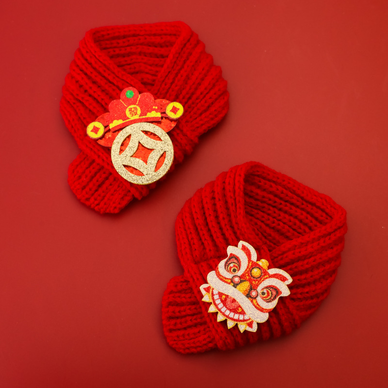 Домашние животные Новогодний шарф Год Змеи Весенний Фестиваль Кошки Собаки Новогодние Принадлежности Вязание Теплые красные украшения Бога Богатства
