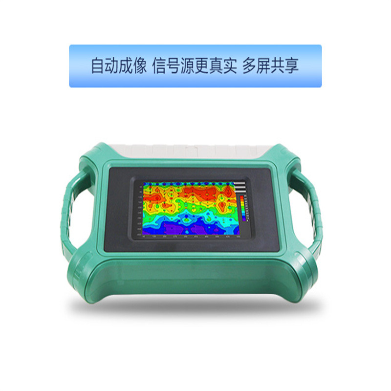 32道高密度测量(通道可选),可有线连接电磁探头或蓝牙连接金箍棒电磁物探仪;10寸安卓触摸屏实时成像