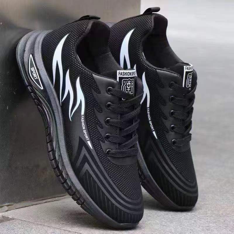Тенденция новая нескользящая мужская обувь приливная обувь осень и зима новая повседневная дикая мягкая подошва бег черные кожаные кроссовки