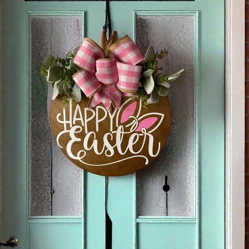 Трансграничный новый пасхальный счастливый кролик логотип дома украшения двери деревянные поделки