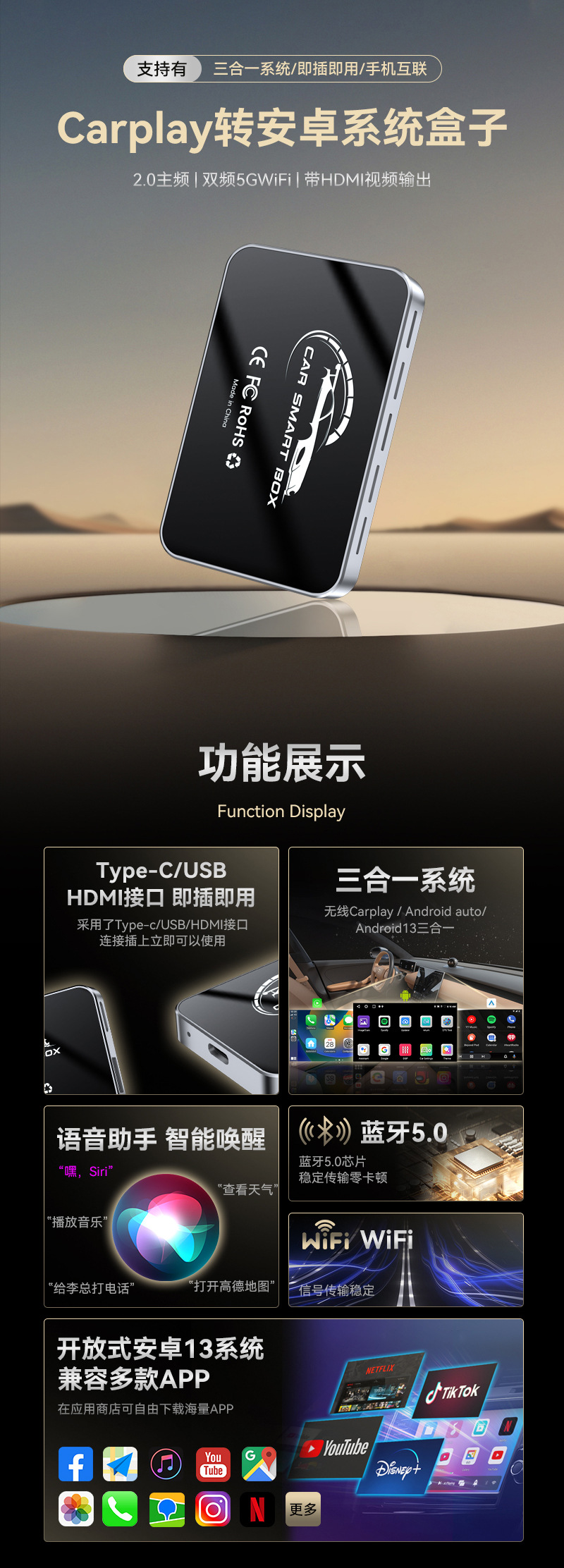 Горячая продажа Автомобильный Connected Smart Box модуль aiboxcarplay Двухдиапазонная коробка WifiHDMIcarplay