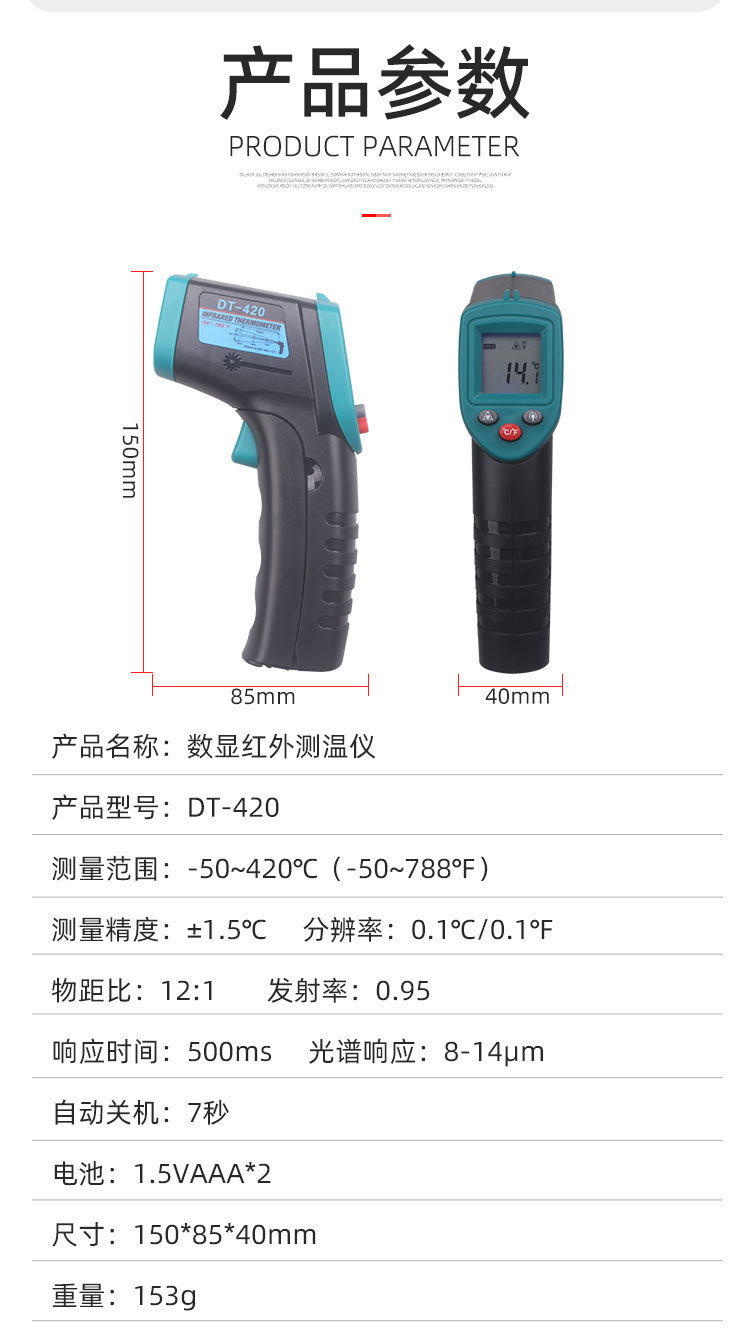 DT-420 инфракрасный термометр цифровой бесконтактный термометр-50 ~ 420 ℃
