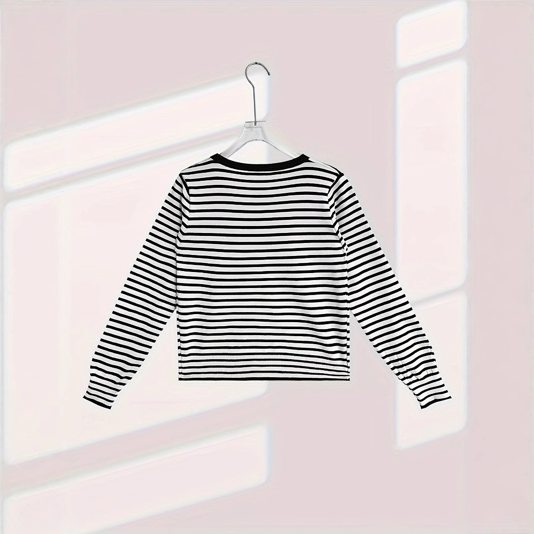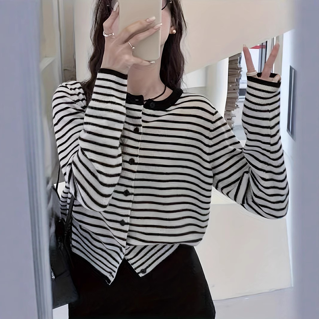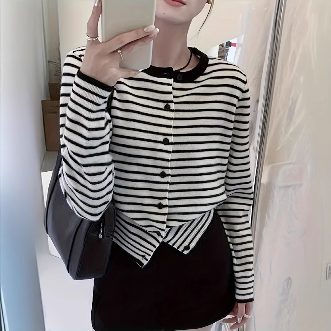 2024 осенний корейский стиль высокого уровня черно-белый полосатый трикотажный кардиган женский осенью и зимой