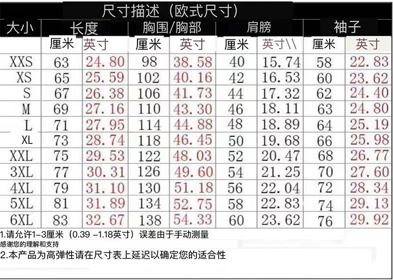 S; M; L; XL; 2XL; 3XL; 4XL; 5XL