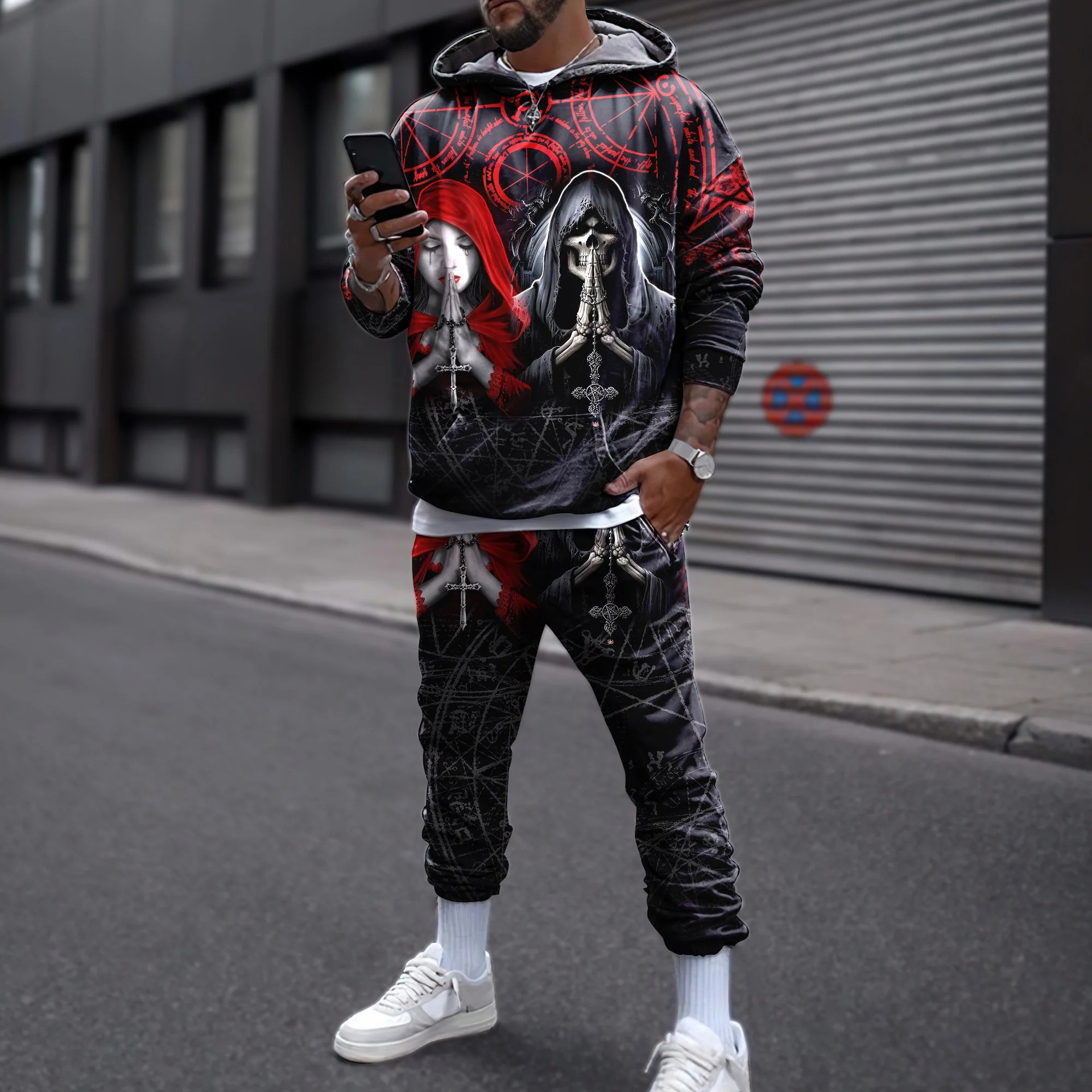 2024 новый трансграничный 3D цифровой принт с капюшоном свитер костюм