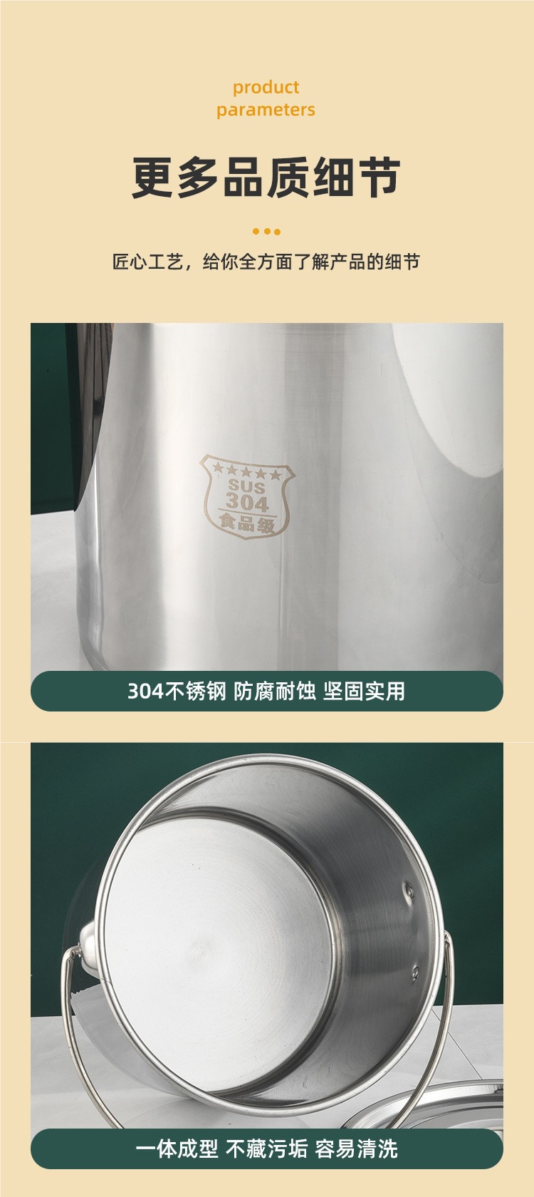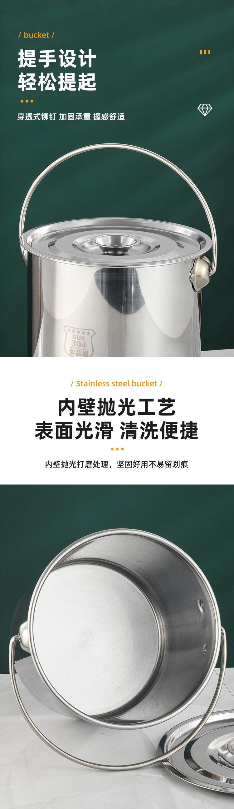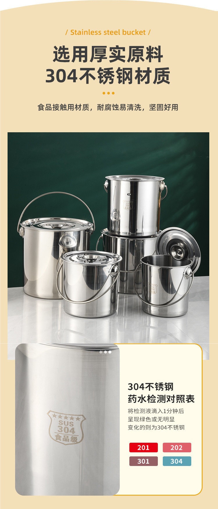 304 бесмагнитная нержавеющая сталь ковш для поднятия масла ведра ведра для еды, ведра для детского сада, ведра для хранения льда ведра с крышкой
