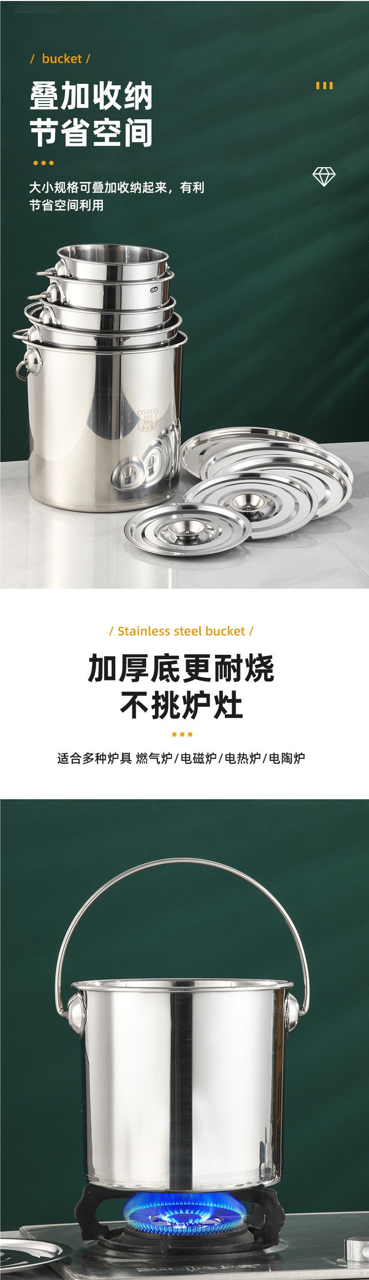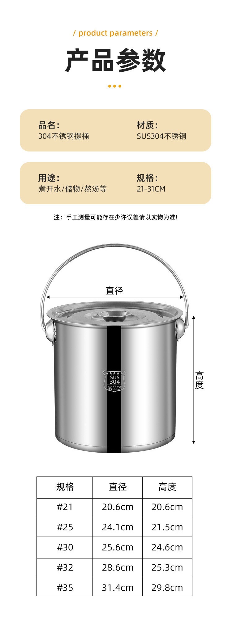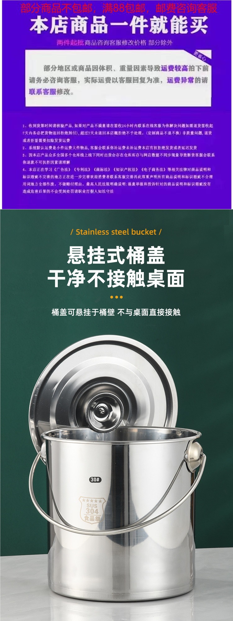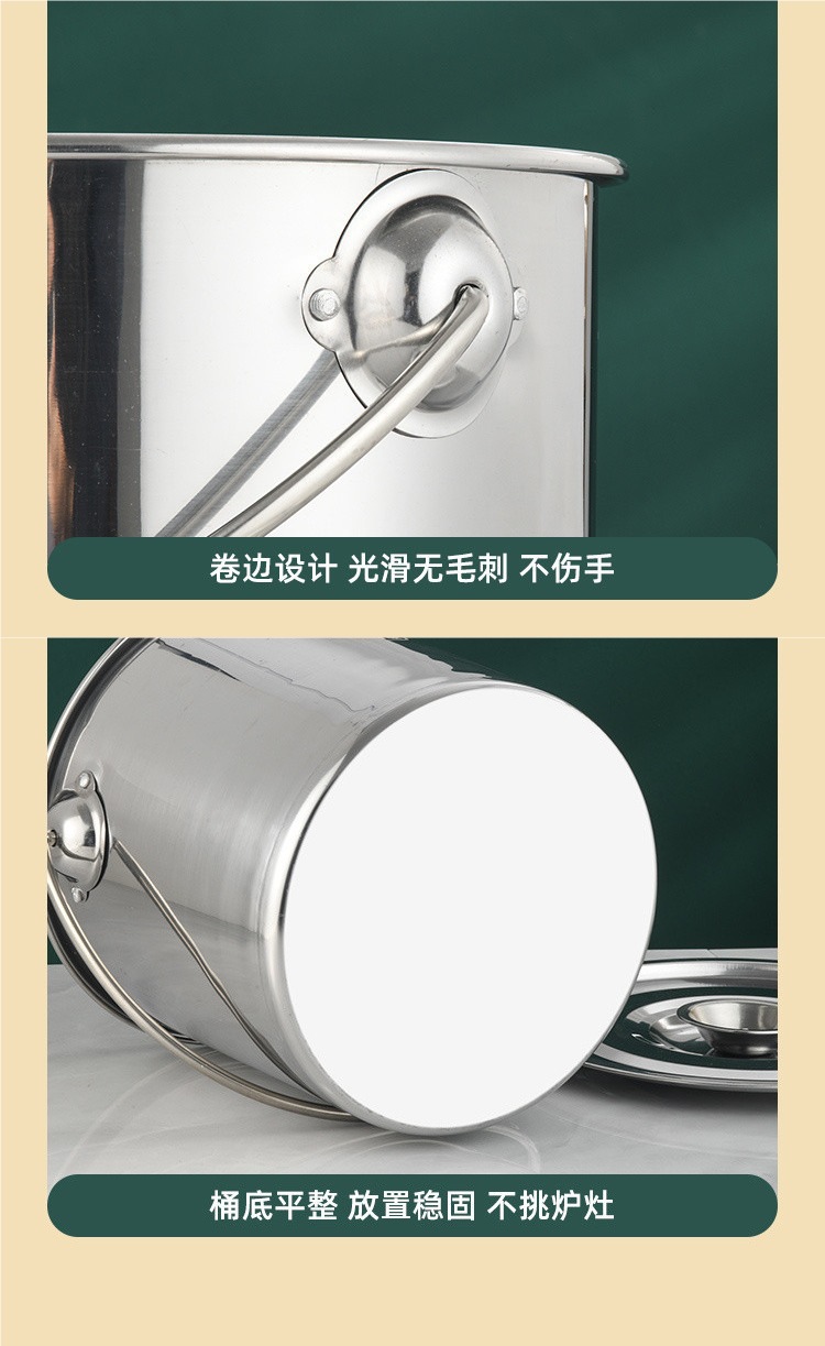304 бесмагнитная нержавеющая сталь ковш для поднятия масла ведра ведра для еды, ведра для детского сада, ведра для хранения льда ведра с крышкой