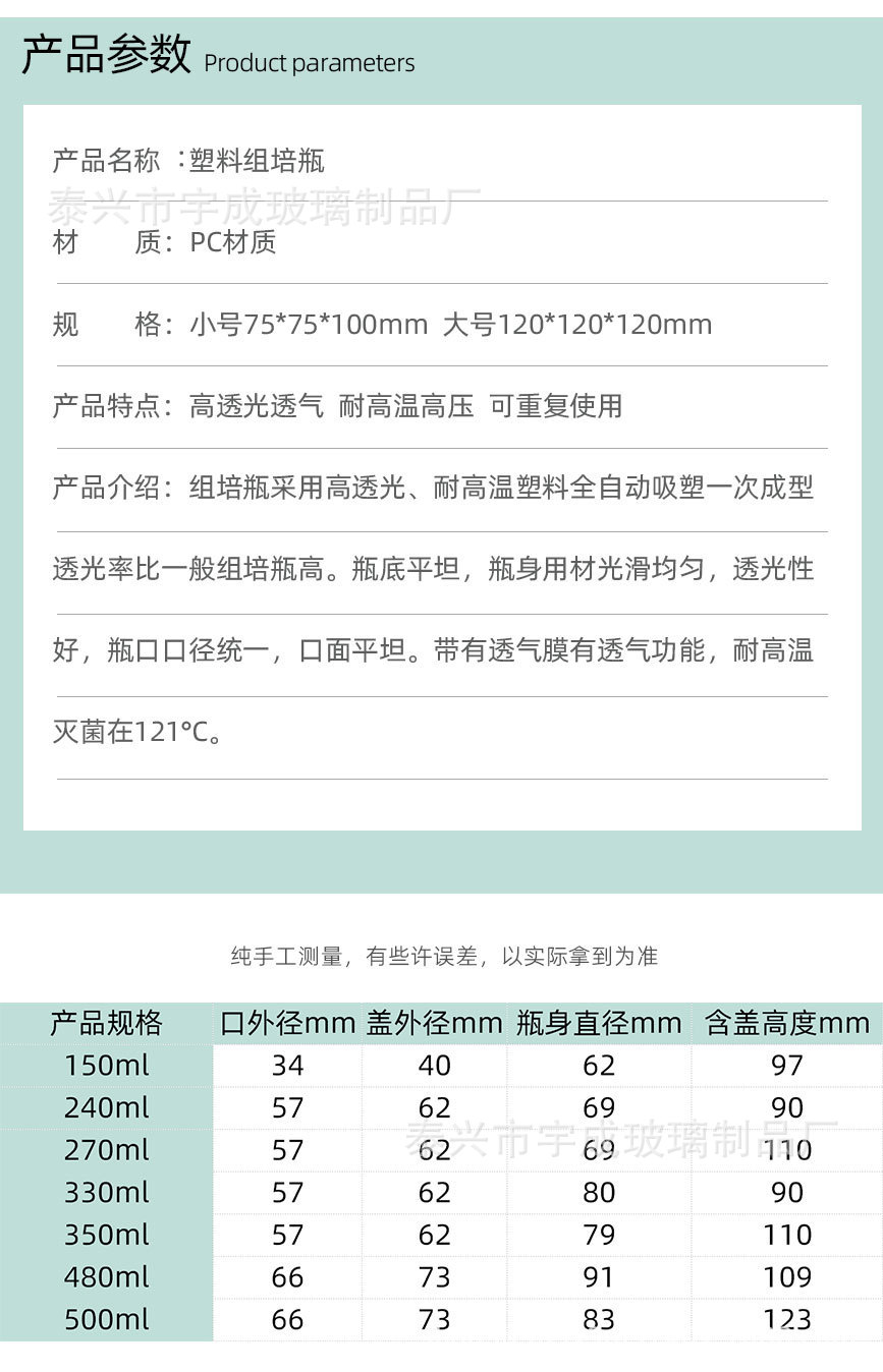Высокая термостойкость и высокая прозрачность Материал PC 150-500 мл Бутылка для гистереи Пластиковая с герметичной крышкой Специальная бутылка для растений