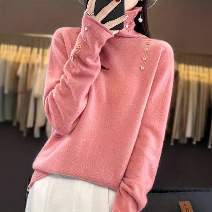 2024 осень и зима новые сплошные женские свободные вязаные корейские нижние рубашки