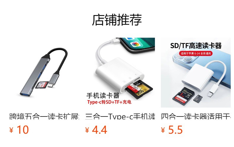 三合一(读SD内存卡和TF内存卡,USB口)