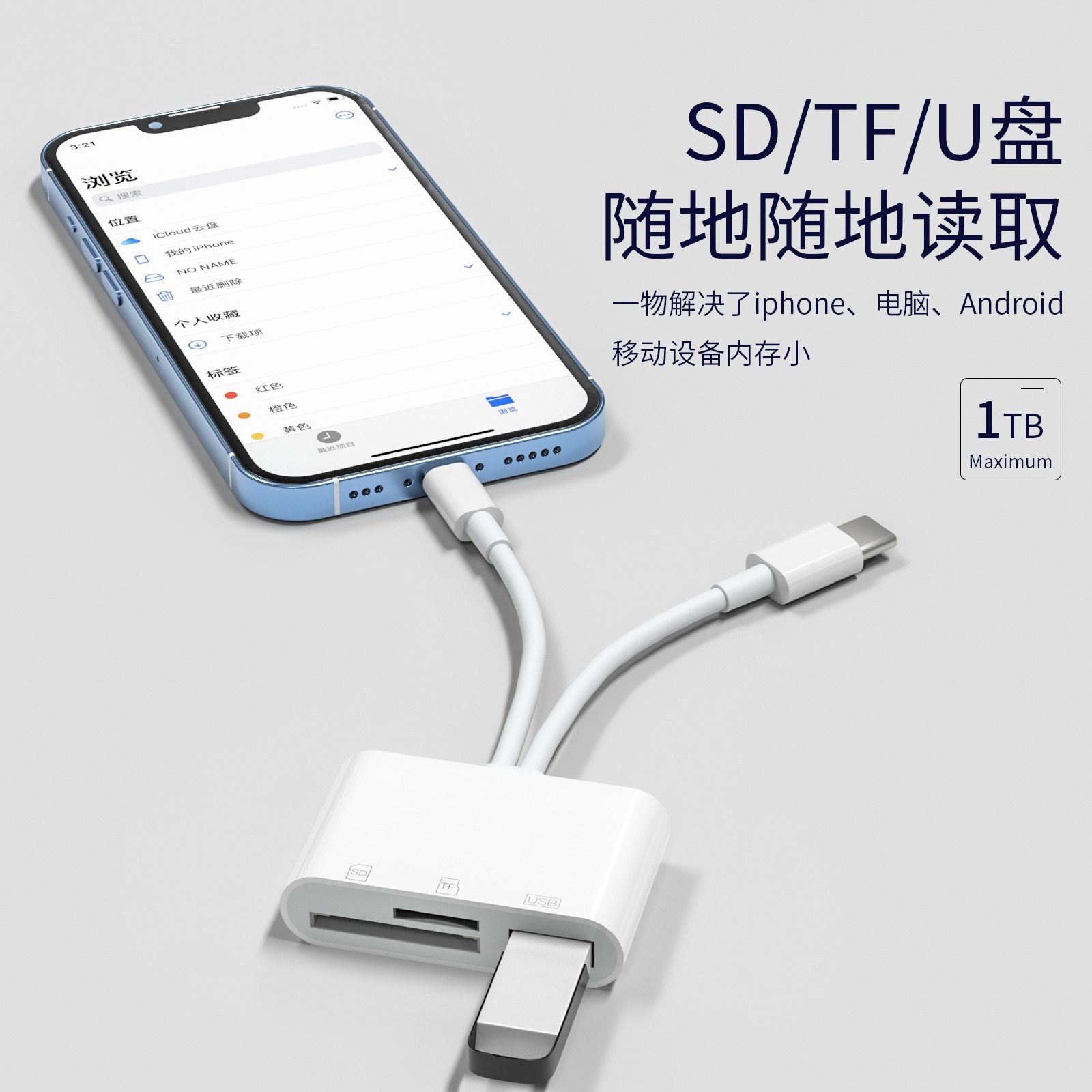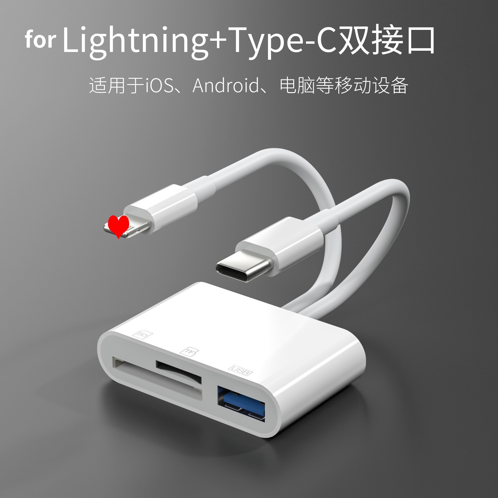 产品说明:双线读卡器(苹果/Type-c)