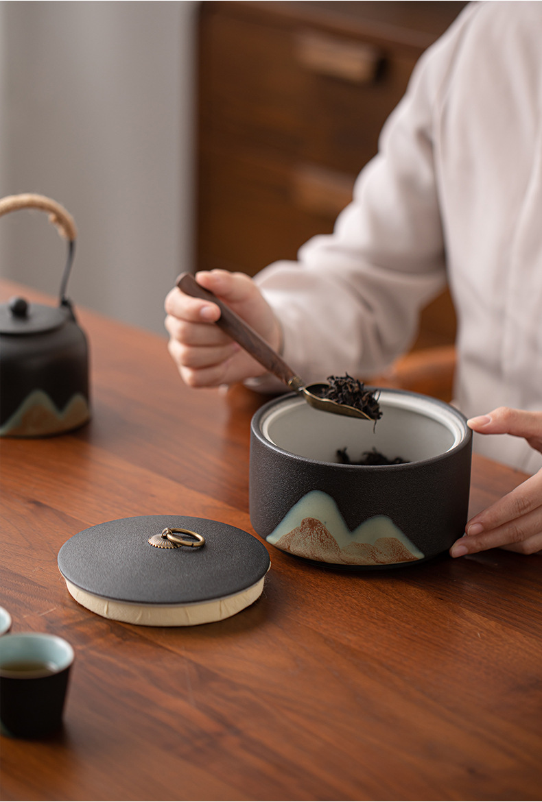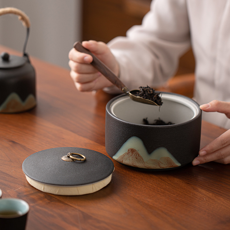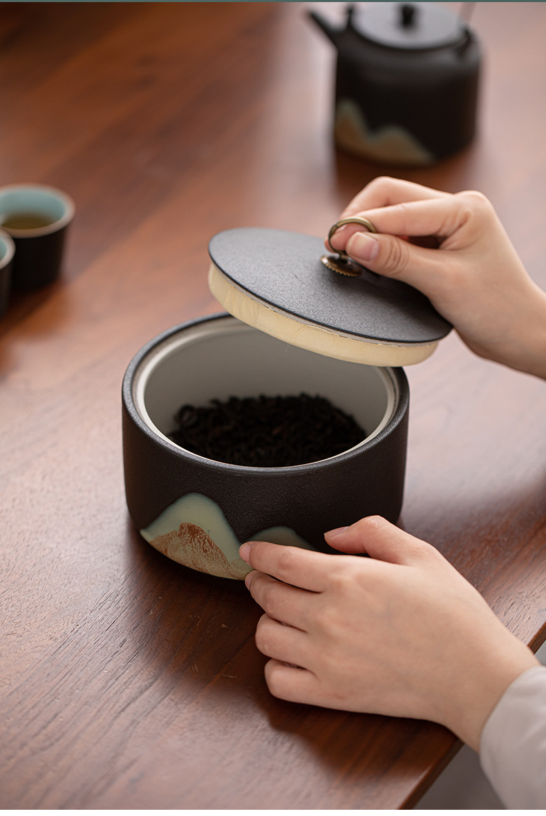 Глазурь роспись цветной Юаньшань вертикальный чайный горшок керамический домашний чайный упаковочный горшок запечатанный горшок черный чай зеленый чай пуэр чайный склад