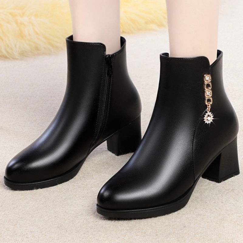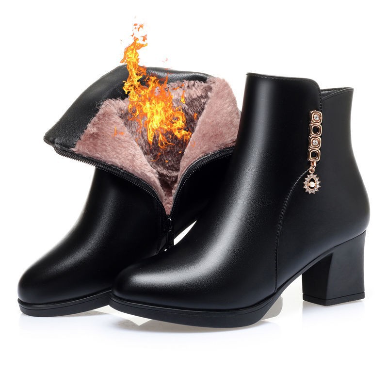 Трансграничные европейские и американские толстые каблуки и бархатные туфли мамы мягкие ботинки удобные ботинки Мартин женские ботинки 2024 осень-зима новые кожаные ботинки