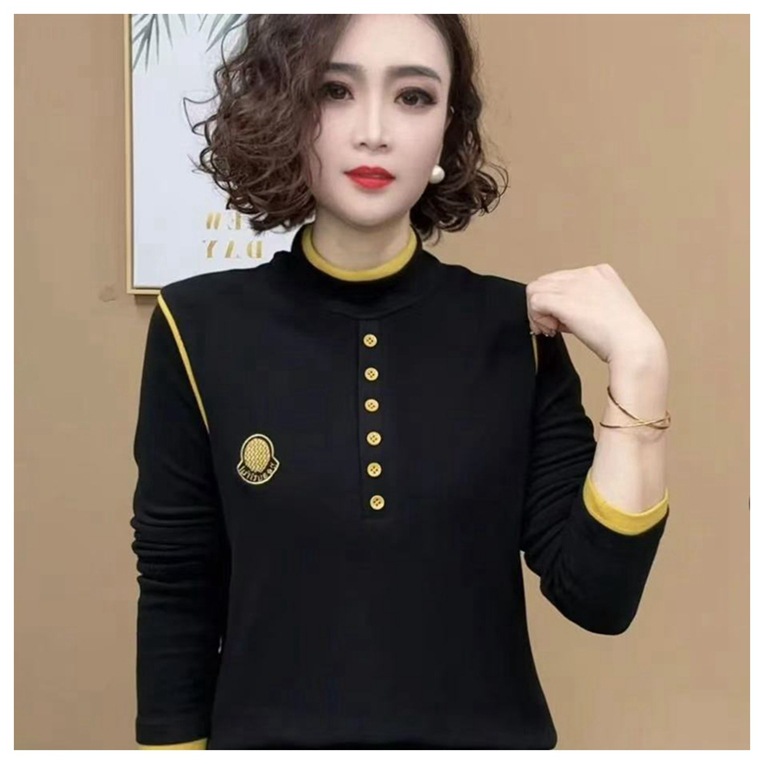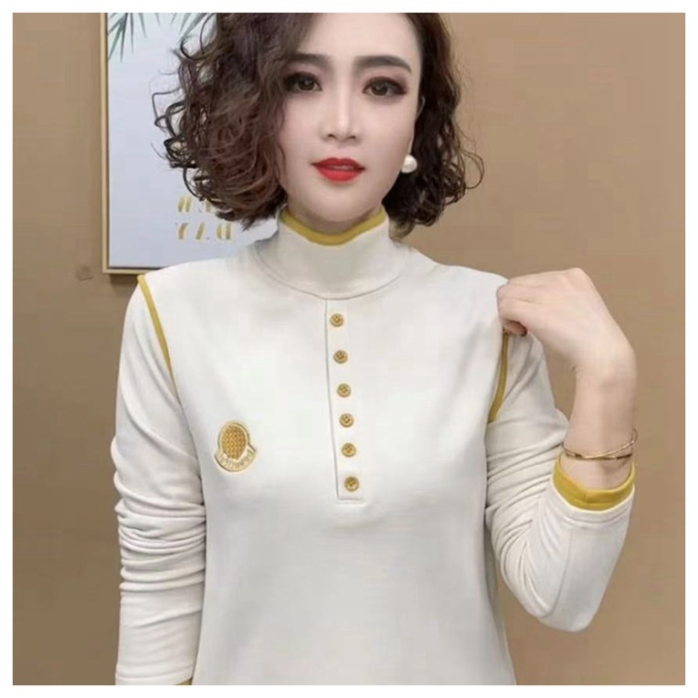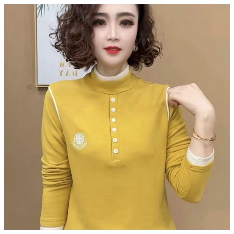 Новый стиль осень и зима 2024 новая мода контральный цвет с полувысоким воротником вышивка теплая двухсторонняя бархатная нижняя рубашка женский топ