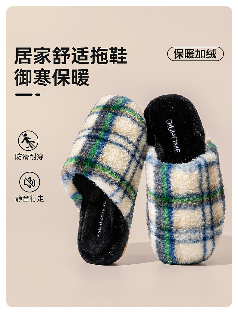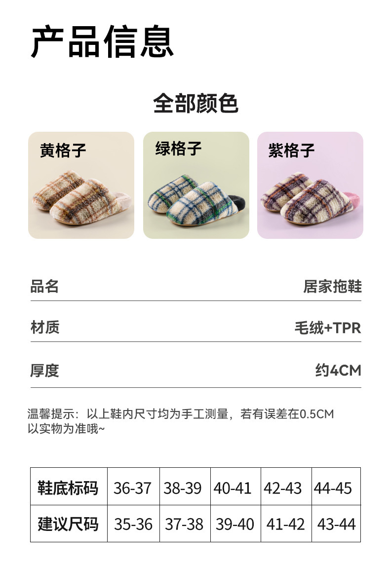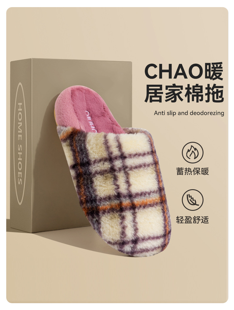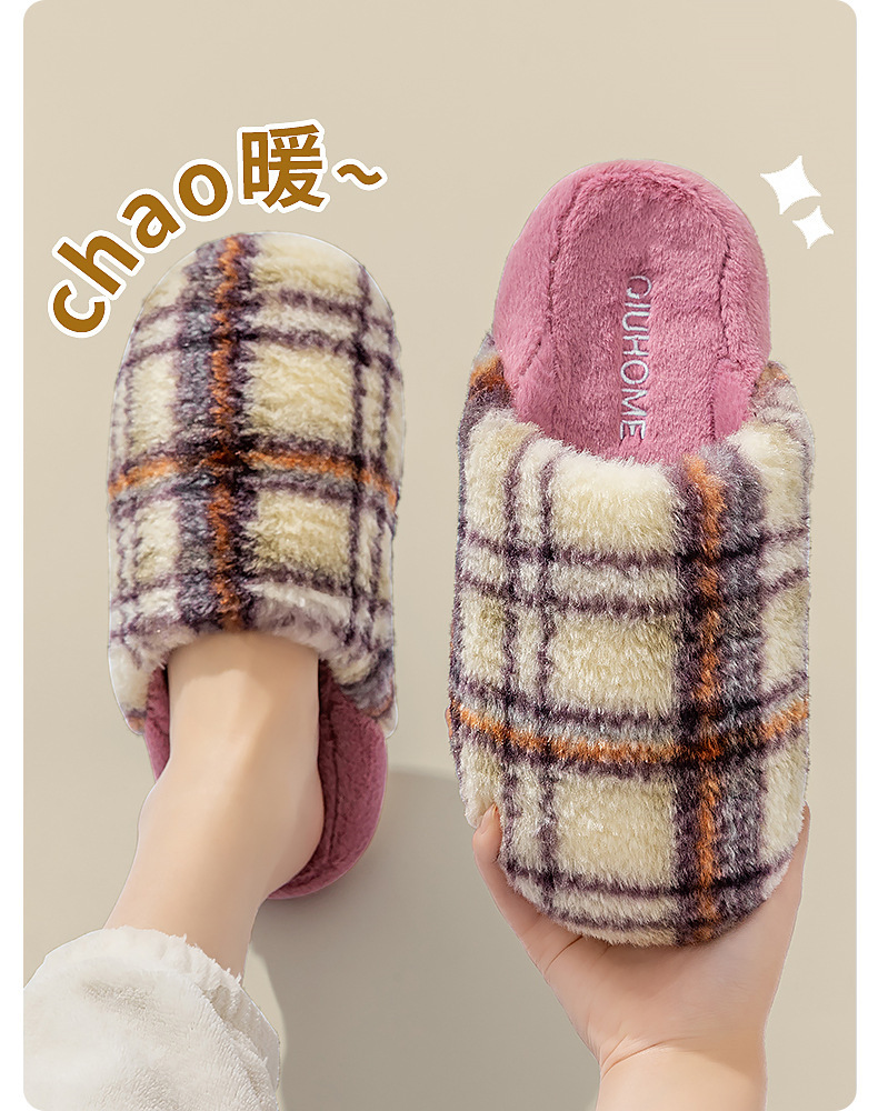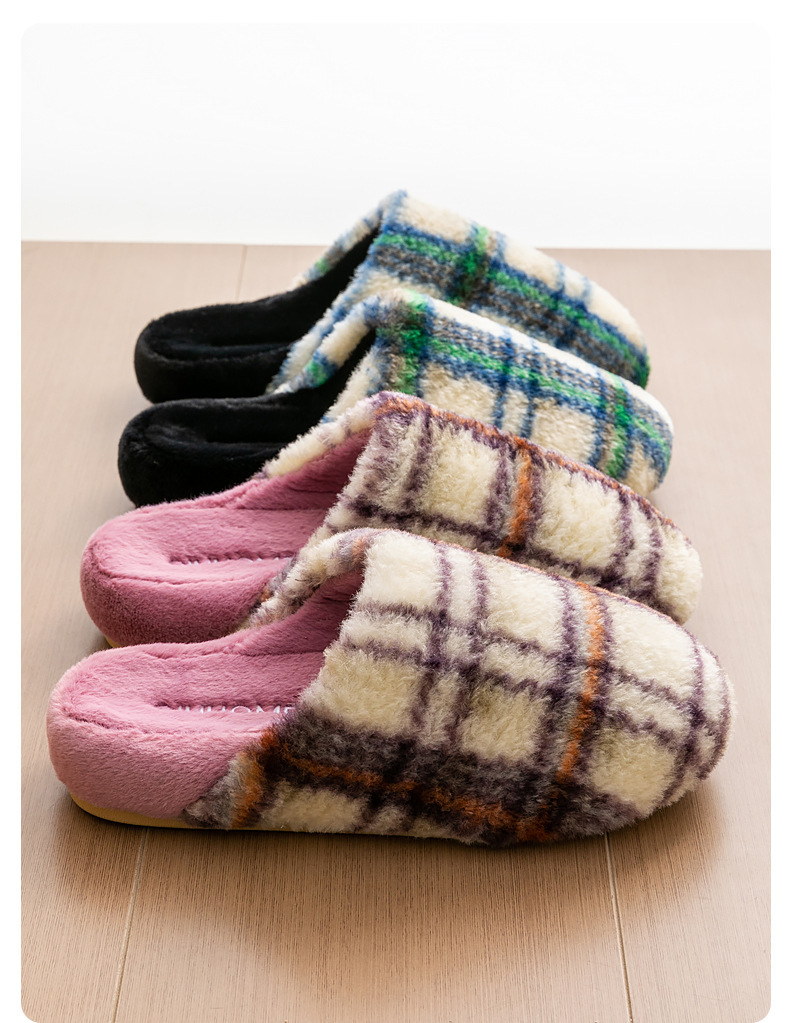 Ретро клетчатые хлопчатобумажные тапочки женские осенние и зимние дома дома толстая подошва тихая теплая плюшевая хлопчатобумажная обувь женская оптом