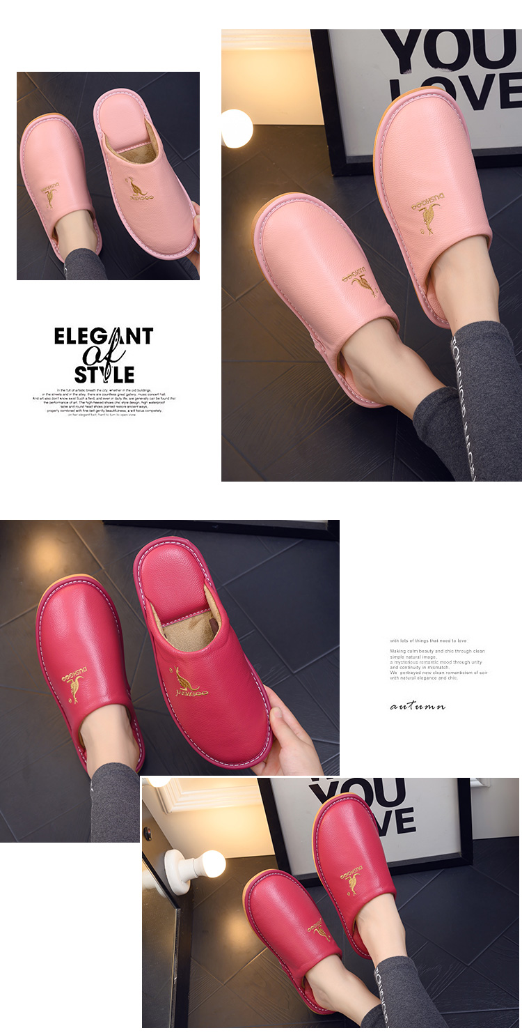 Кожаные домашние хлопчатобумажные тапочки мужские осенние и зимние дома в помещении водонепроницаемые нескользящие и толстые подошвы пара кожаные тапочки женские зимой