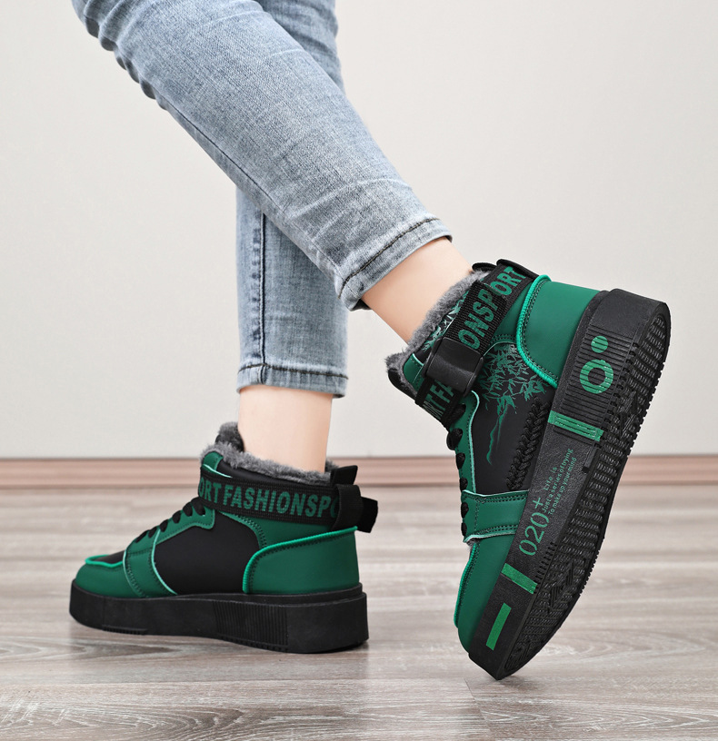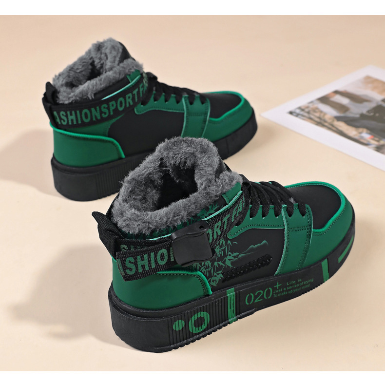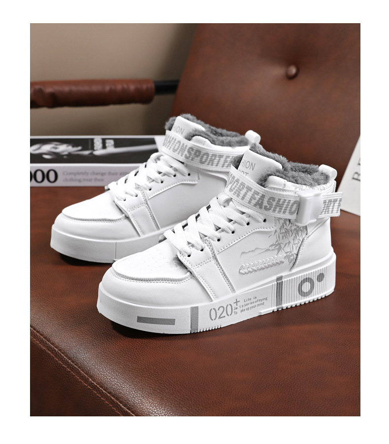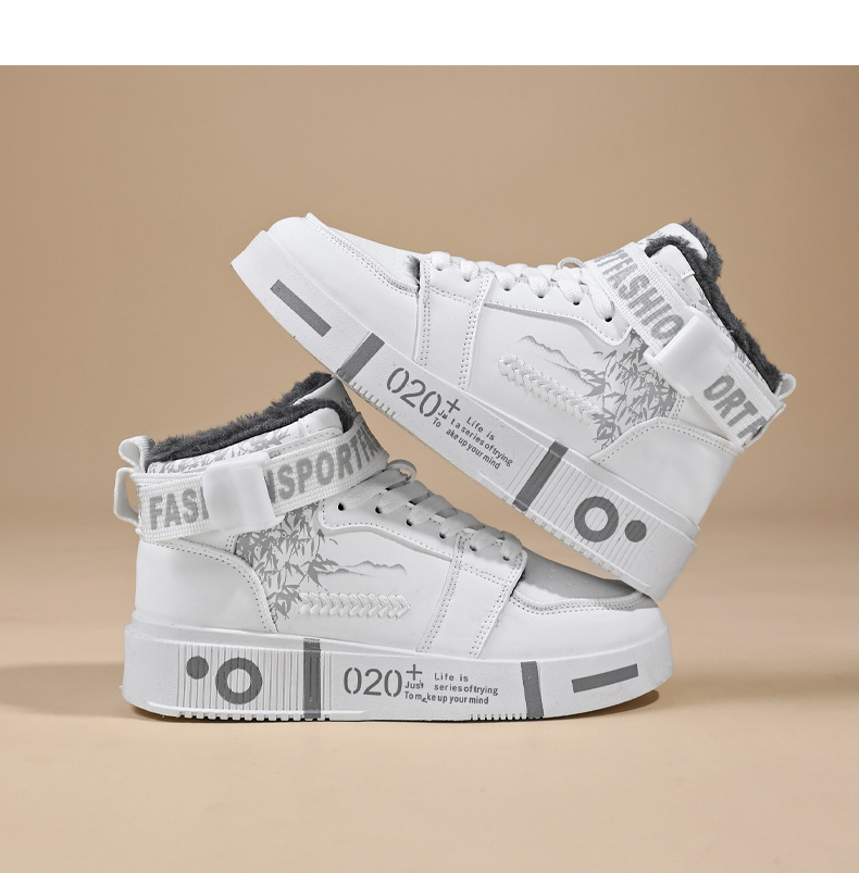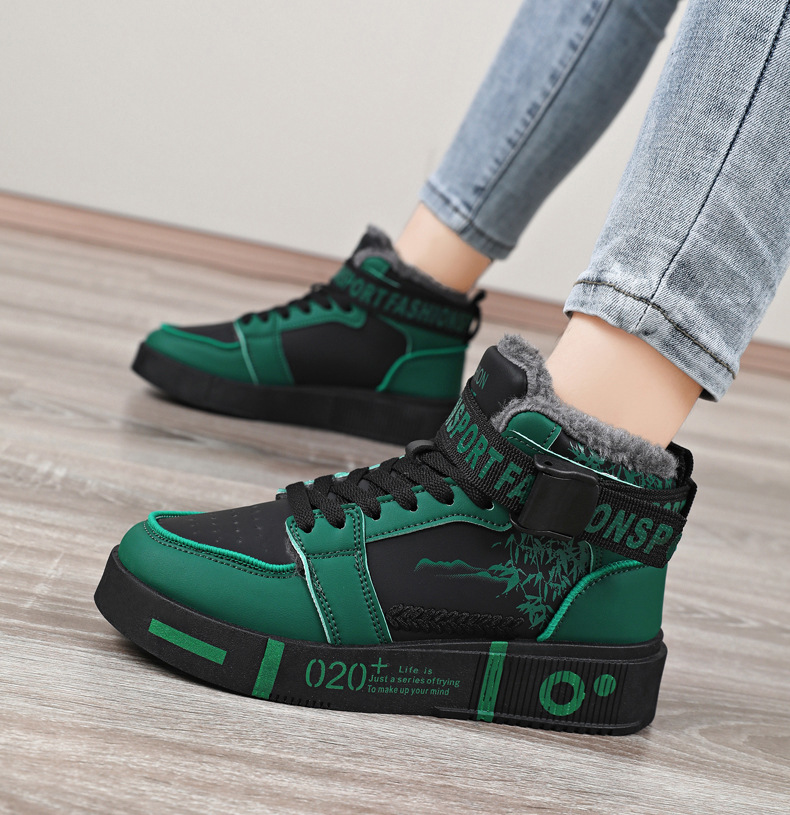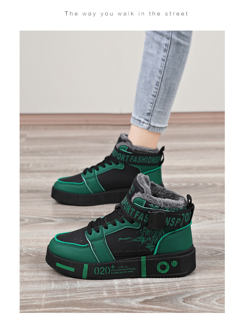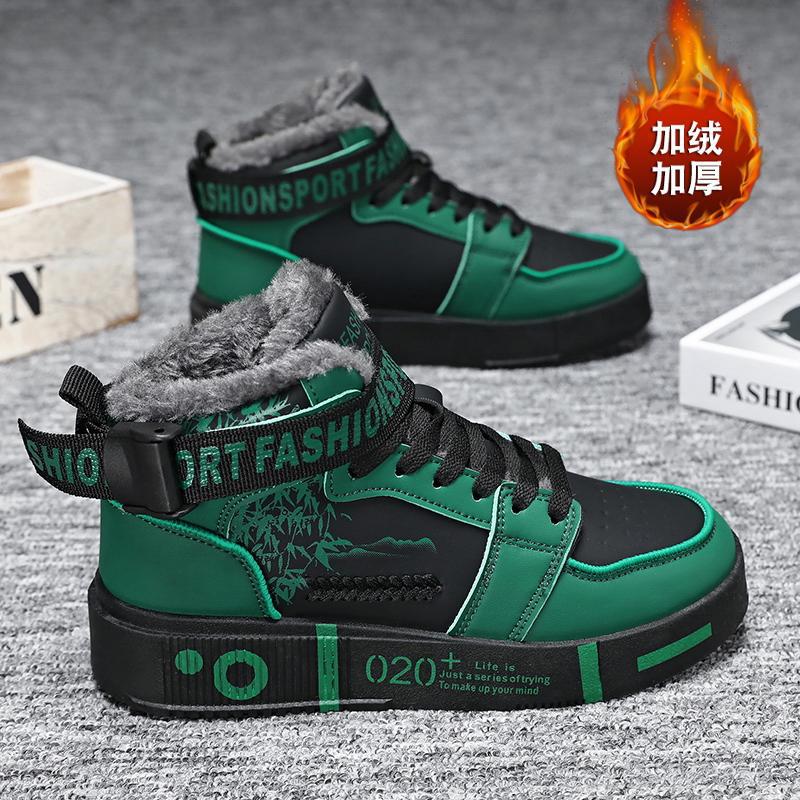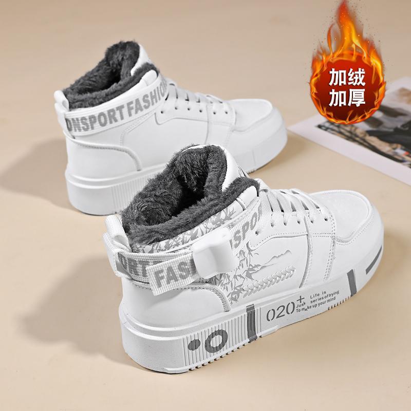 Высокая мужская обувь зимой 2025 новые бархатные утолщенные теплые две хлопчатобумажные обувь молодежная зимняя обувь спортивная повседневная обувь