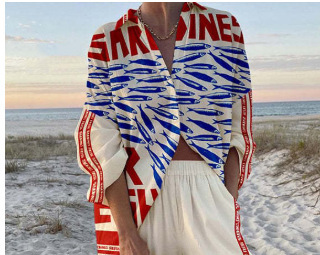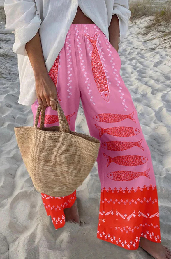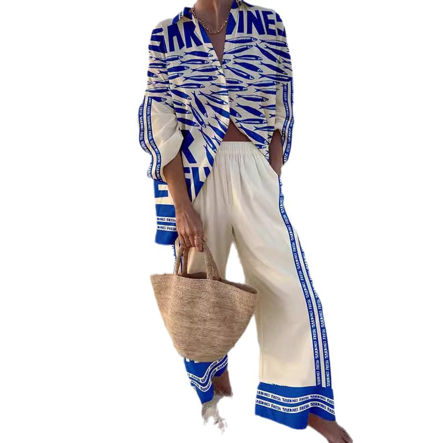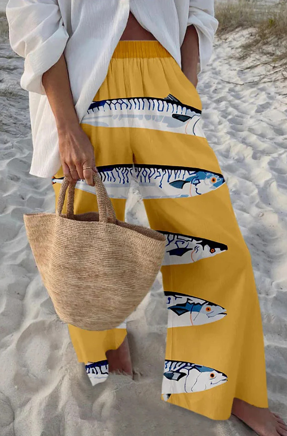 Европейский и американский стиль, креативный костюм с рисунком рыбы, повседневный, свободный, спортивный, широкие брюки, морская тематика, индивидуальный пошив POD