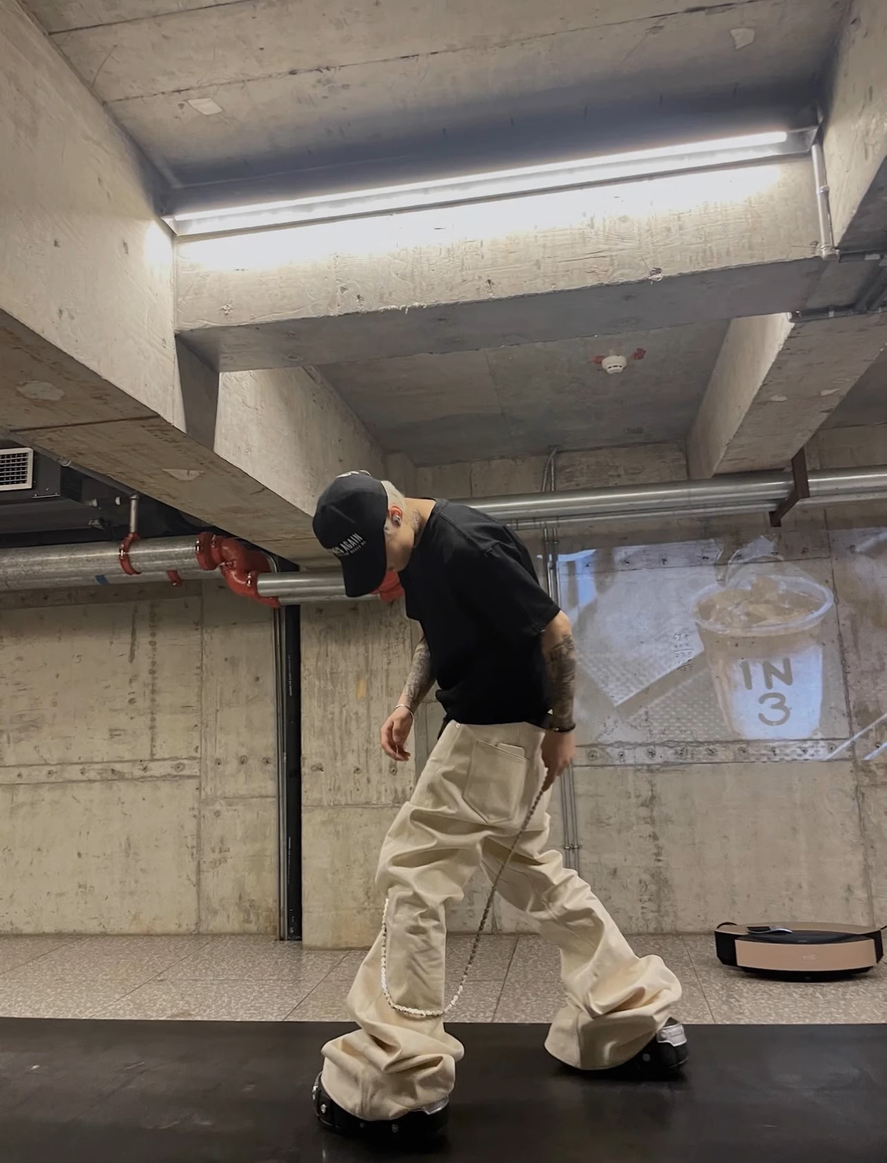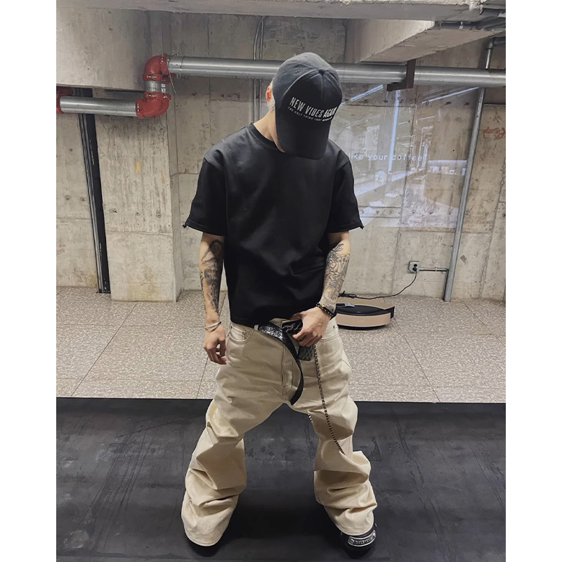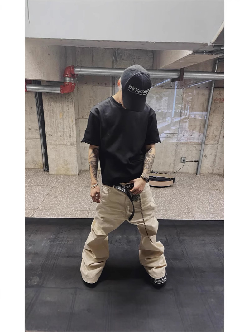 RO ветер нишевые темные высокие эластичные швабры, не совсем белые трусики джинсы мужской прилив, тонкие широкие брюки