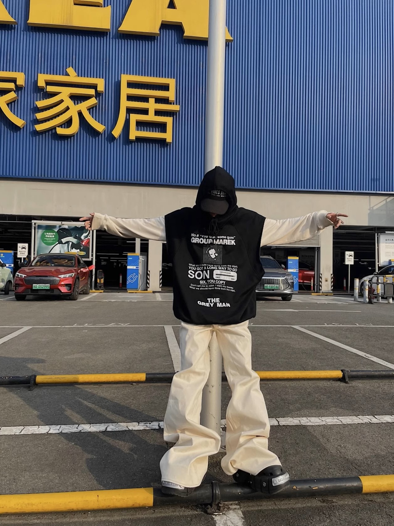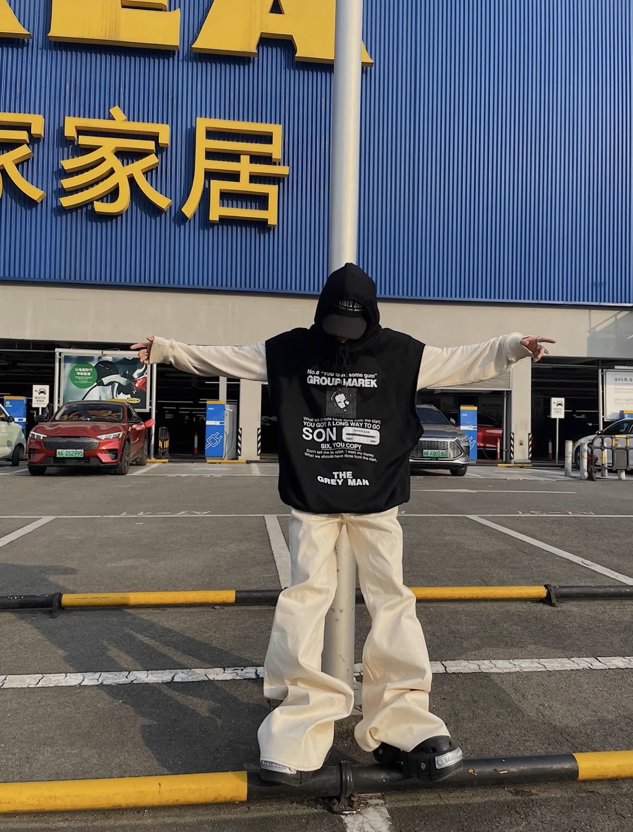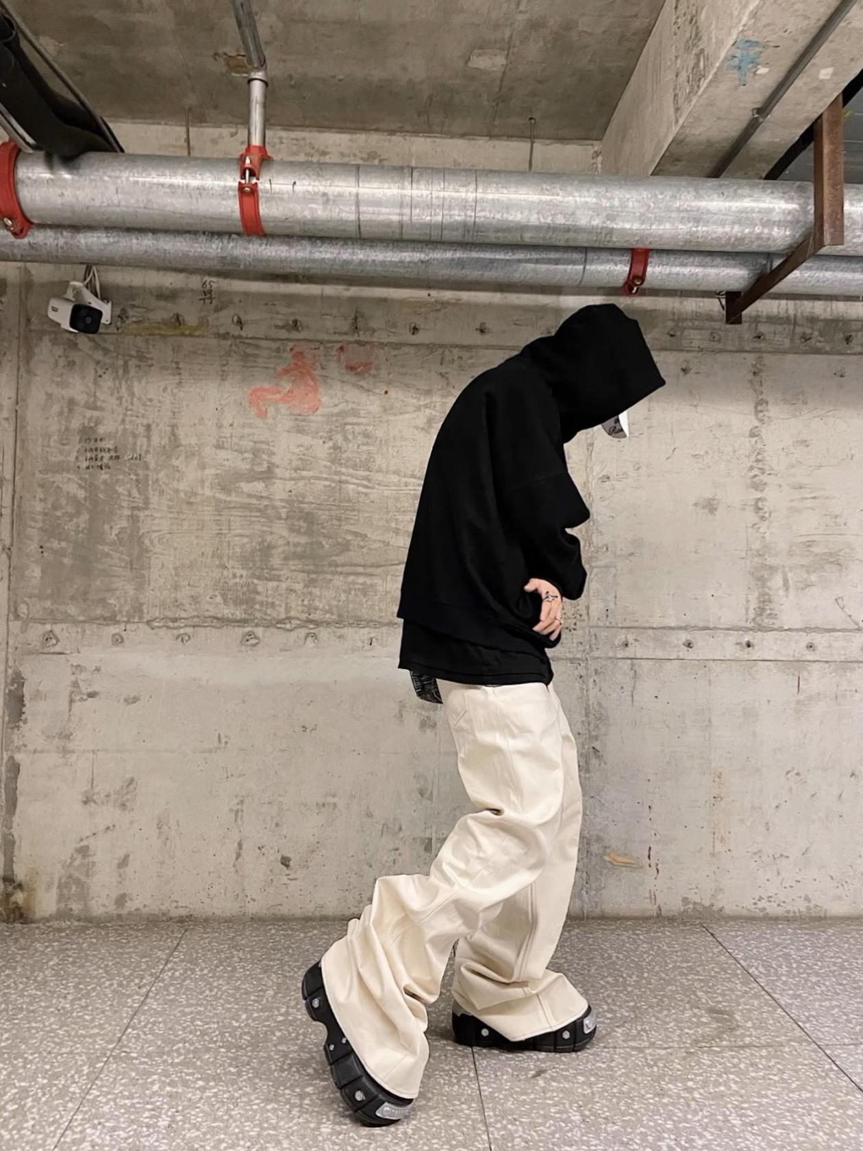 RO ветер нишевые темные высокие эластичные швабры, не совсем белые трусики джинсы мужской прилив, тонкие широкие брюки