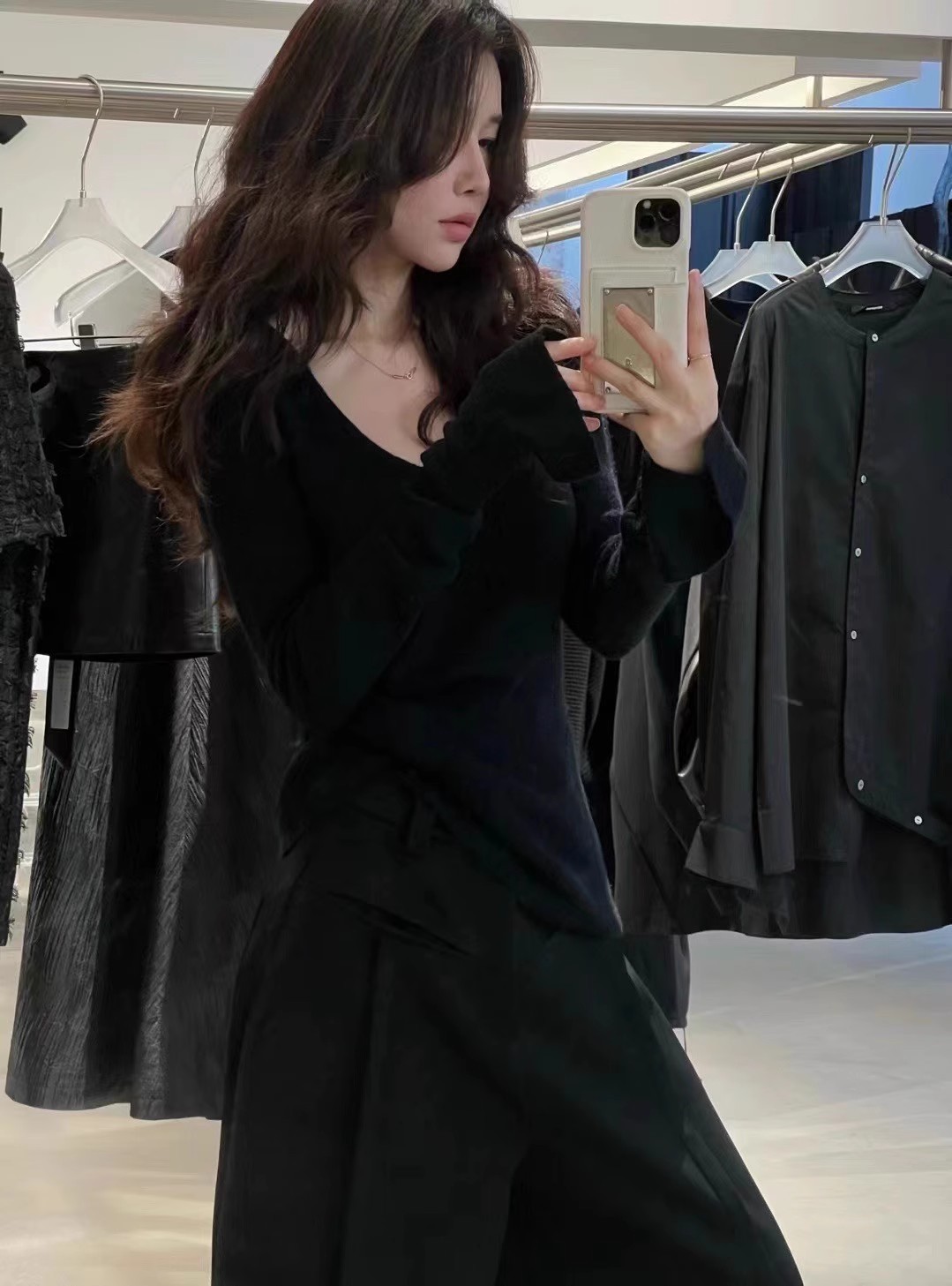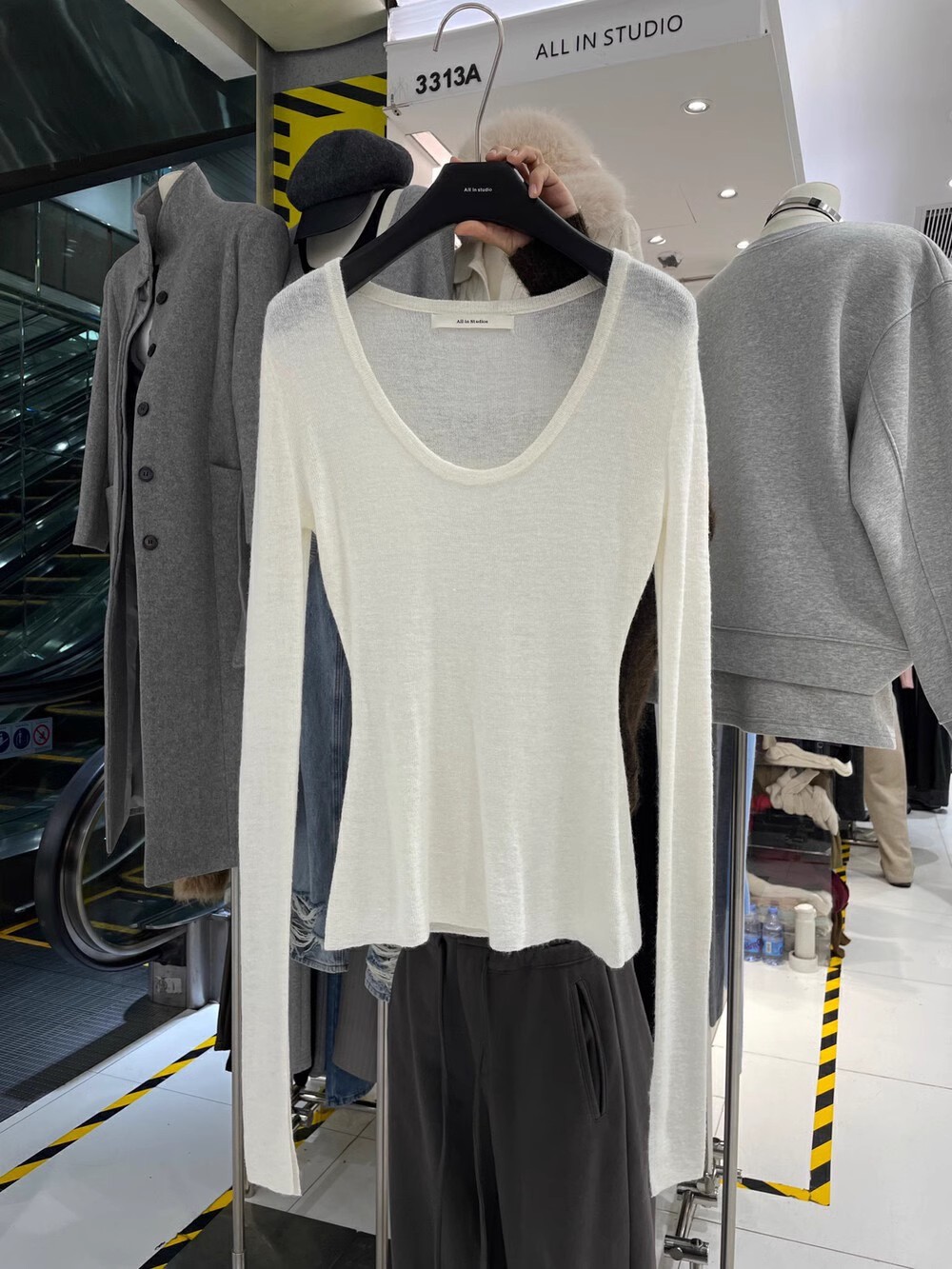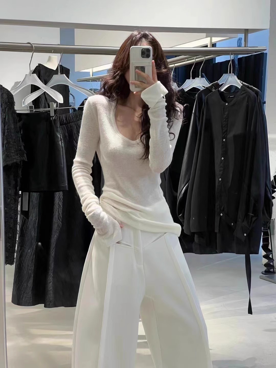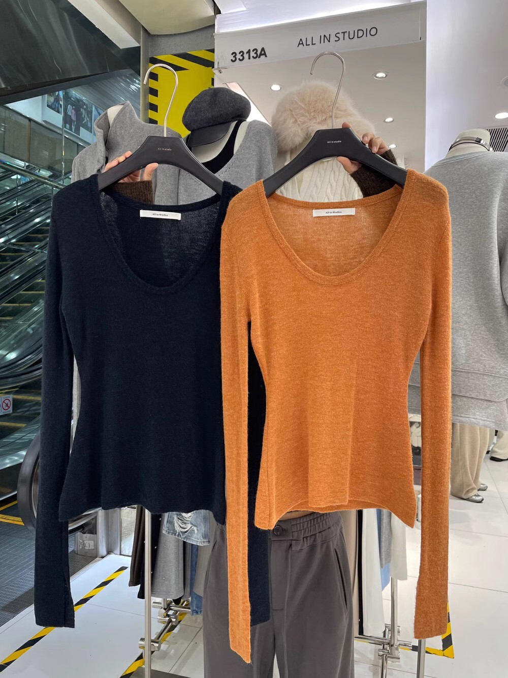 2024 осень и зима новые пригородные минималистские сплошные мягкие клейкие U-образные воротники тонкое тело с длинными рукавами шерстяная трикотажная нижняя рубашка женская