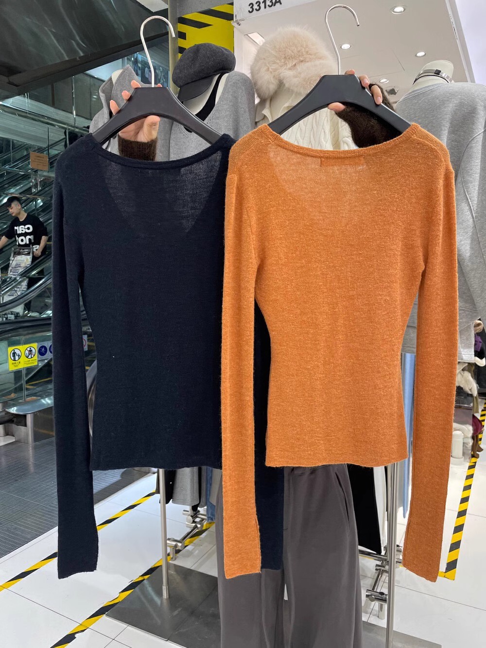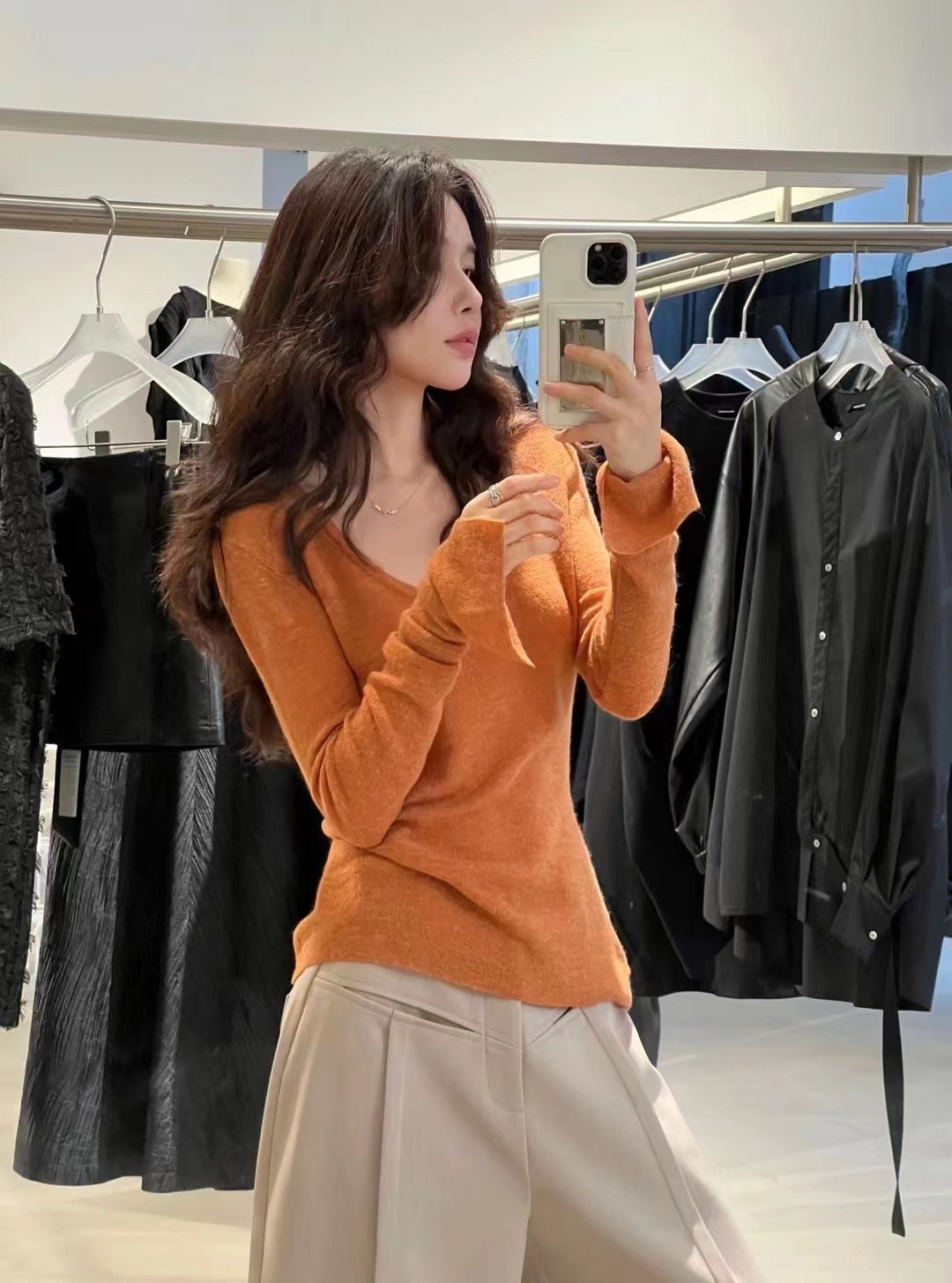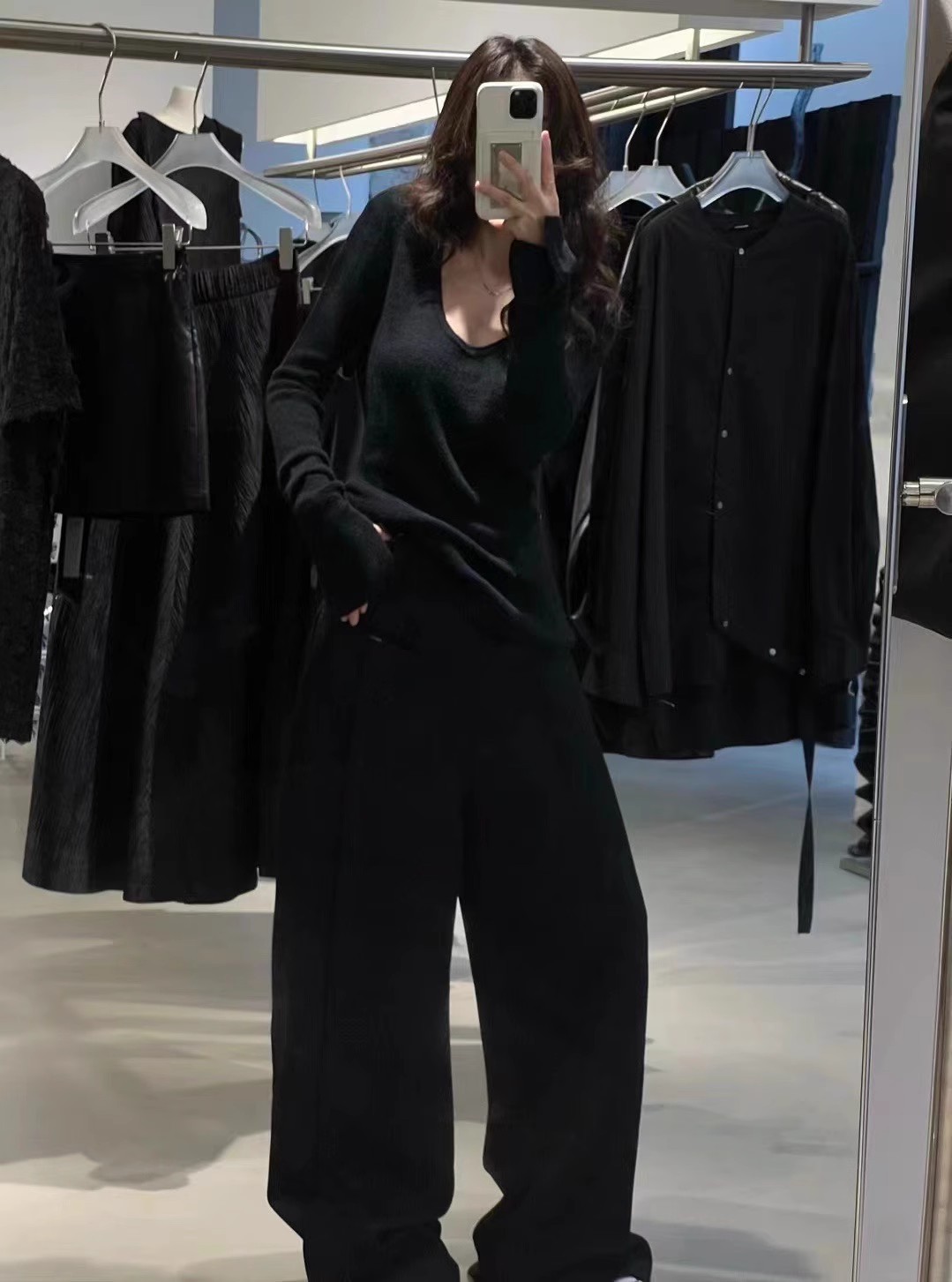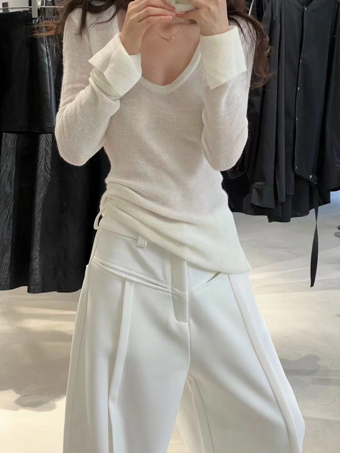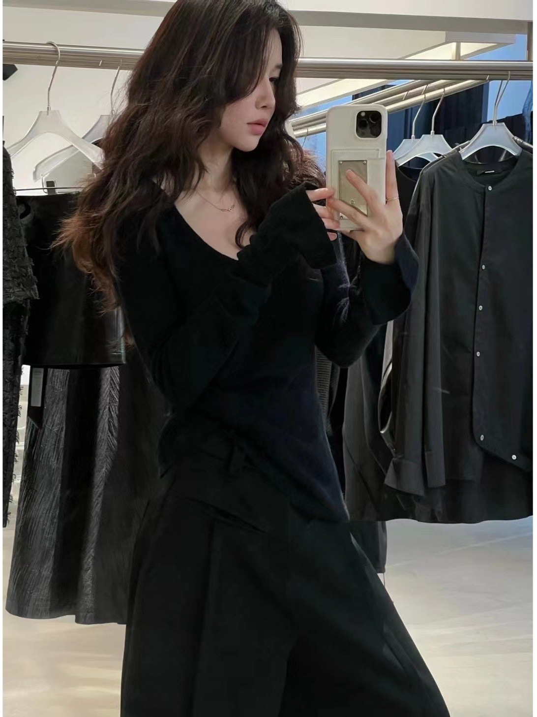 2024 осень и зима новые пригородные минималистские сплошные мягкие клейкие U-образные воротники тонкое тело с длинными рукавами шерстяная трикотажная нижняя рубашка женская