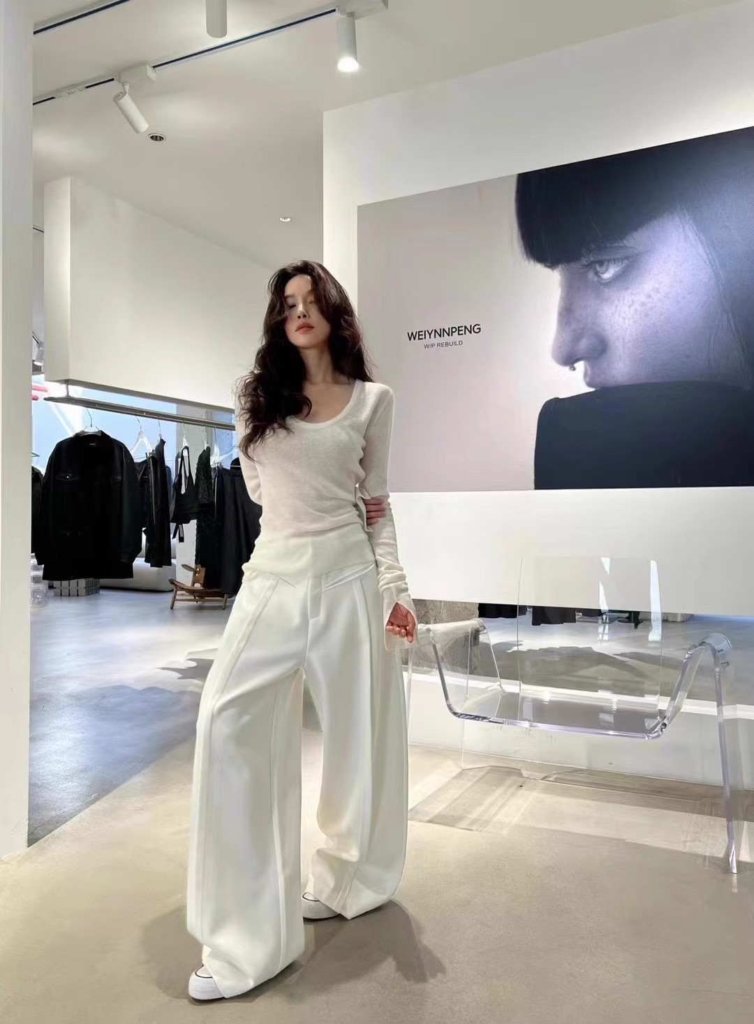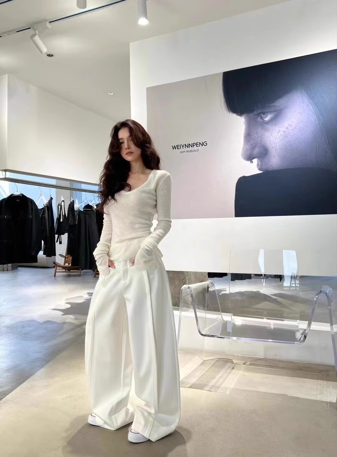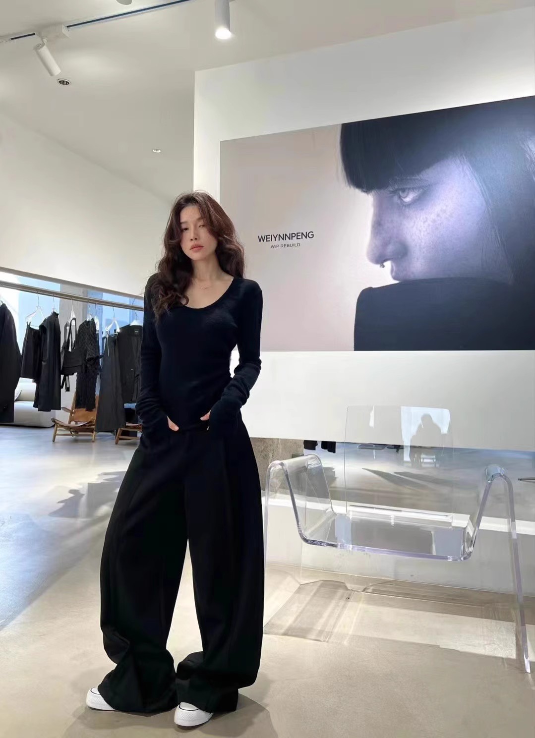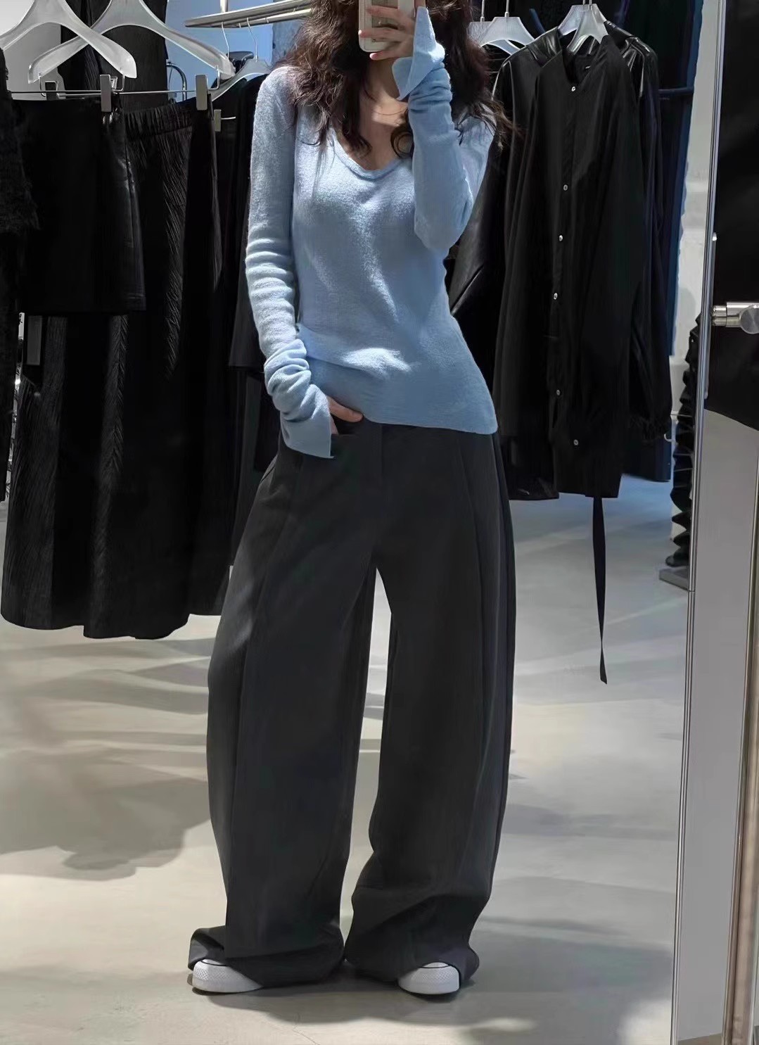 2024 осень и зима новые пригородные минималистские сплошные мягкие клейкие U-образные воротники тонкое тело с длинными рукавами шерстяная трикотажная нижняя рубашка женская