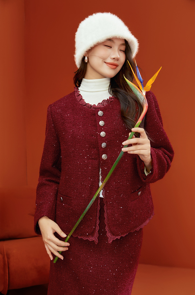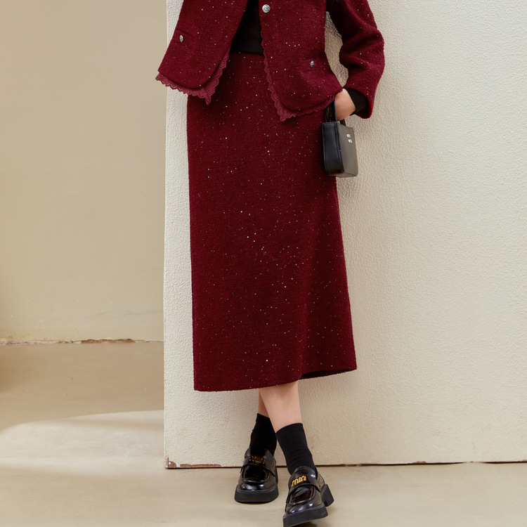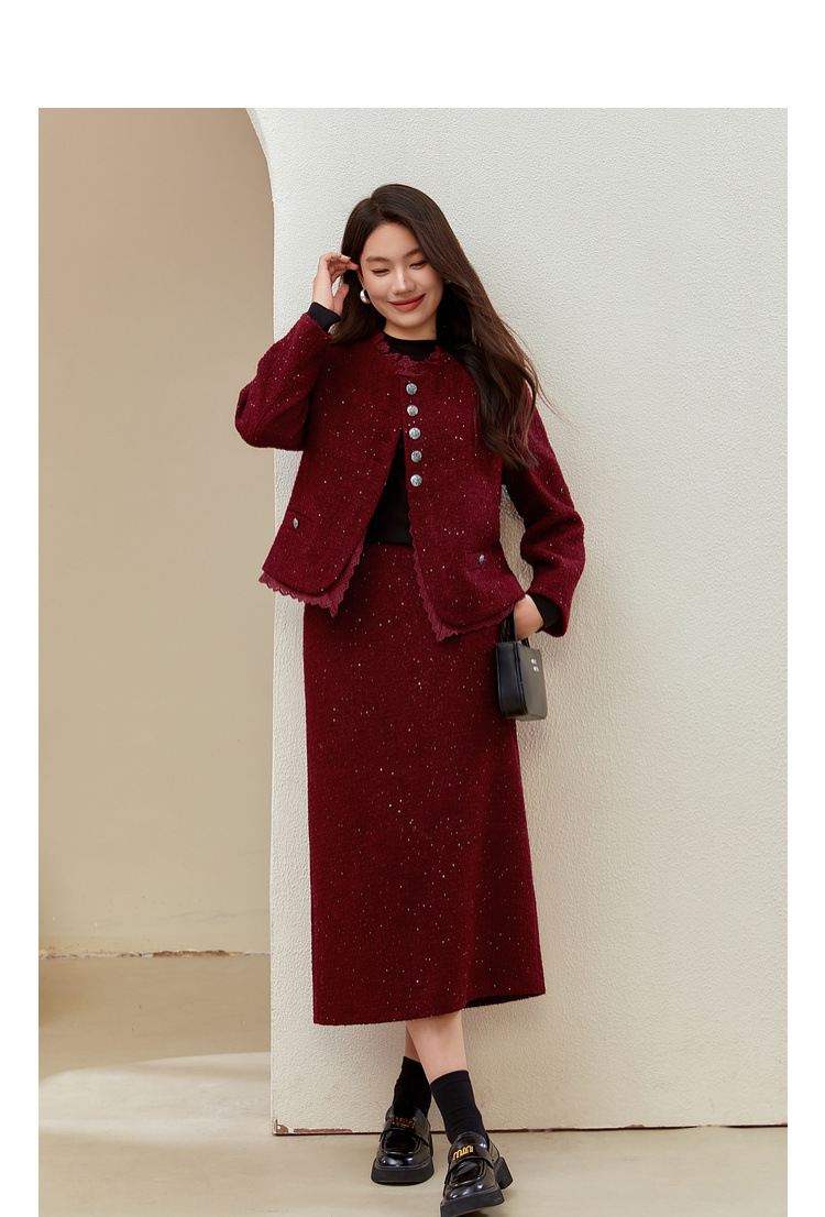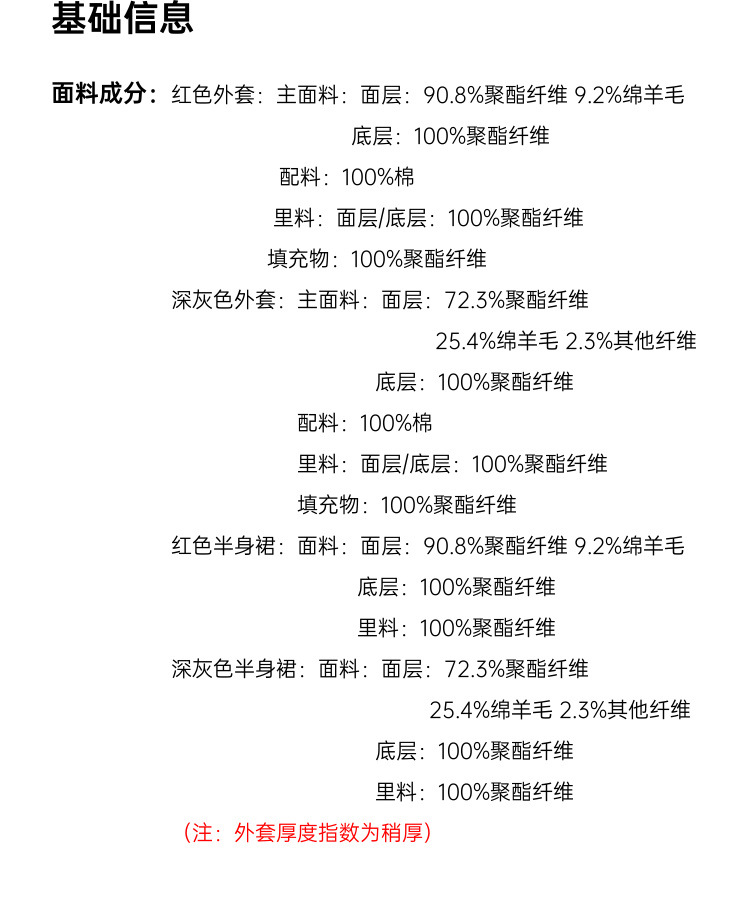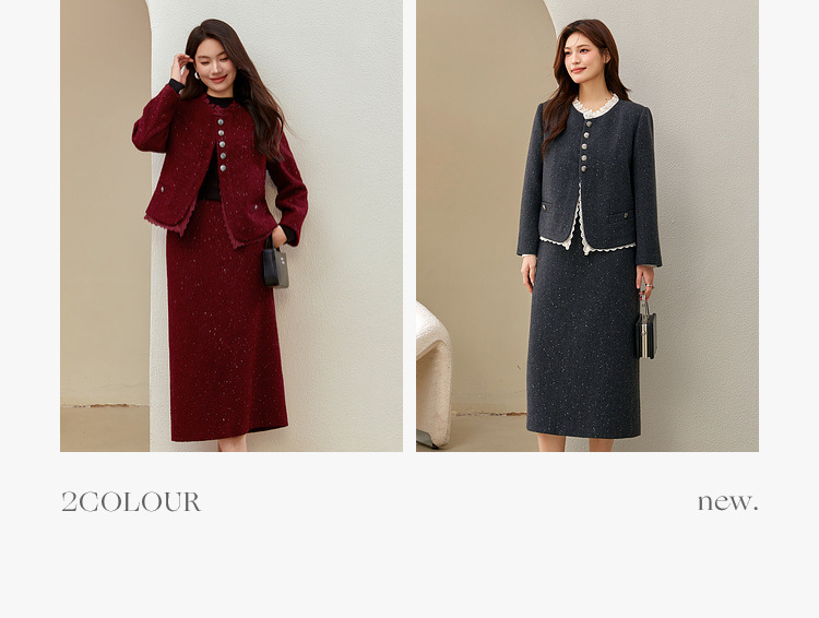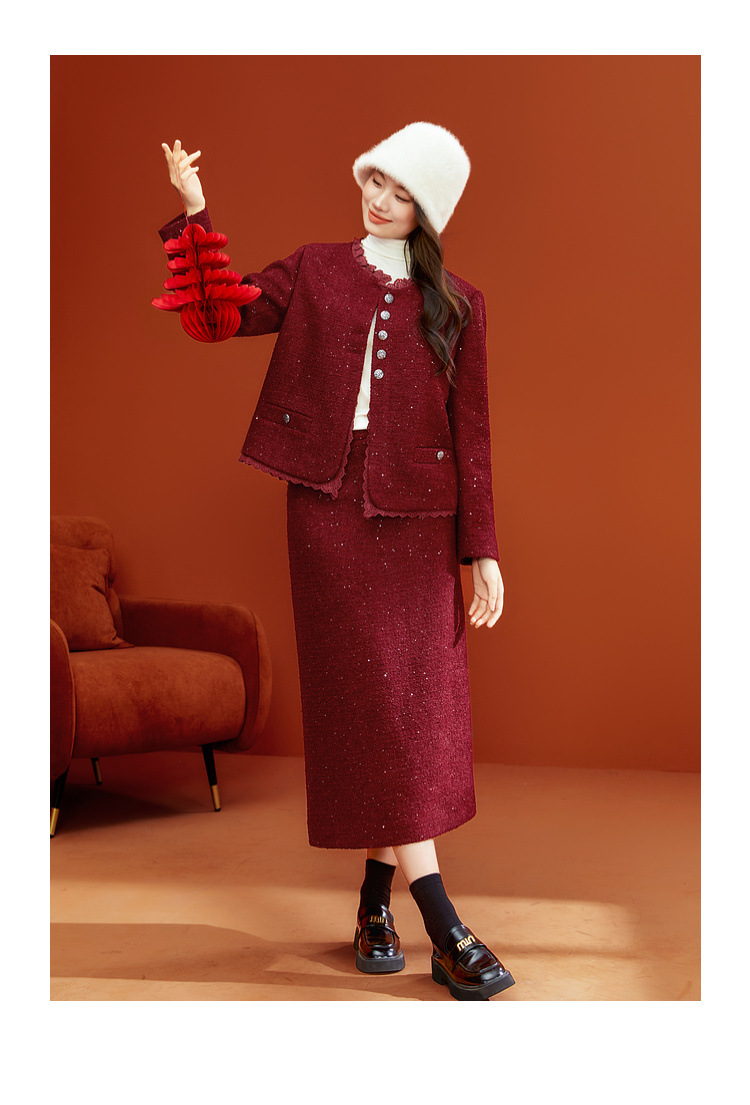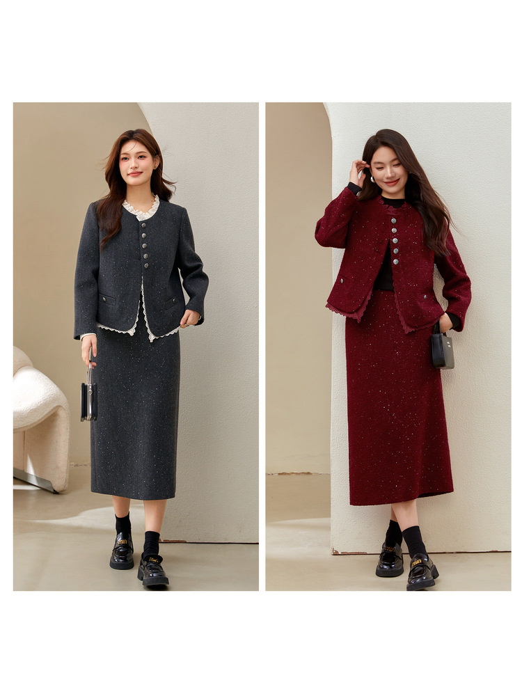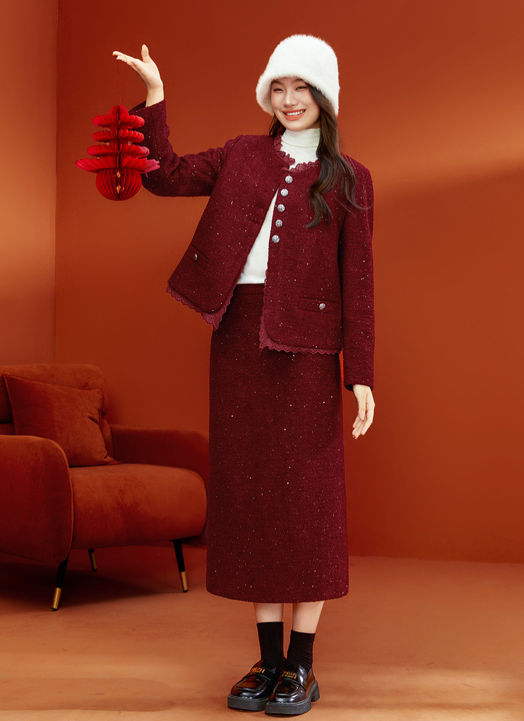 Красный [Пальто QJ5342]; Темно-серый [куртка QJ5342]; Красный [юбка QJ5341]; Темно-серая [юбка QJ5341]