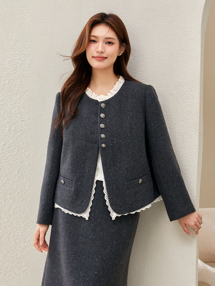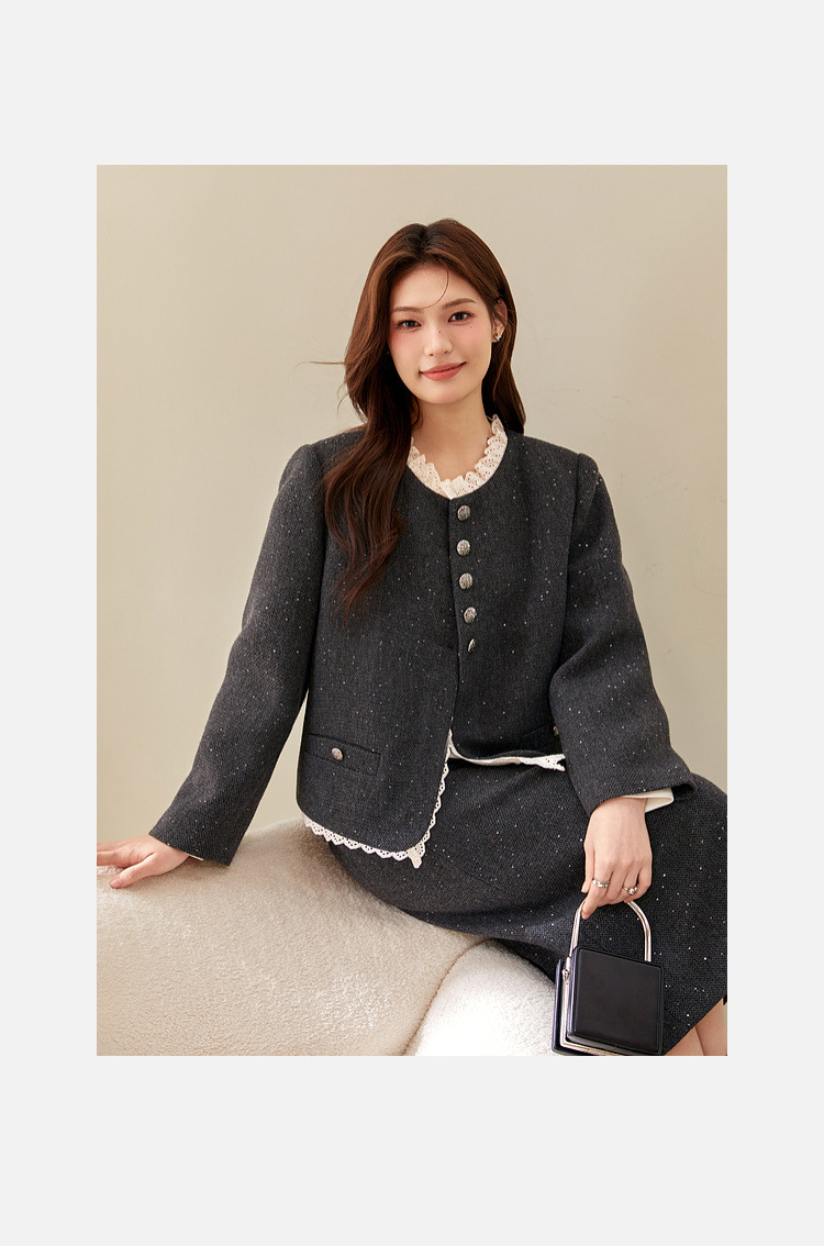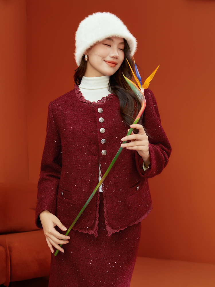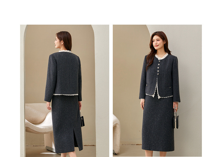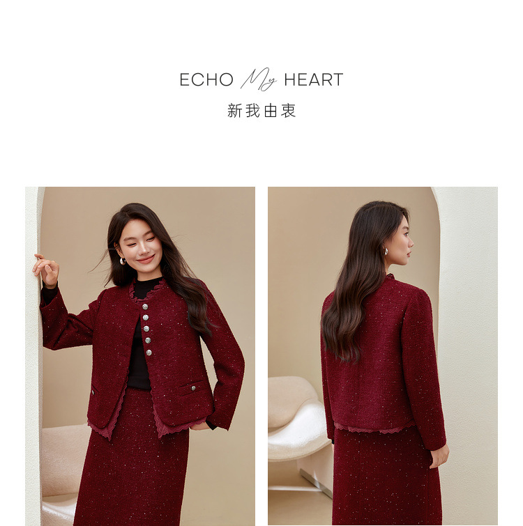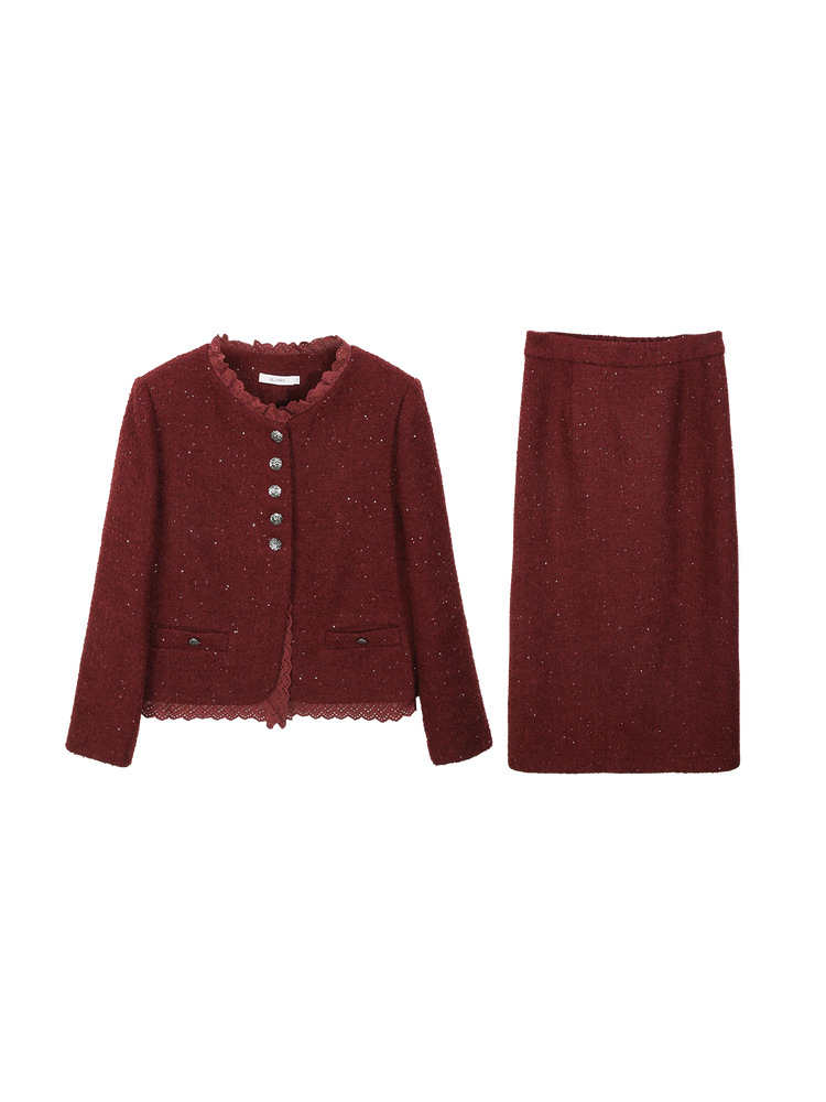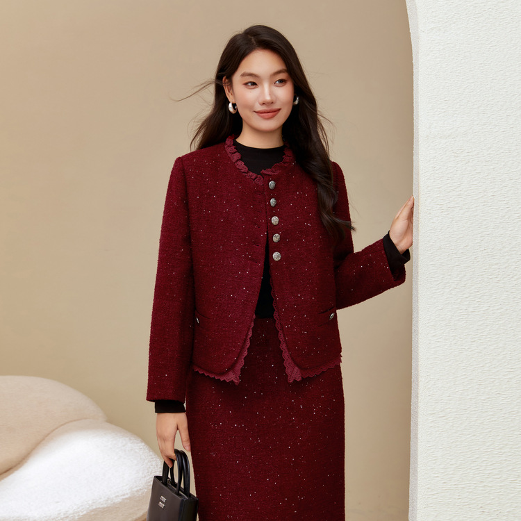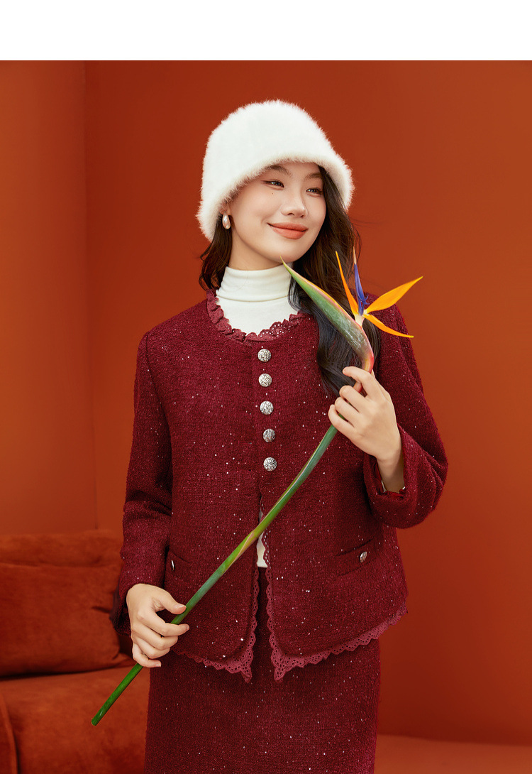 Красный [Пальто QJ5342]; Темно-серый [куртка QJ5342]; Красный [юбка QJ5341]; Темно-серая [юбка QJ5341]