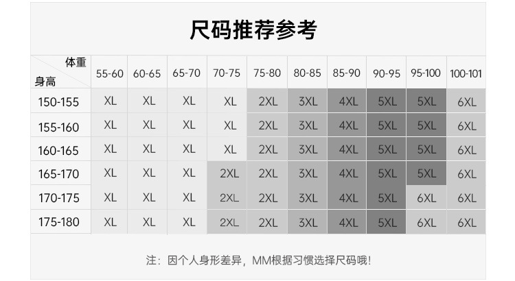 XL; 2XL; 3XL; 4XL; 5XL; 6XL