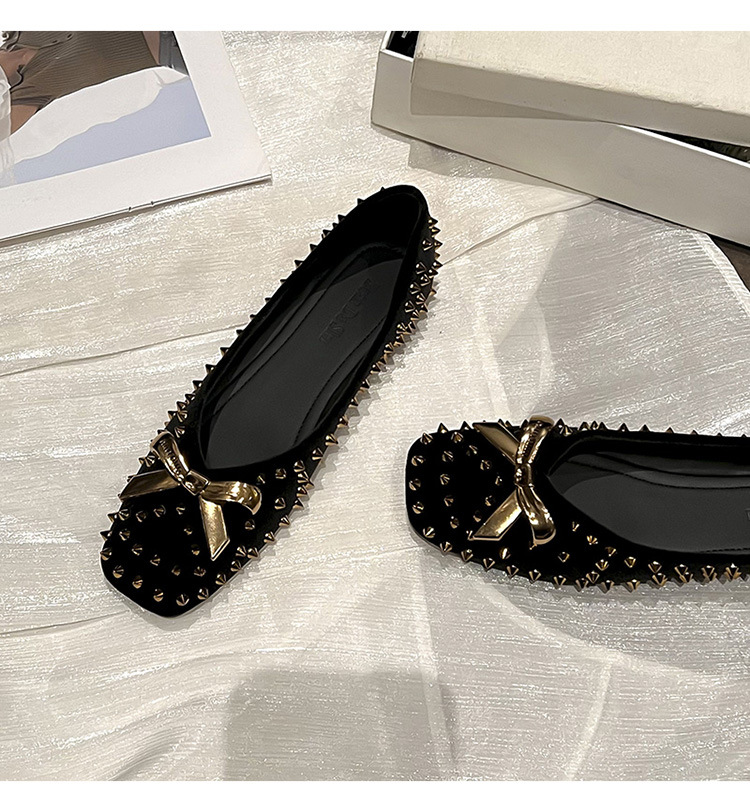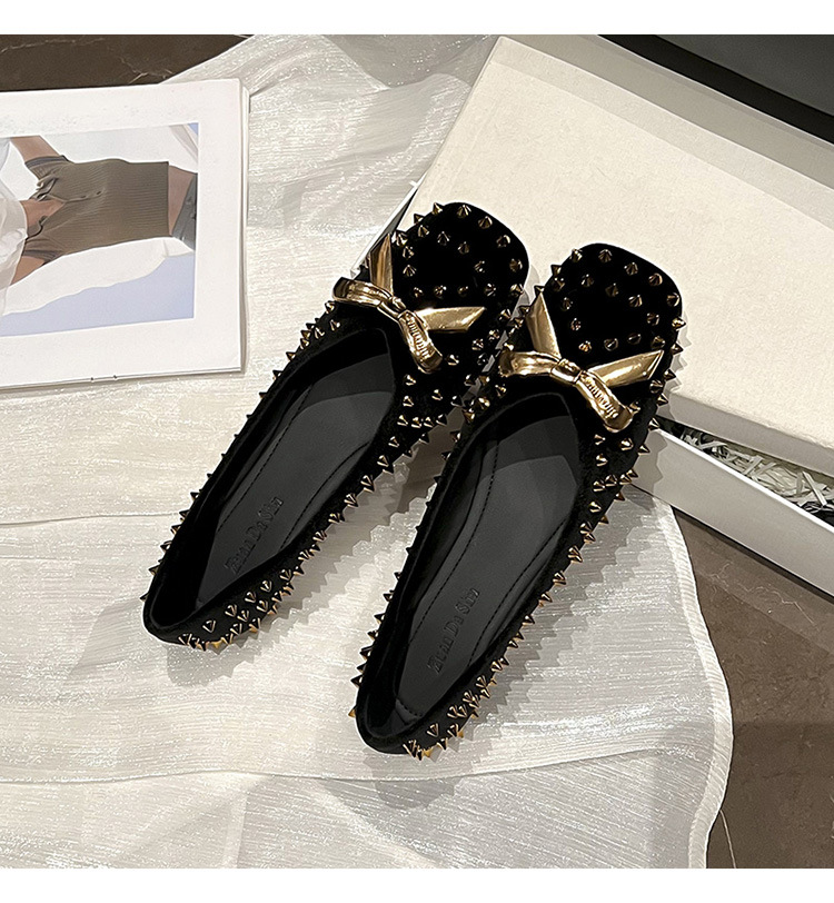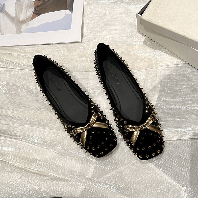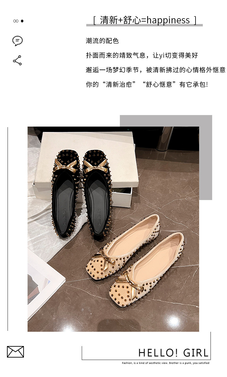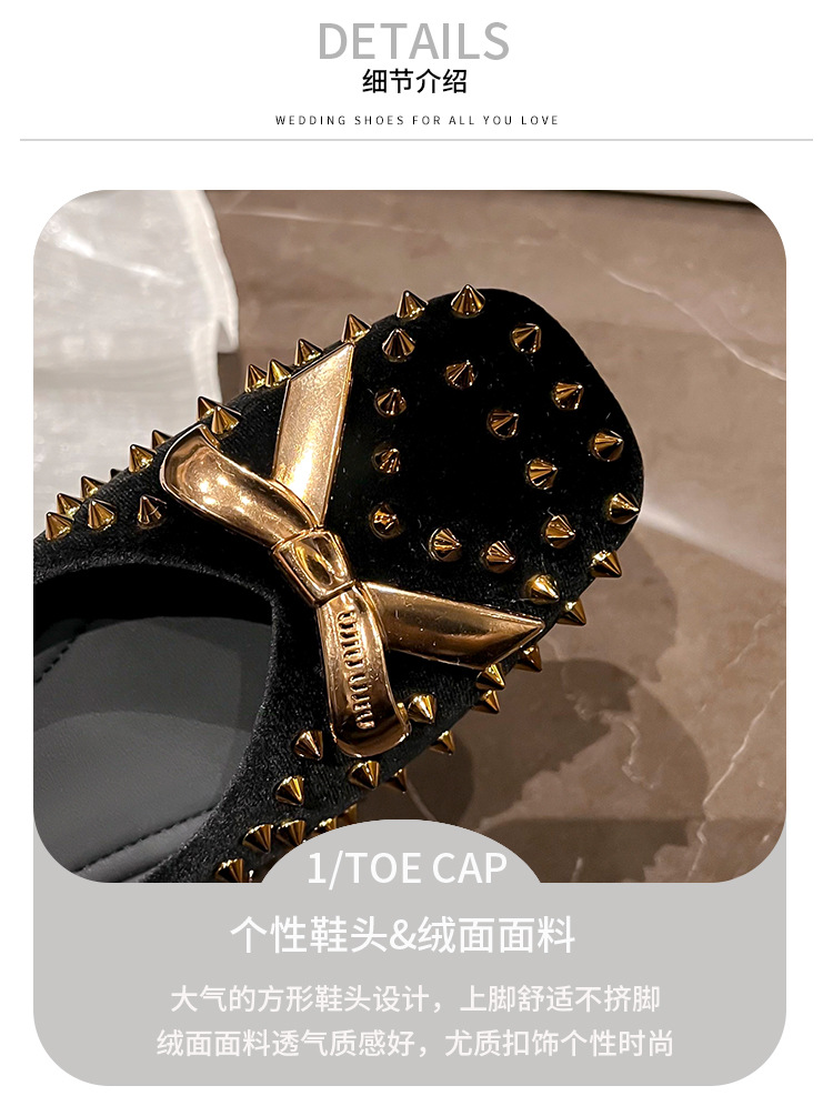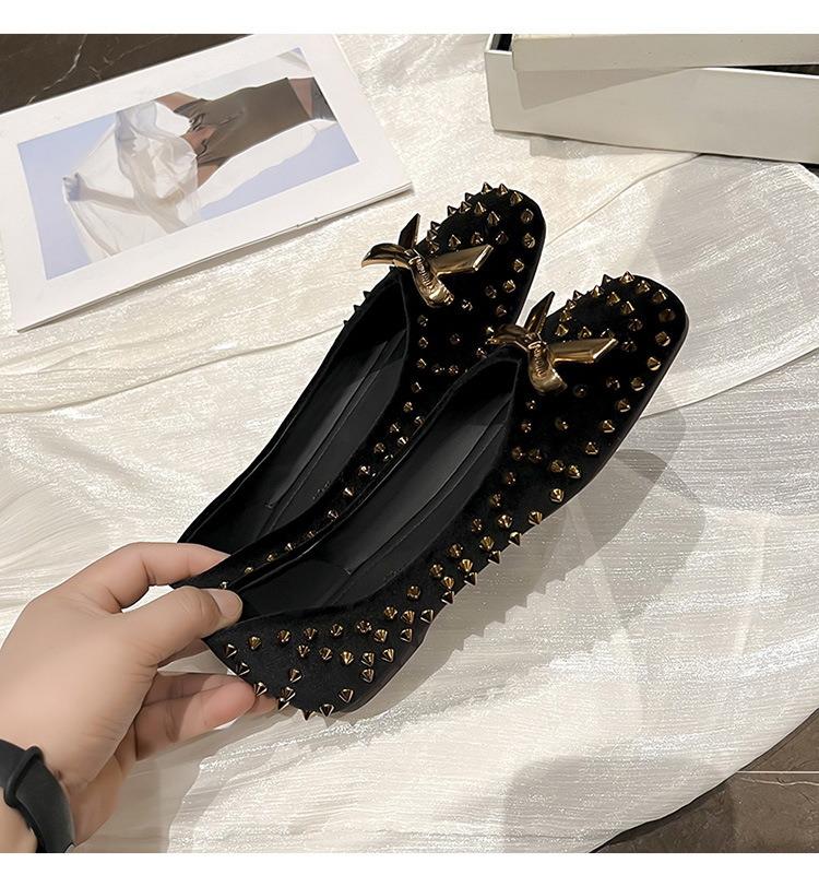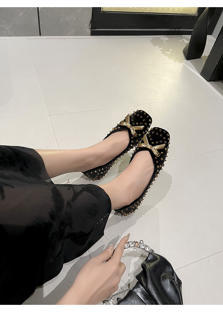 2025 новый дикий маленький ароматный ветер заклепки бобовые ботинки квадратная голова мягкая подошва и легкие рот женские одиночные ботинки большого размера женские ботинки 41-43