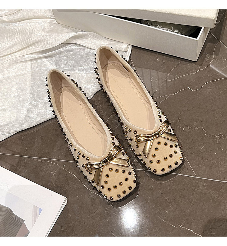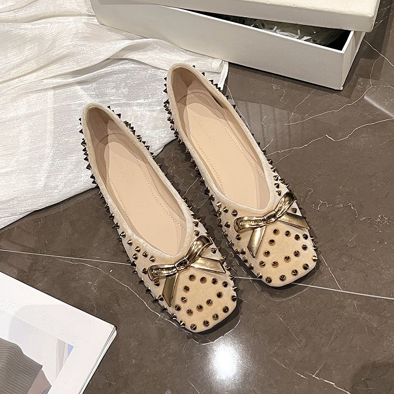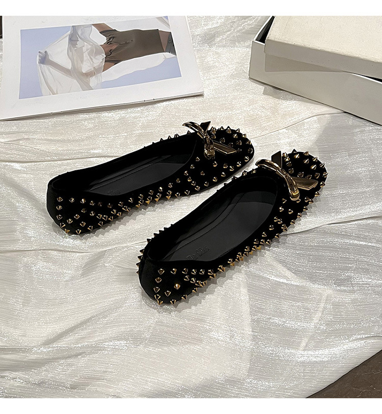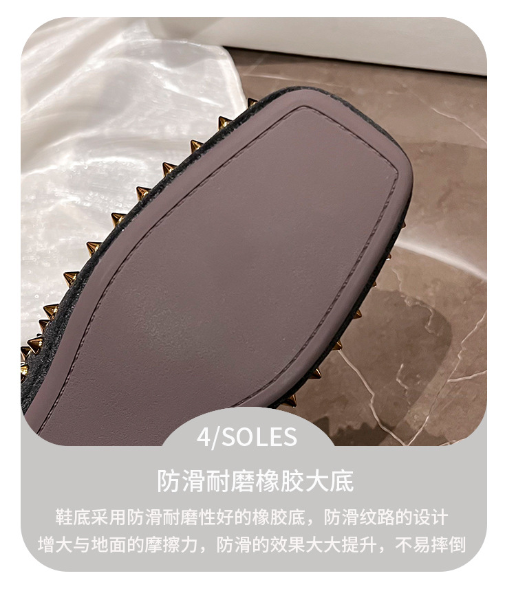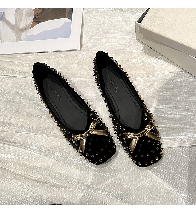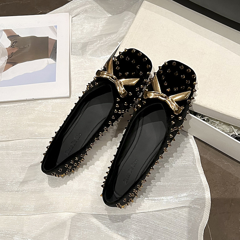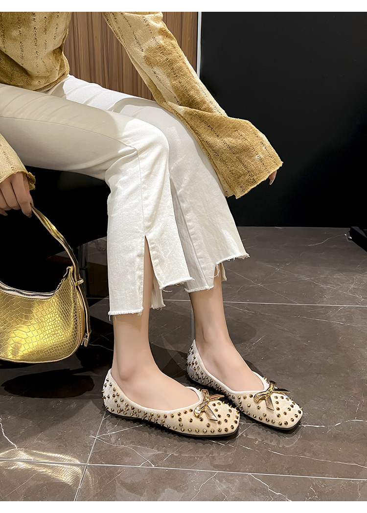 2025 новый дикий маленький ароматный ветер заклепки бобовые ботинки квадратная голова мягкая подошва и легкие рот женские одиночные ботинки большого размера женские ботинки 41-43