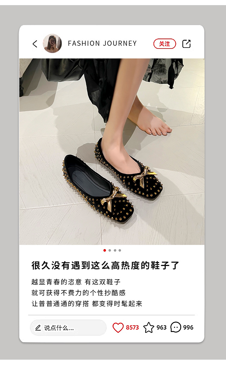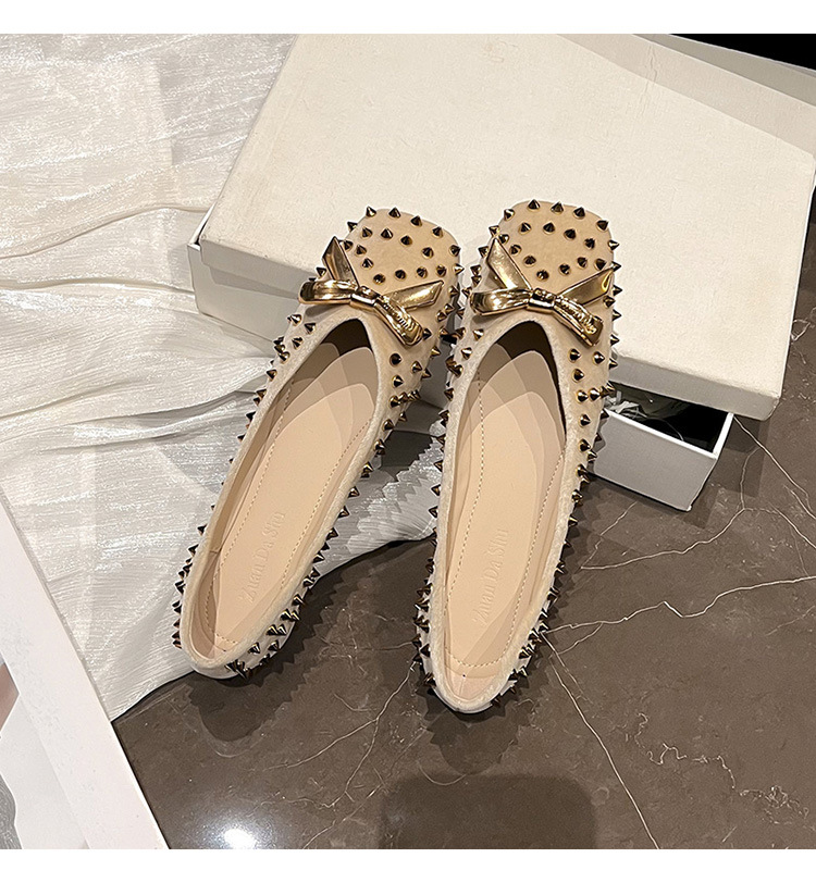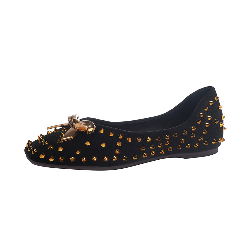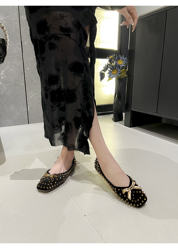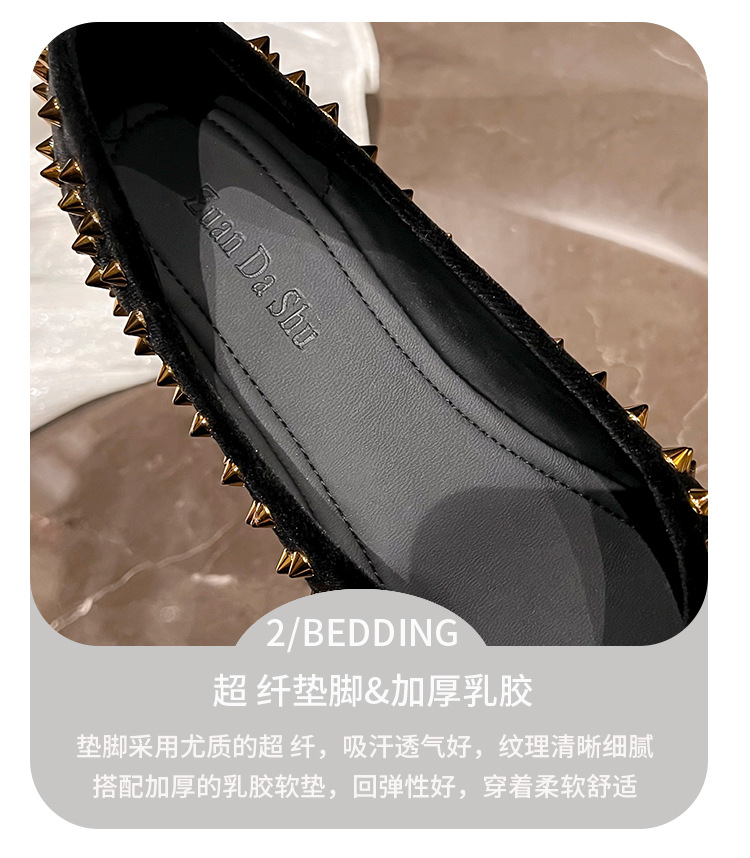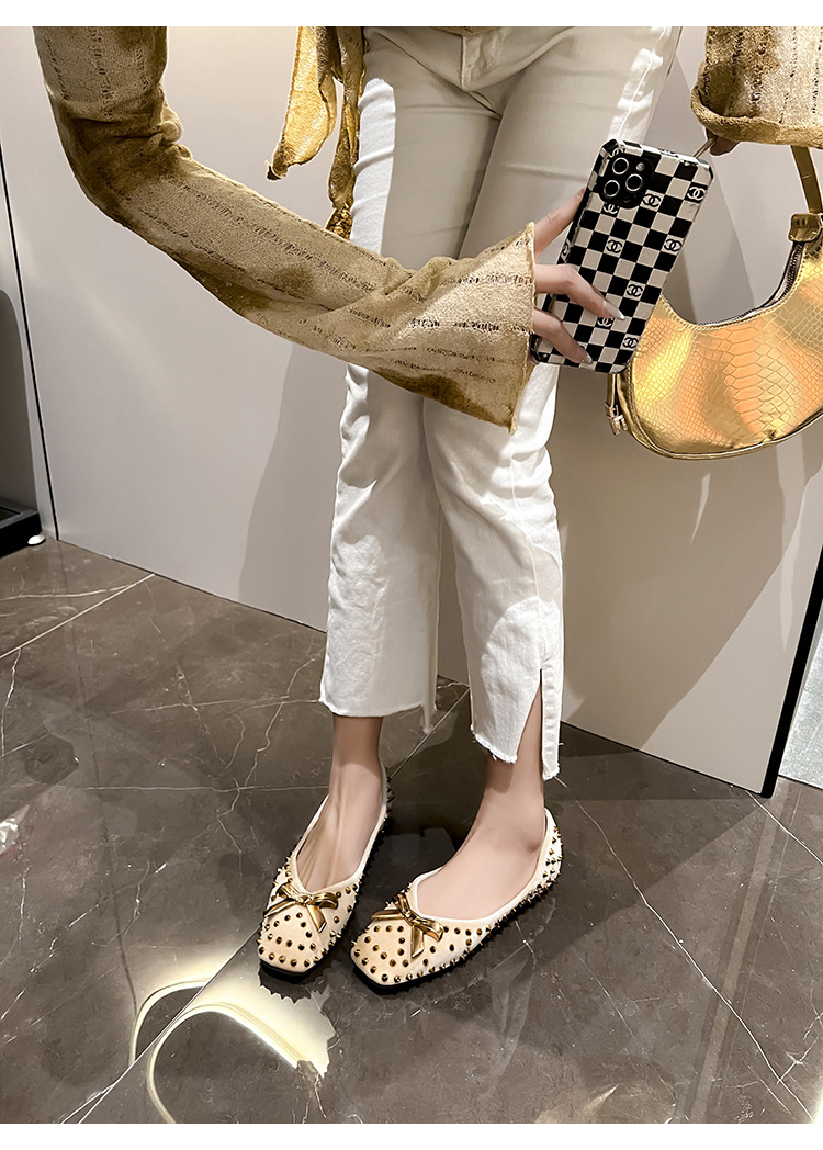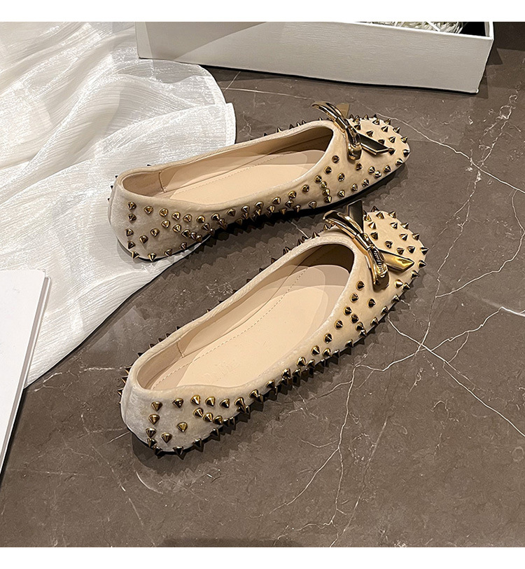 2025 новый дикий маленький ароматный ветер заклепки бобовые ботинки квадратная голова мягкая подошва и легкие рот женские одиночные ботинки большого размера женские ботинки 41-43