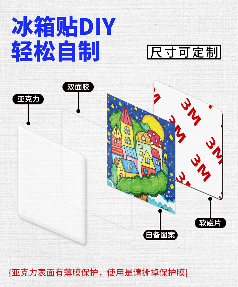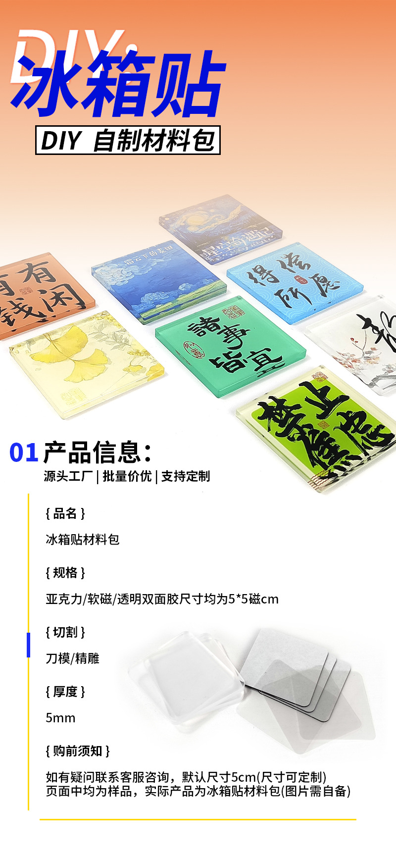 Набор для творчества: магнитные акриловые магниты на холодильник, квадратные прозрачные плитки, форма квадрат, с магнитными элементами