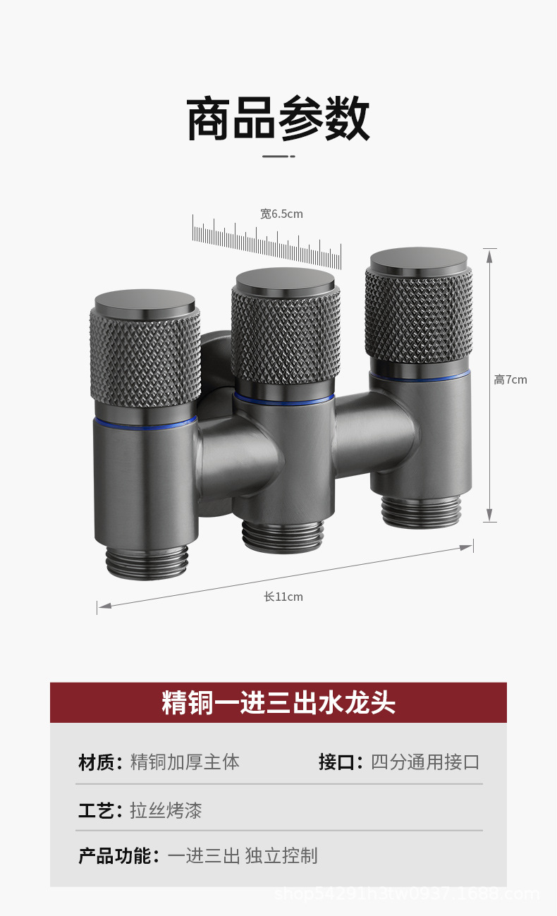 Один вход, три выхода, медный угловой клапан