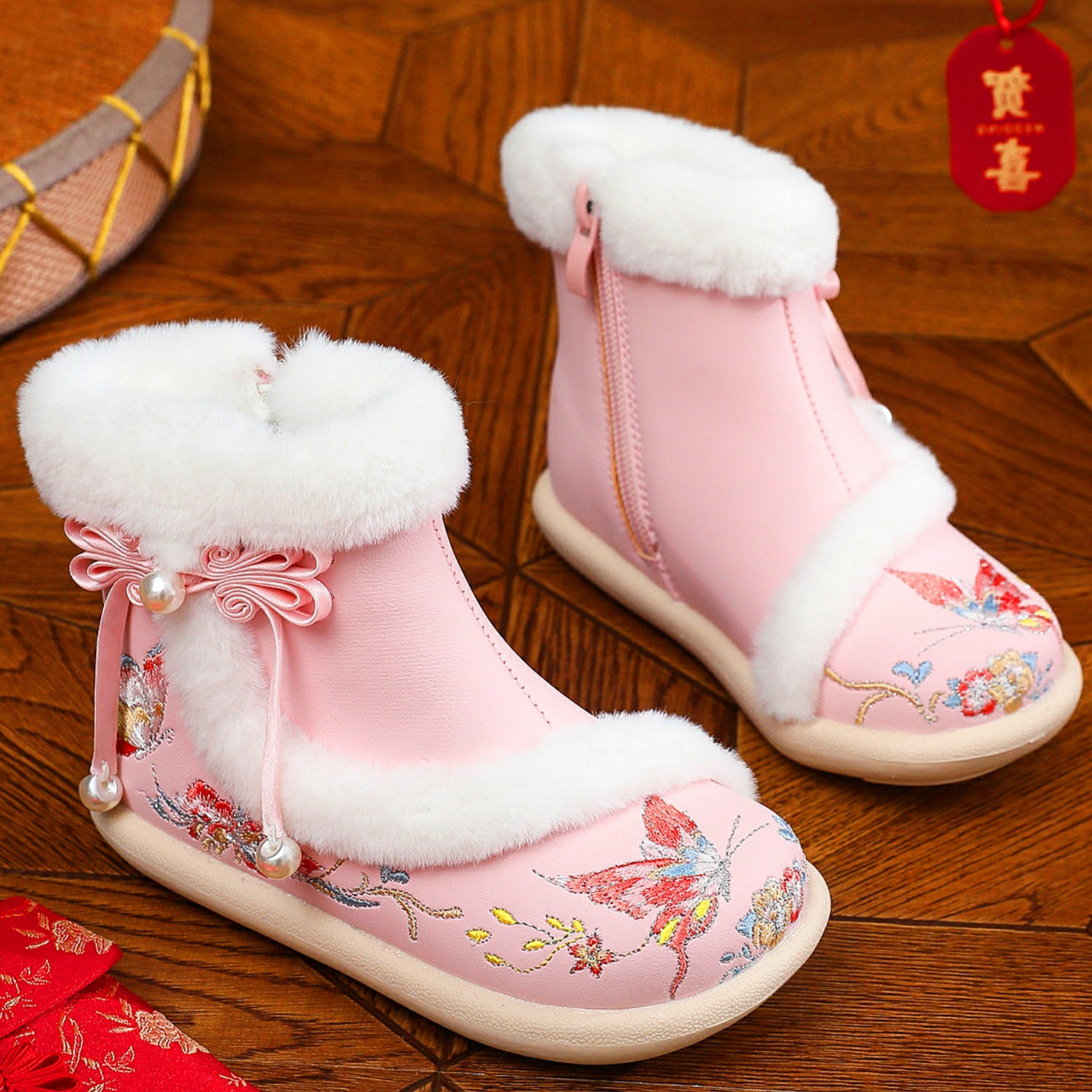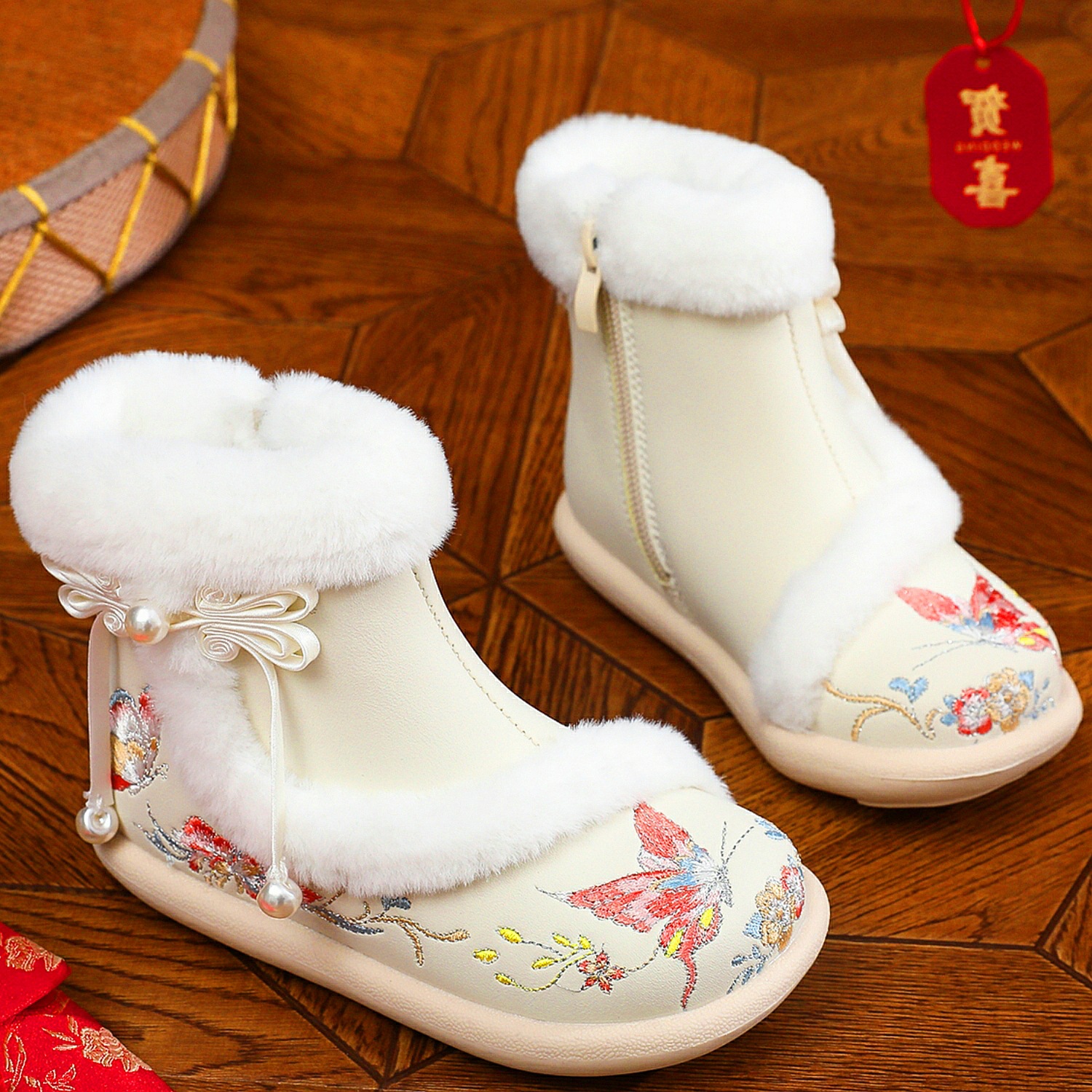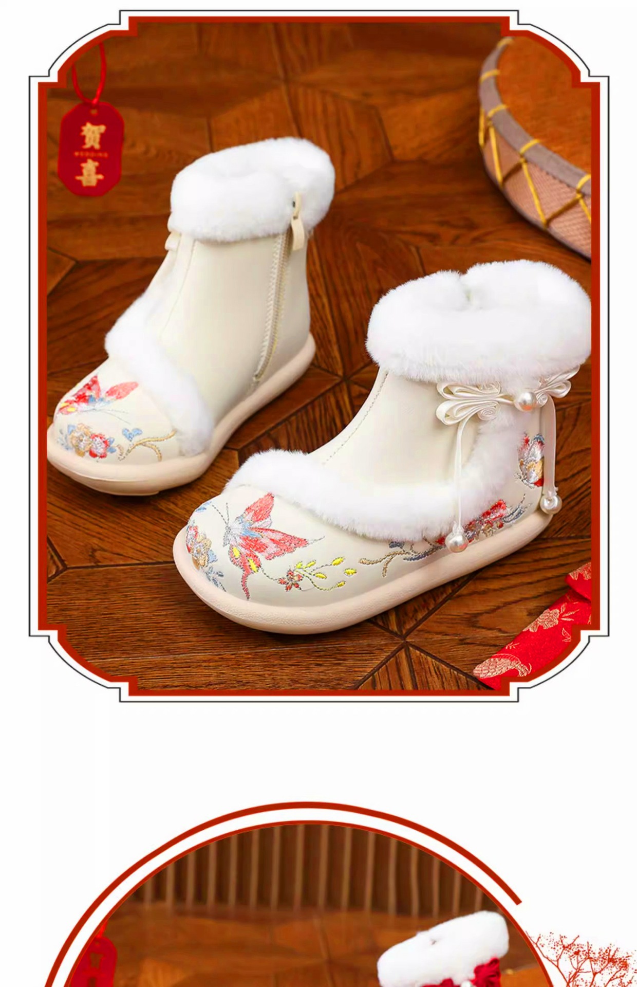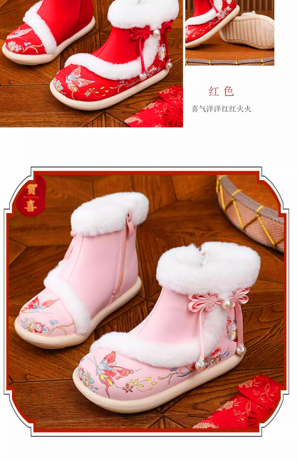 Старые пекинские туфли из ткани Hanfu ботинки сапоги для девочек зимой 2025 новые вышитые ботинки детские новогодние ботинки хлопковые ботинки сапоги