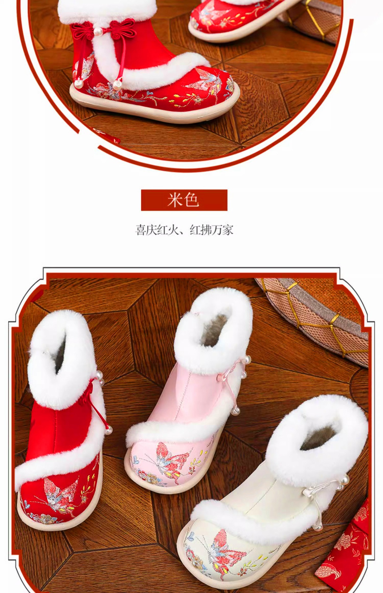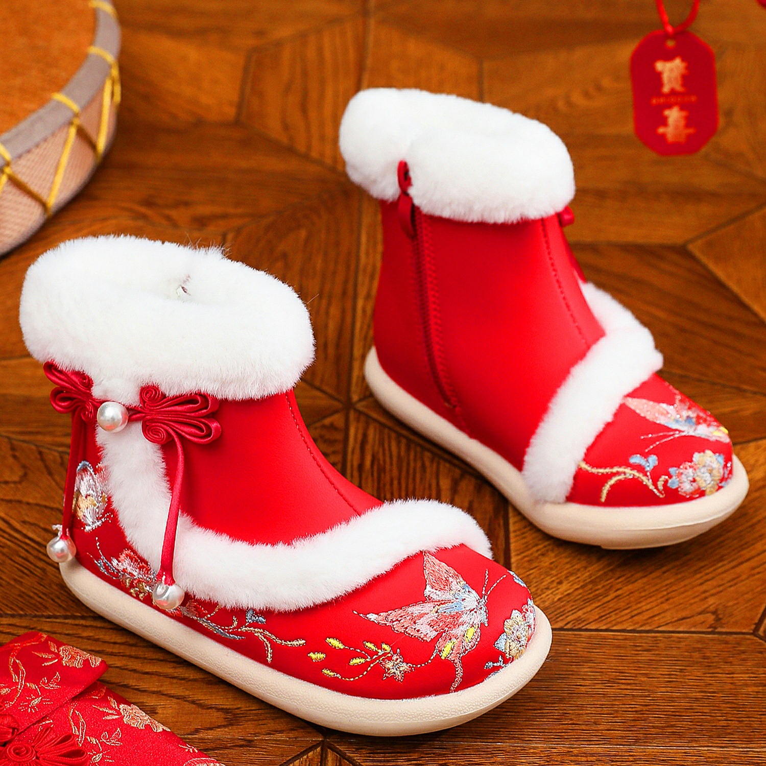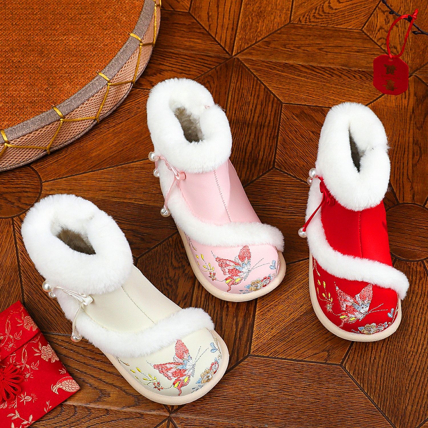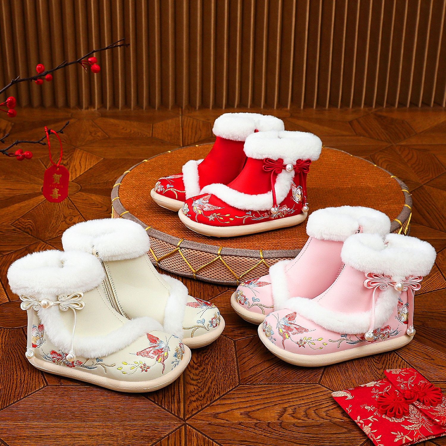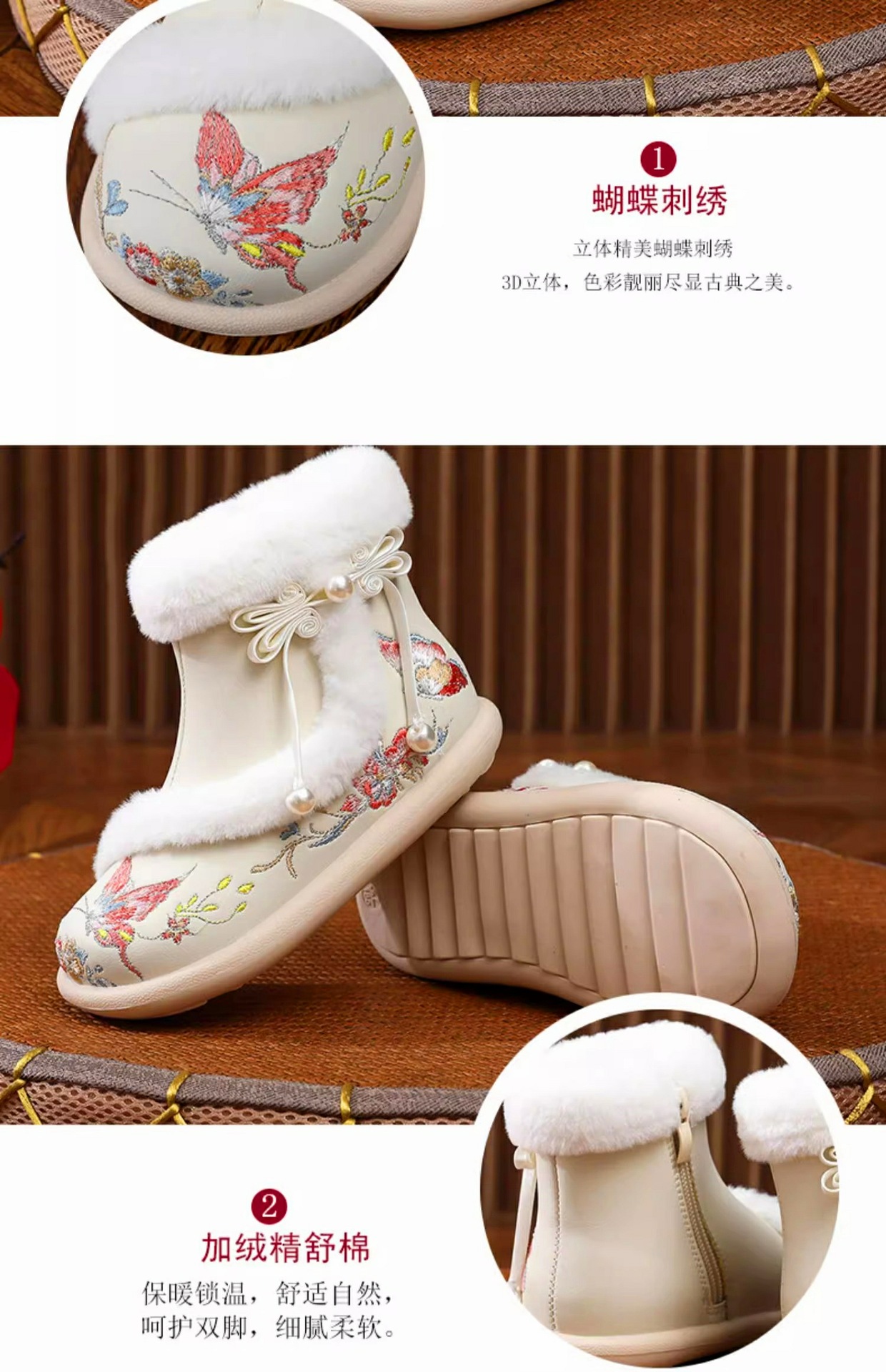 Старые пекинские туфли из ткани Hanfu ботинки сапоги для девочек зимой 2025 новые вышитые ботинки детские новогодние ботинки хлопковые ботинки сапоги
