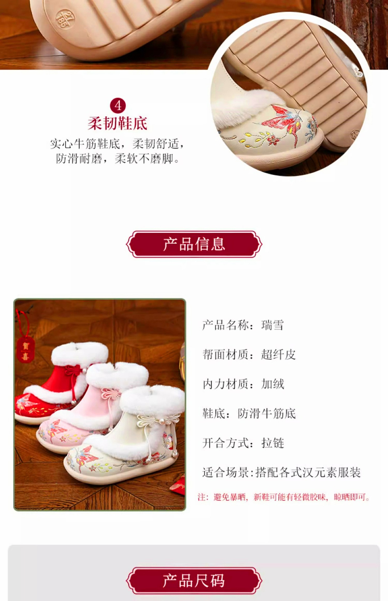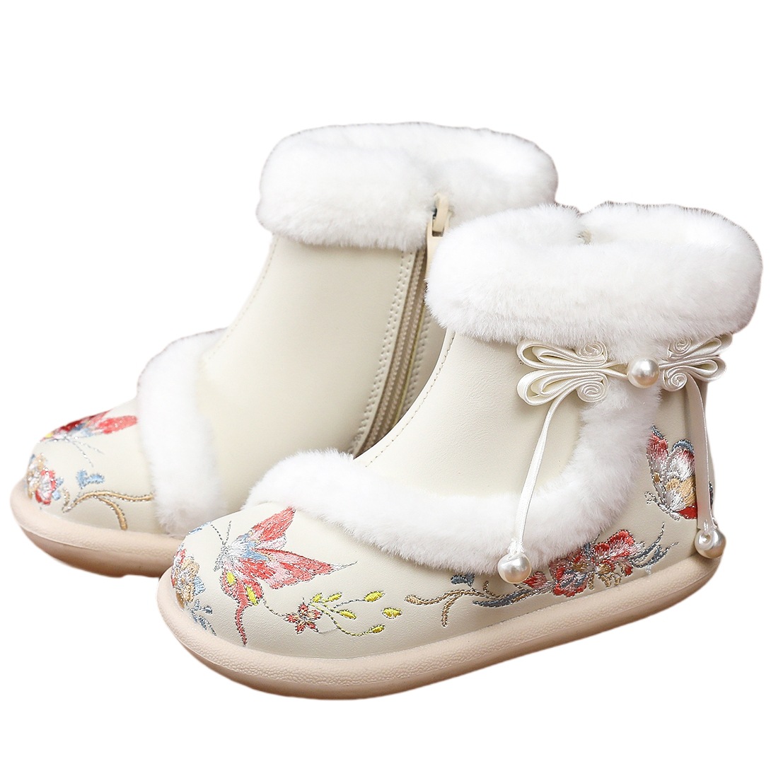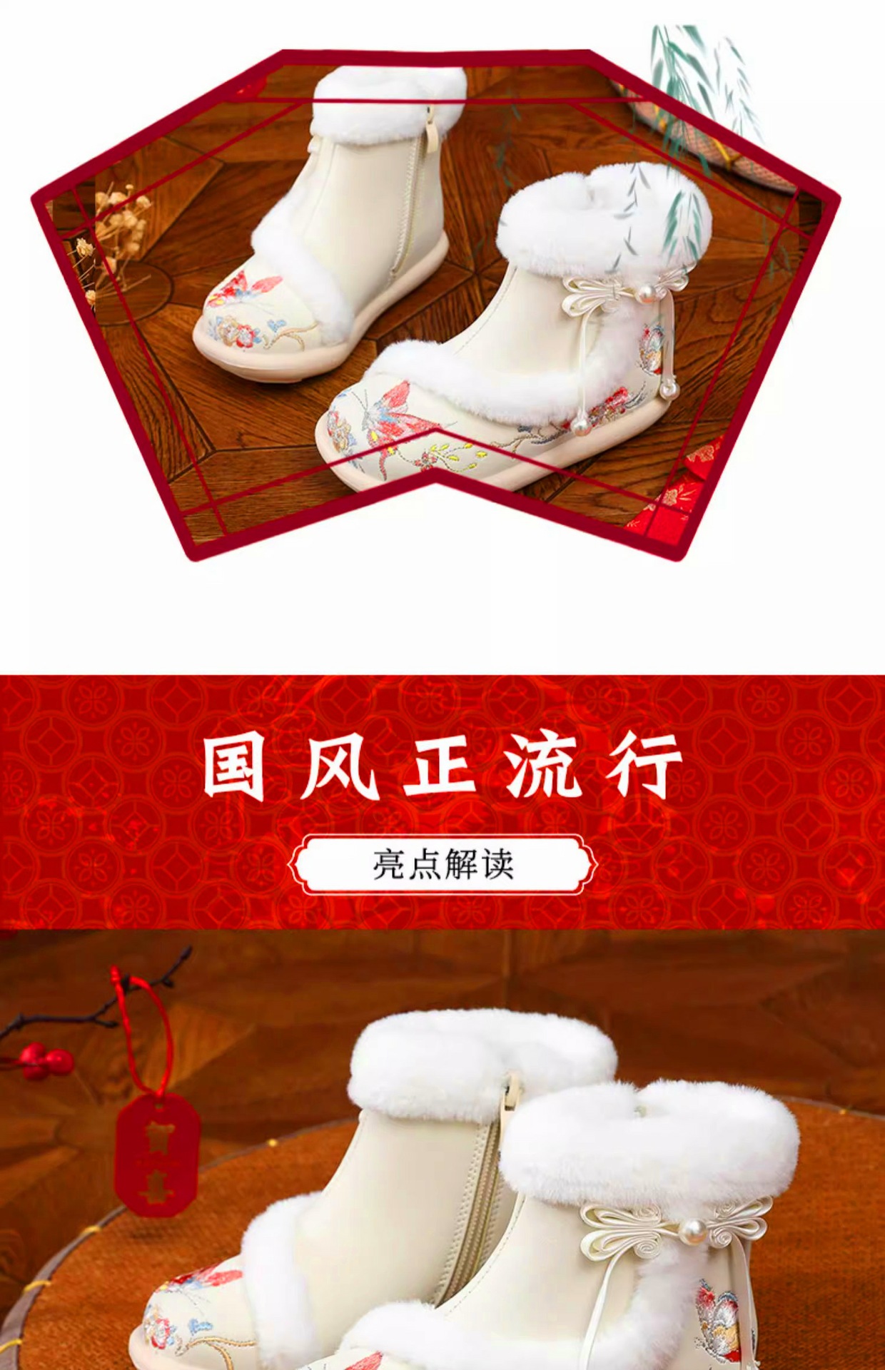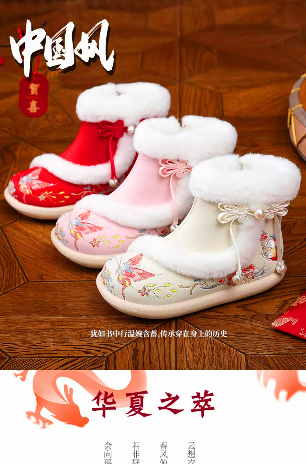 Старые пекинские туфли из ткани Hanfu ботинки сапоги для девочек зимой 2025 новые вышитые ботинки детские новогодние ботинки хлопковые ботинки сапоги