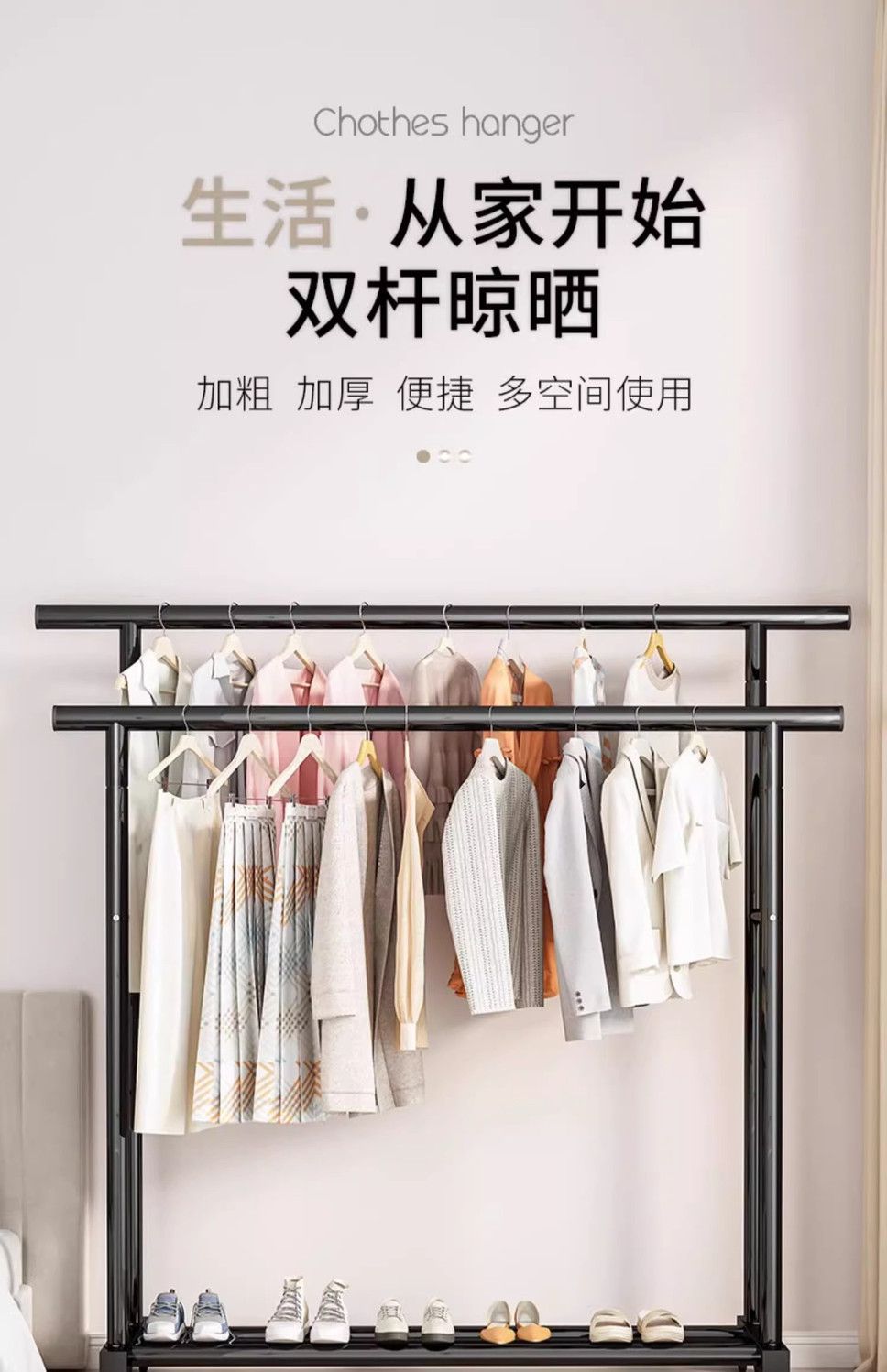 Новый специальный толстый вешалка для одежды с двумя полями вешалка на полу вертикальная домашняя спальня балкон 25 трубки вешалка очень толстый