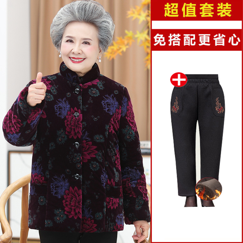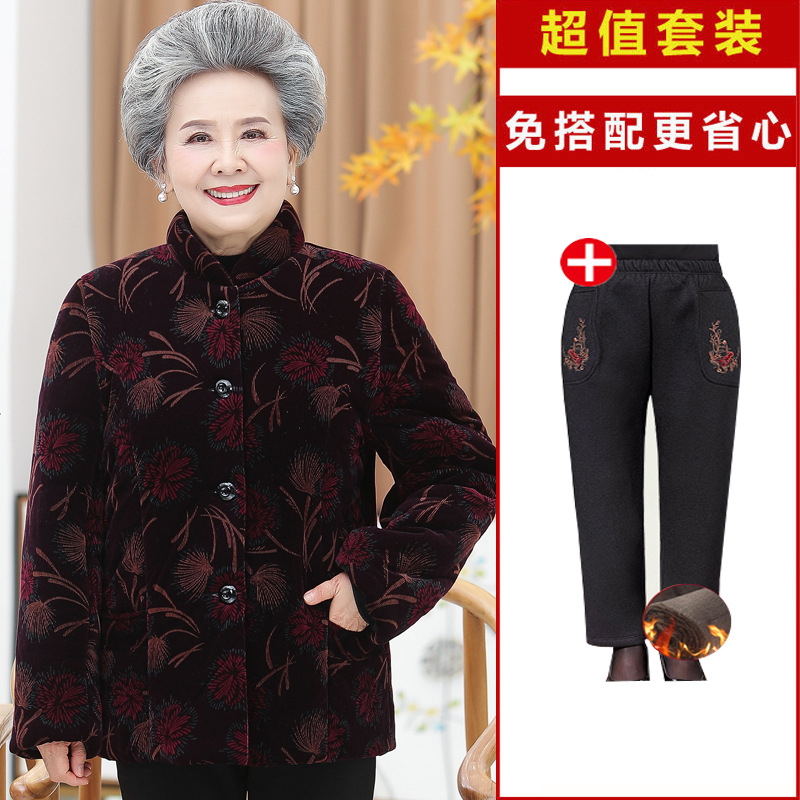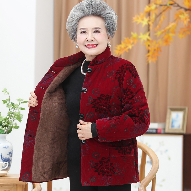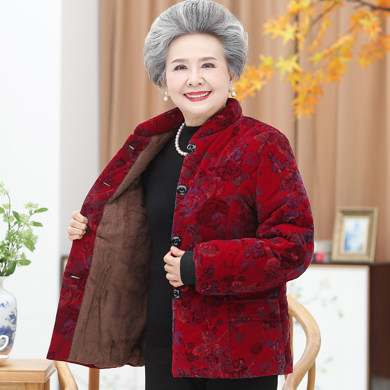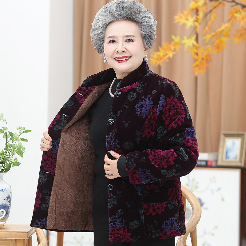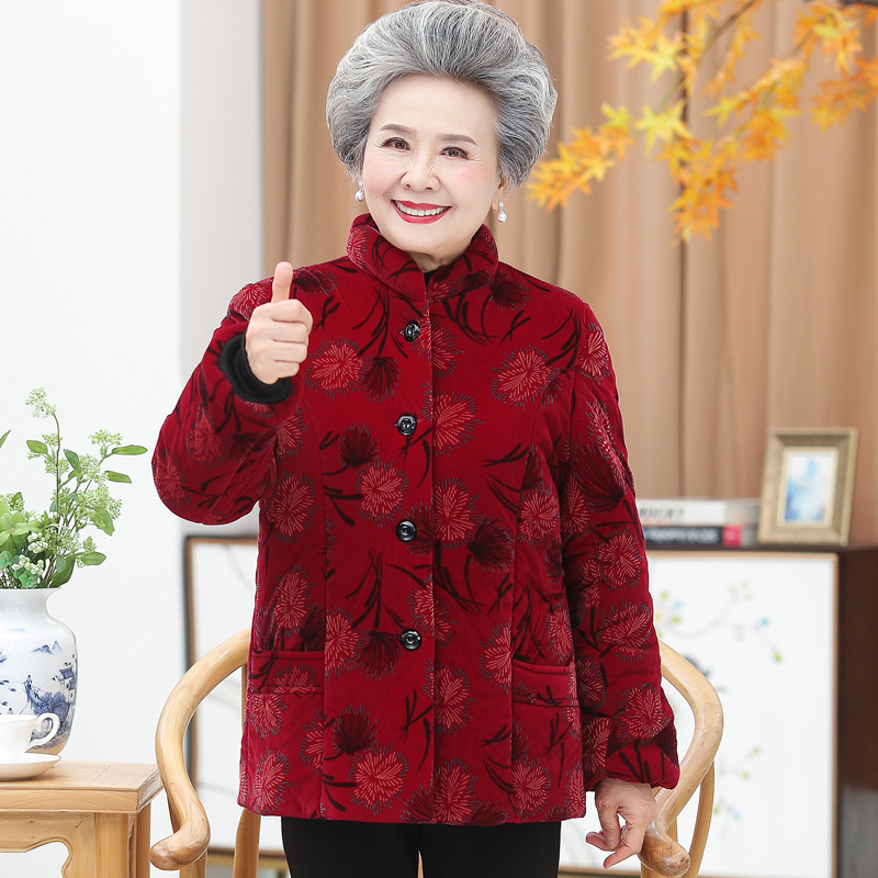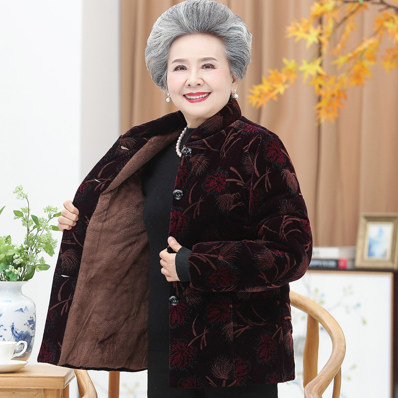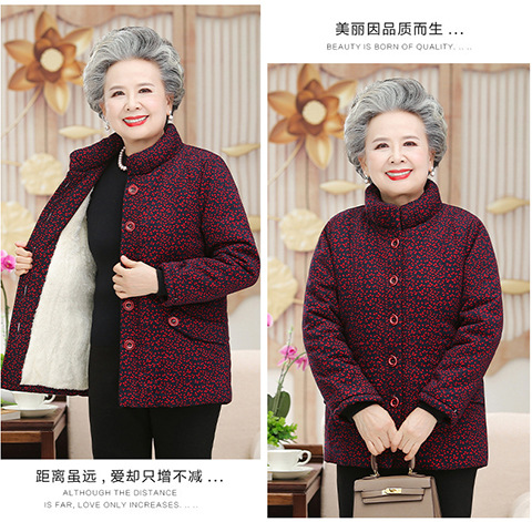 Бабушка плюшевая толстая хлопчатобумажная куртка 60 лет средняя и пожилая жена зимняя женщина мама теплая хлопчатобумажная одежда короткая куртка