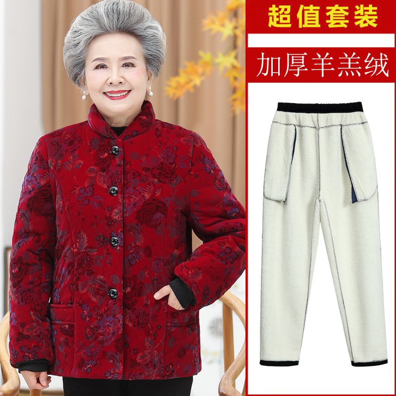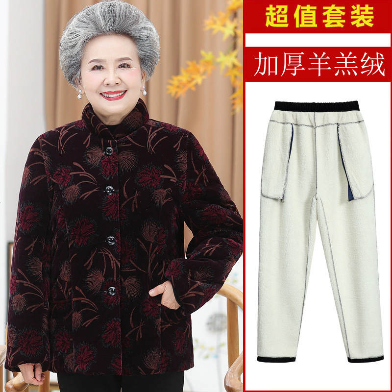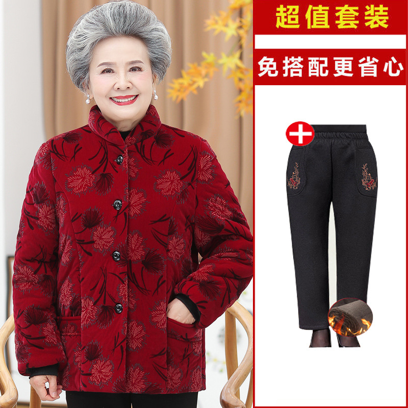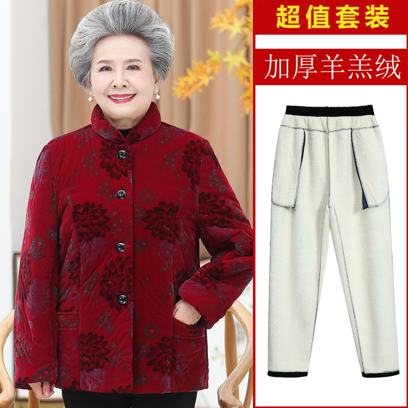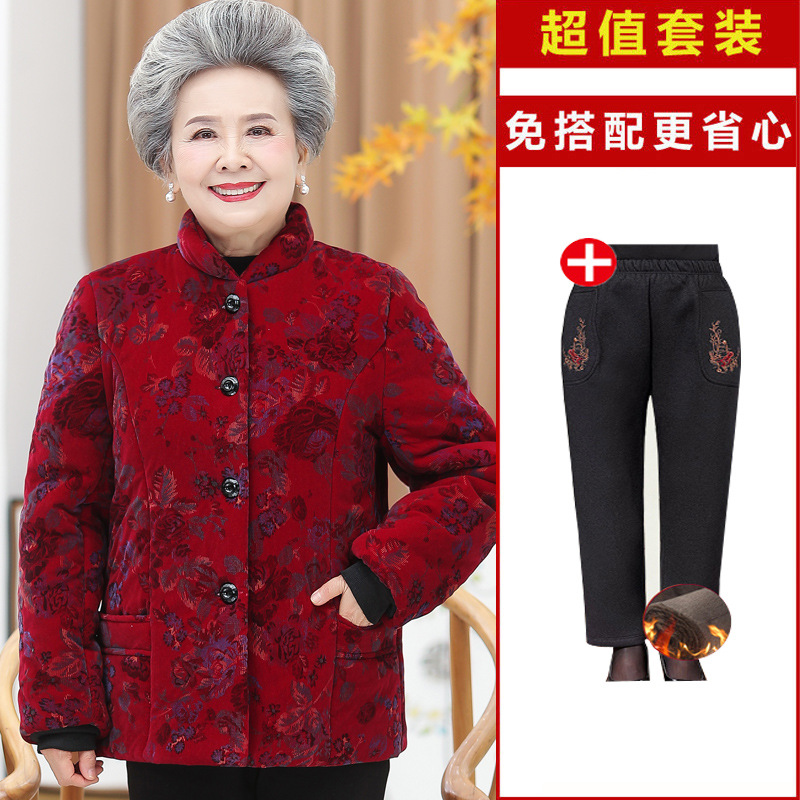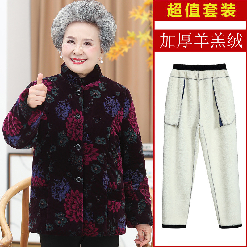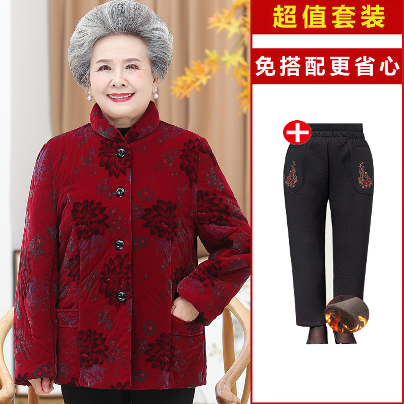 Бабушка плюшевая толстая хлопчатобумажная куртка 60 лет средняя и пожилая жена зимняя женщина мама теплая хлопчатобумажная одежда короткая куртка