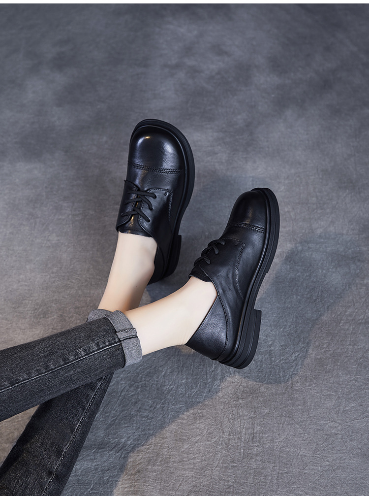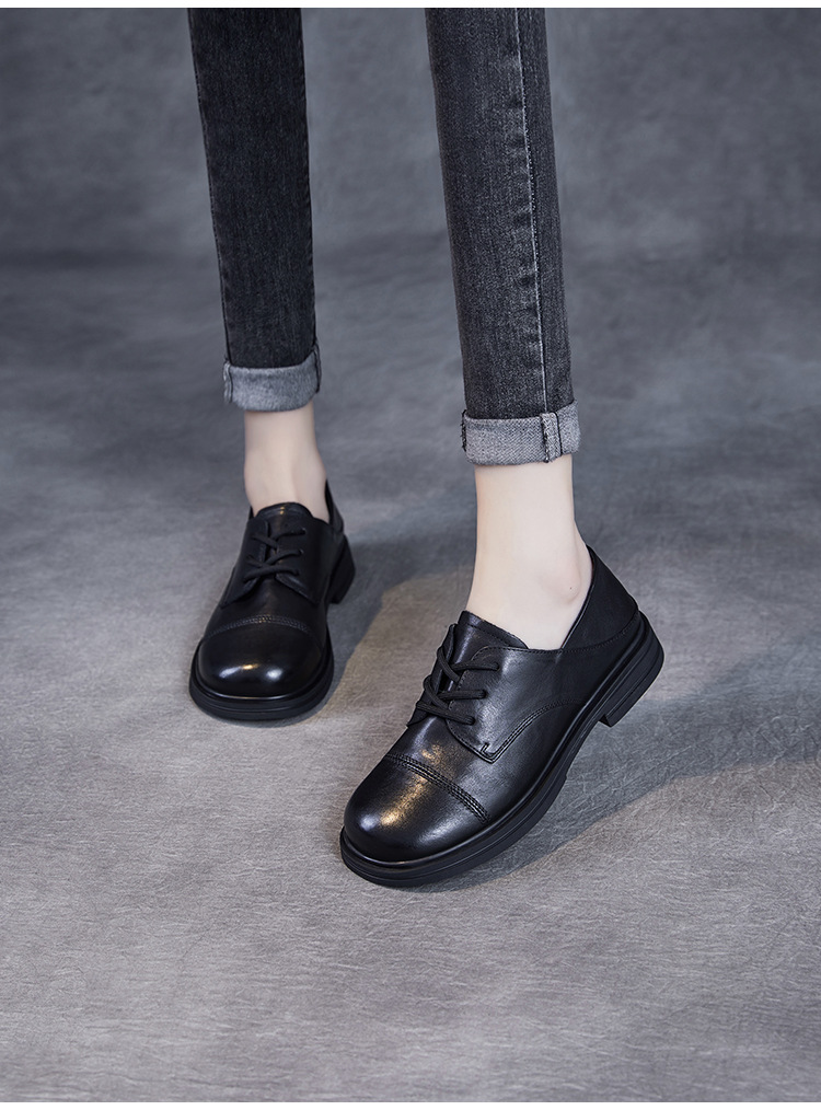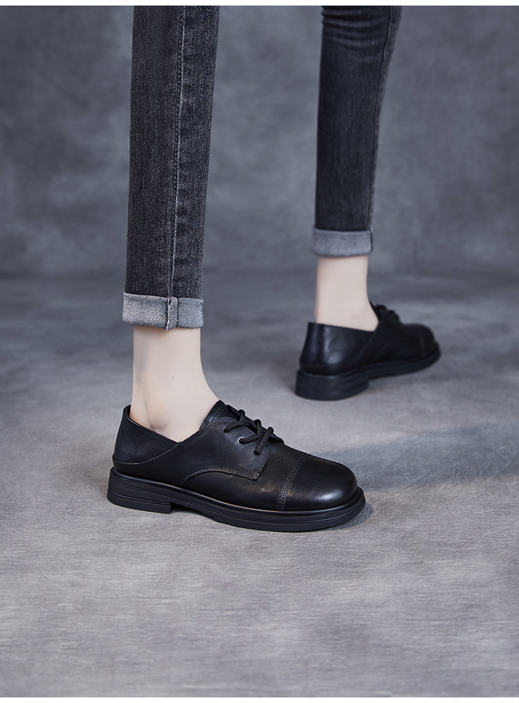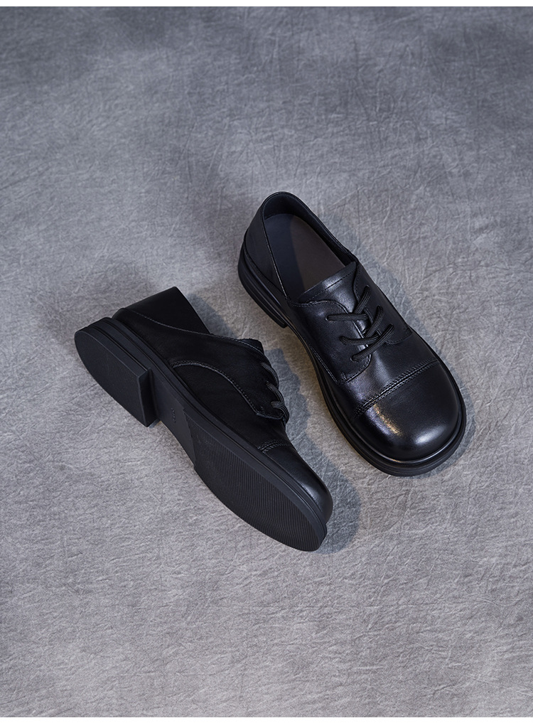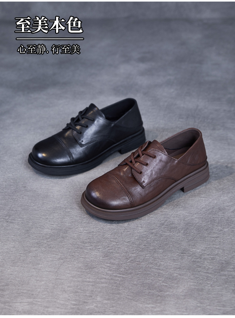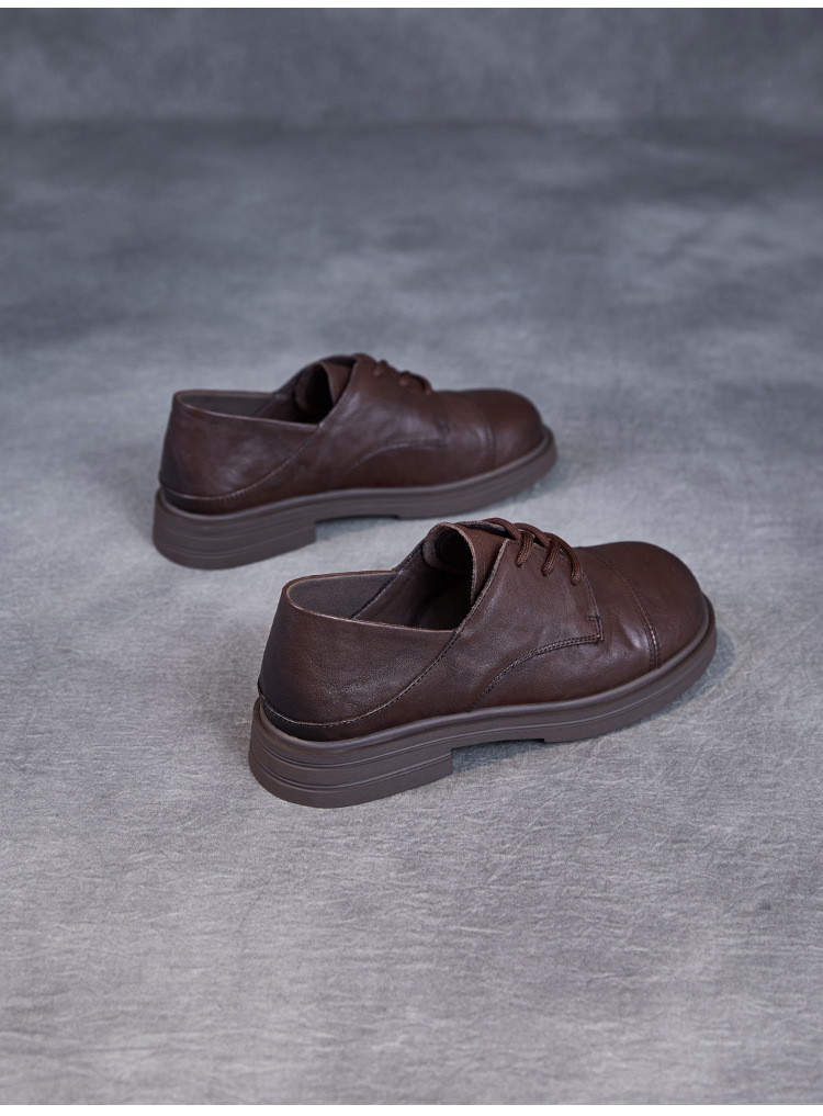 Красота натуральная кожаная обувь маленькая кожаная обувь женская весна 2025 новая английская одиночная обувь шнуровка легкая роскошная обувь