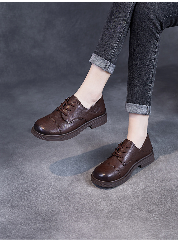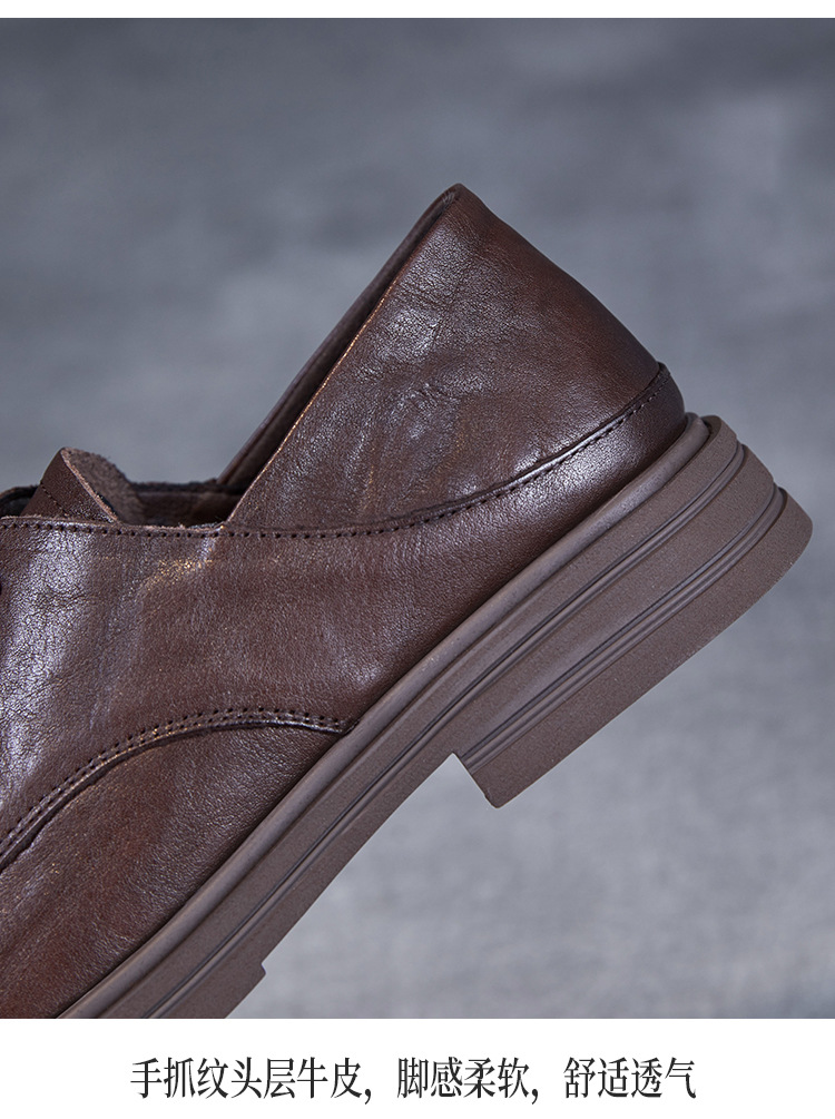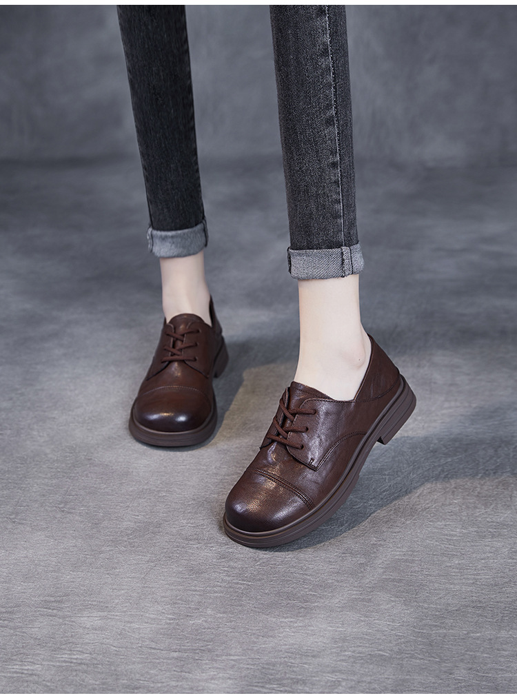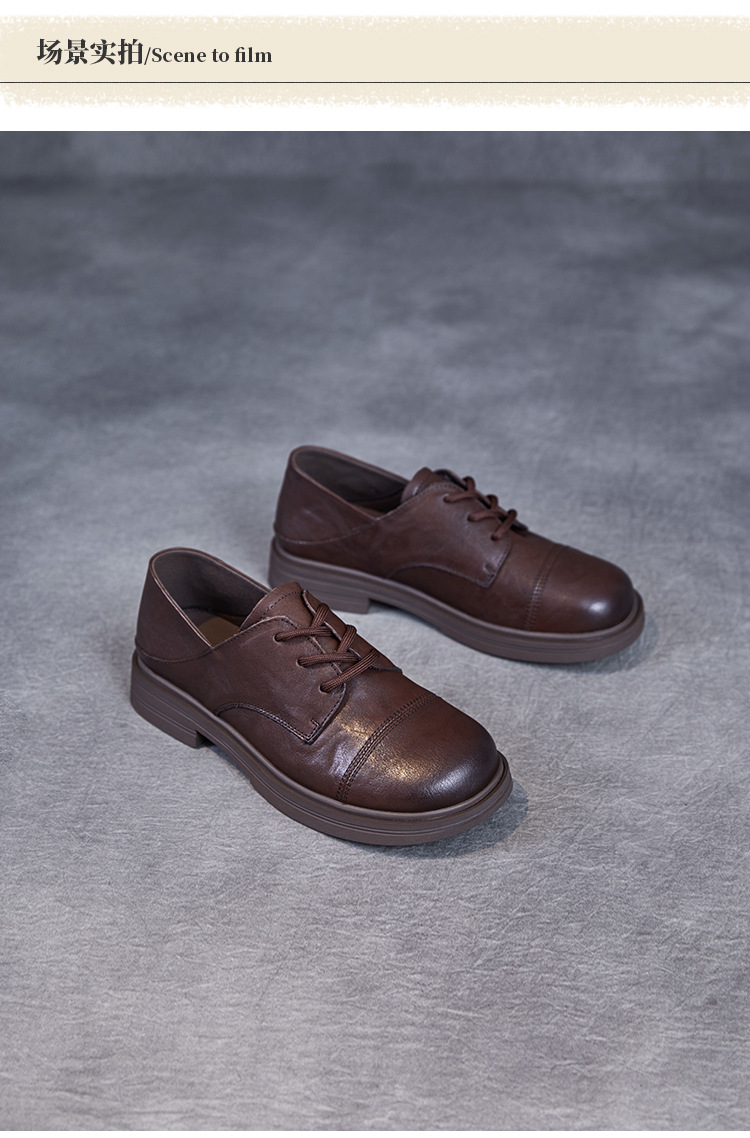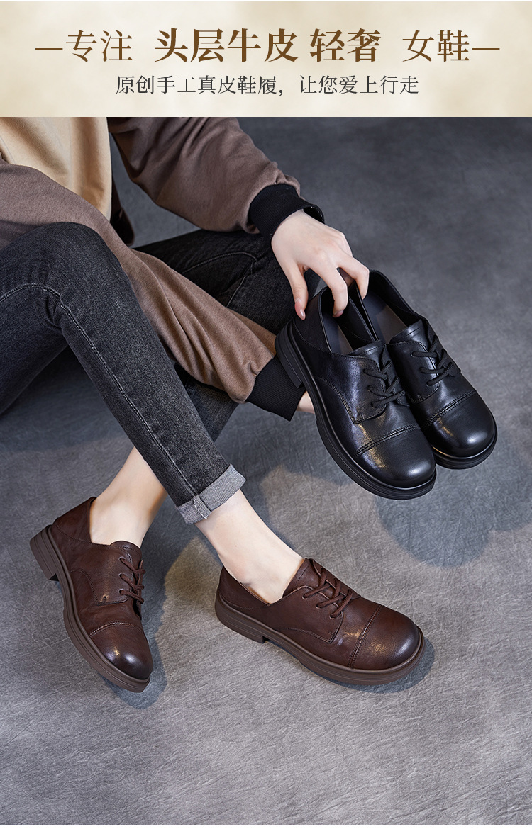 Красота натуральная кожаная обувь маленькая кожаная обувь женская весна 2025 новая английская одиночная обувь шнуровка легкая роскошная обувь