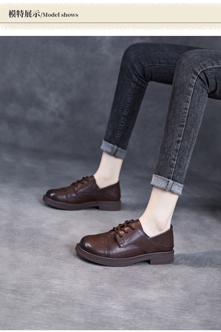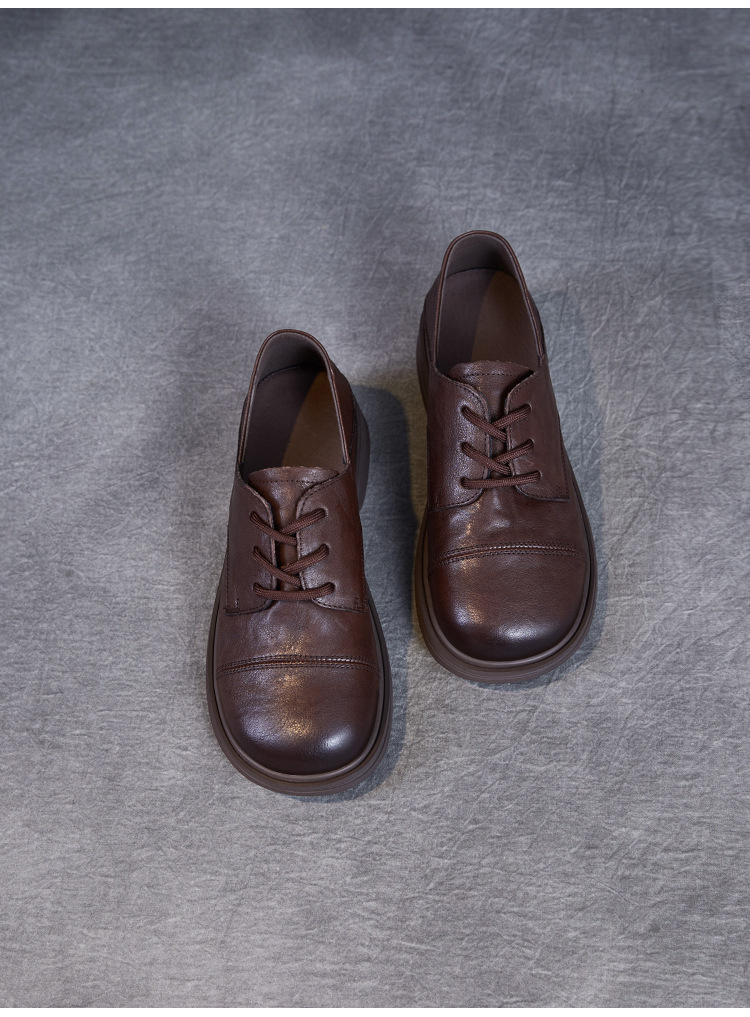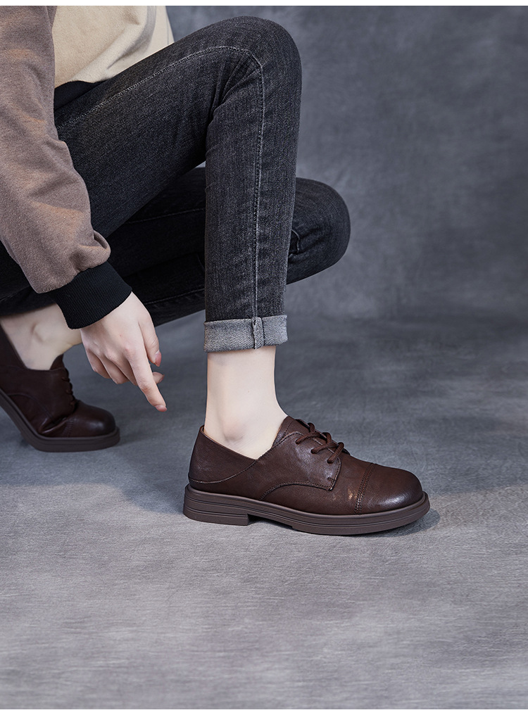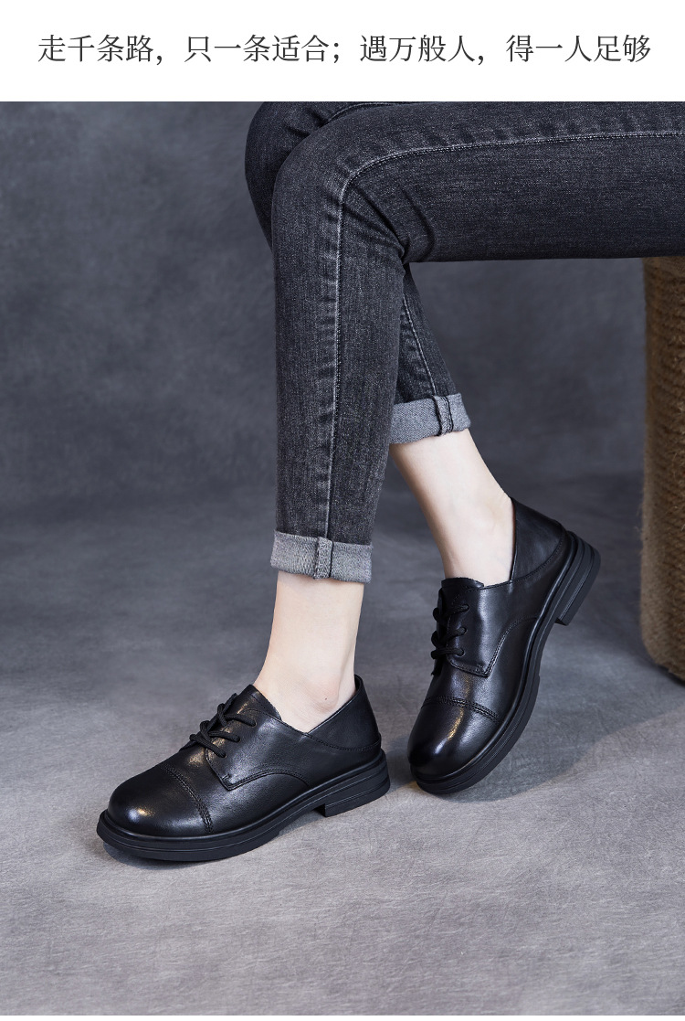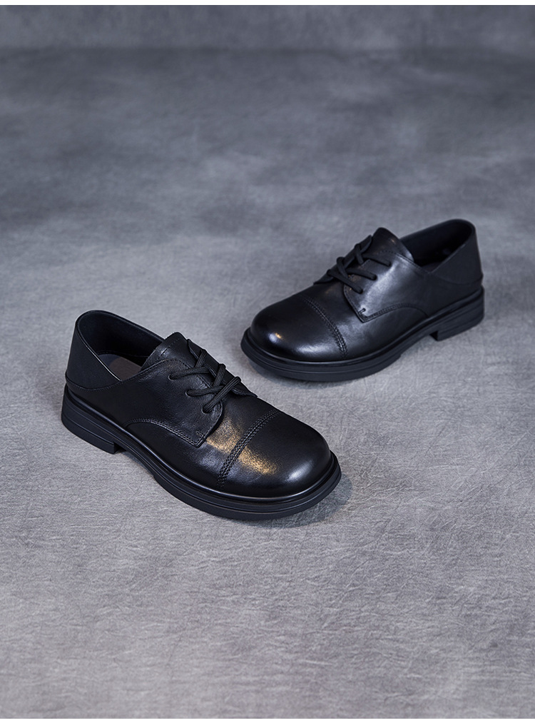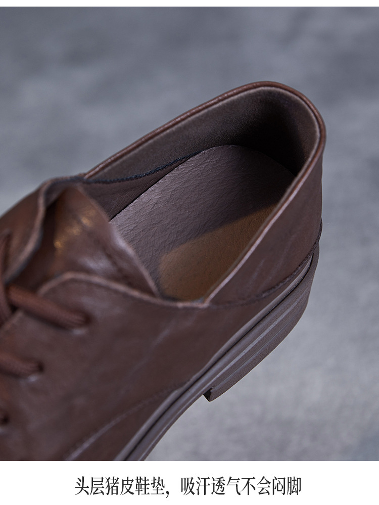 Красота натуральная кожаная обувь маленькая кожаная обувь женская весна 2025 новая английская одиночная обувь шнуровка легкая роскошная обувь