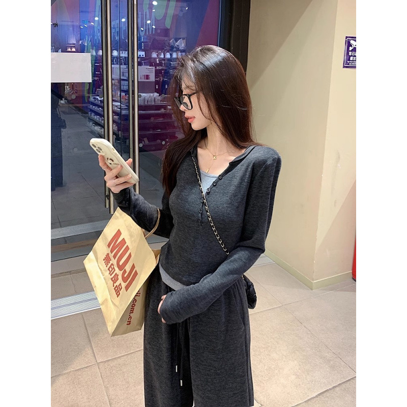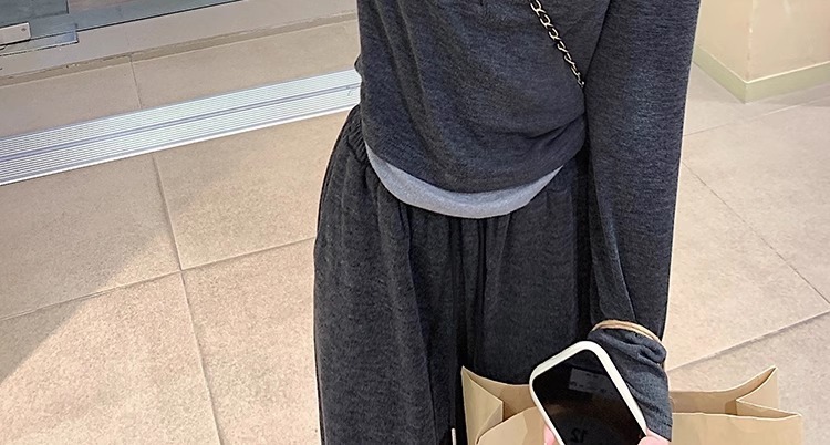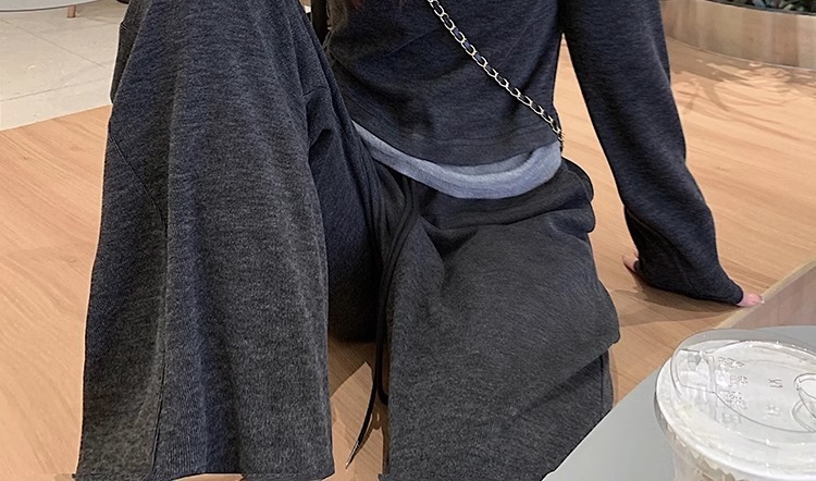 Темно-серый костюм [высококачественная ткань высокого качества]; Темно-серые брюки [высококачественная ткань высокого класса]; Темно-серый топ [высококачественная ткань высокого качества]