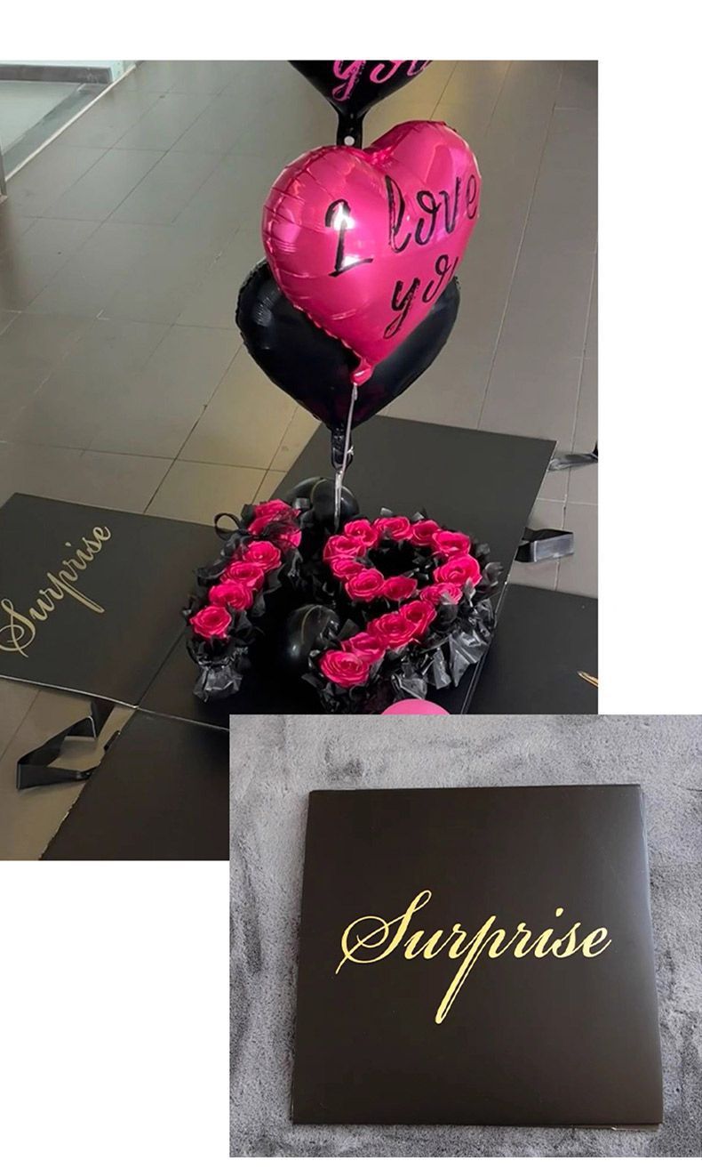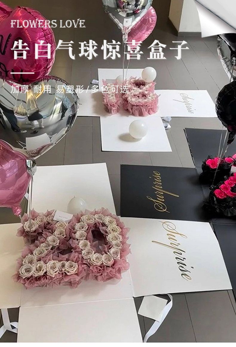 Коробка-сюрприз [белая] 50*50 см 1 шт.; Цветочная банка своими руками; атмосферная лента; романтический серебряный летающий мяч; Романтический розовый летающий мяч любви; Романтический черный летящий мяч любви; белый молочный хлопок; черный молочный хлопок; Двусторонний скотч; Английская лента бежевая; Английская лента черного цвета; вечный цветок розовый; вечный цветок черный