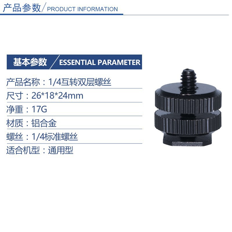 标准1/4"螺孔转热靴插座 双层螺丝可上下锁紧。