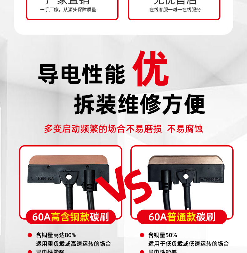 Электрический коллектор уровня 3, 60 А (нормальный); Электрический коллектор уровня 3, 60 А (обычная усиленная угольная щетка); Электрический коллектор уровня 4 60 А (нормальный); Электрический коллектор уровня 4 60 А (обычная усиленная угольная щетка); Насадка угольной щетки 30А (высокое содержание меди); Электрический коллектор уровня 3, 60 А (высокое содержание меди); Электрический коллектор уровня 3, 60 А (медная угольная щетка высокой ширины и высотой); Электрический коллектор уровня 3 30 А (высокое содержание меди); Электрический коллектор уровня 4 30 А (высокое содержание меди); Электрический коллектор уровня 4 60 А (высокое содержание меди); Электрический коллектор уровня 4 60 А (медная угольная щетка высокой ширины и высотой); Электрический коллектор уровня 3, 60 А (высокий, включая медную и красную рамку); Электрический коллектор уровня 4 60 А (высокий, включая медную и красную рамку); Электрический коллектор уровня 5 60 А (высокое содержание меди); Электрический коллектор уровня 6 60 А (высокое содержание меди); Насадка угольной щетки 60А (высокое содержание меди); Головка угольной щетки 60А (повышенная и содержащая медь); Электрический коллектор с одной головкой и прямоугольным отверстием (высокое содержание меди)